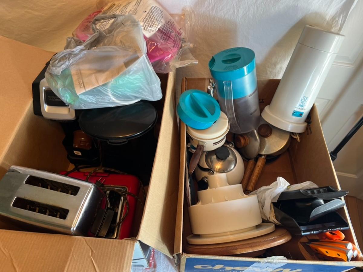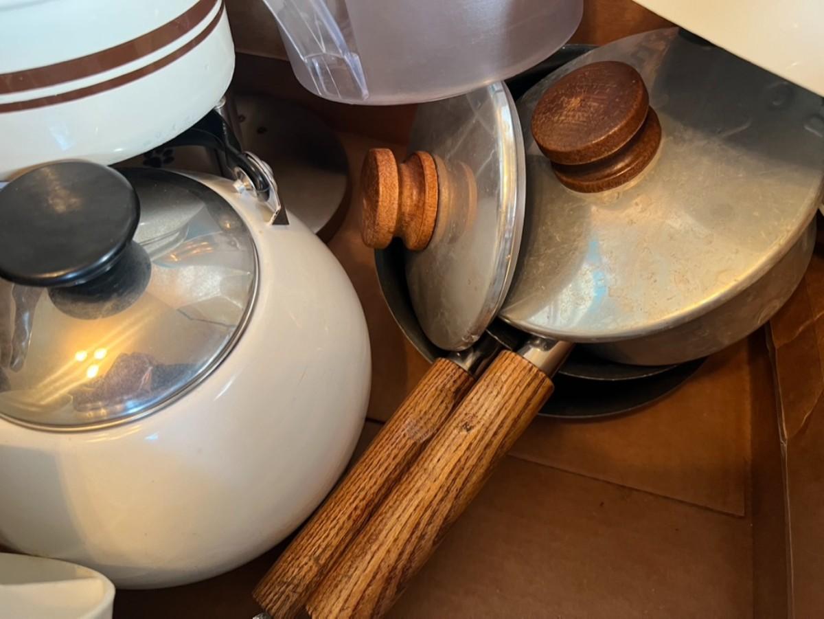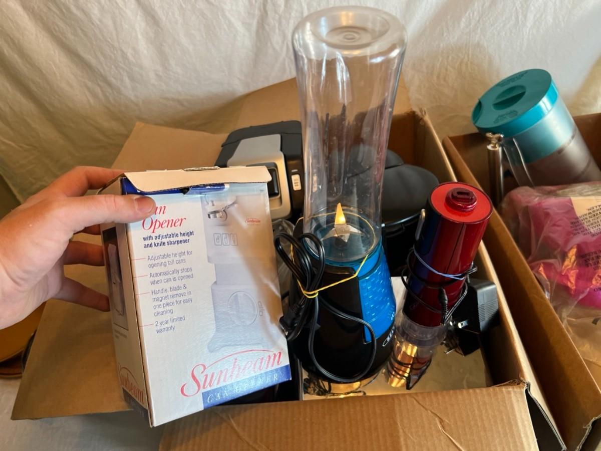 Huge Kitchen Lot Knives, Foodsaver, Iced Tea Pot, Vintage Pans, Straw Holder Can Opener and More