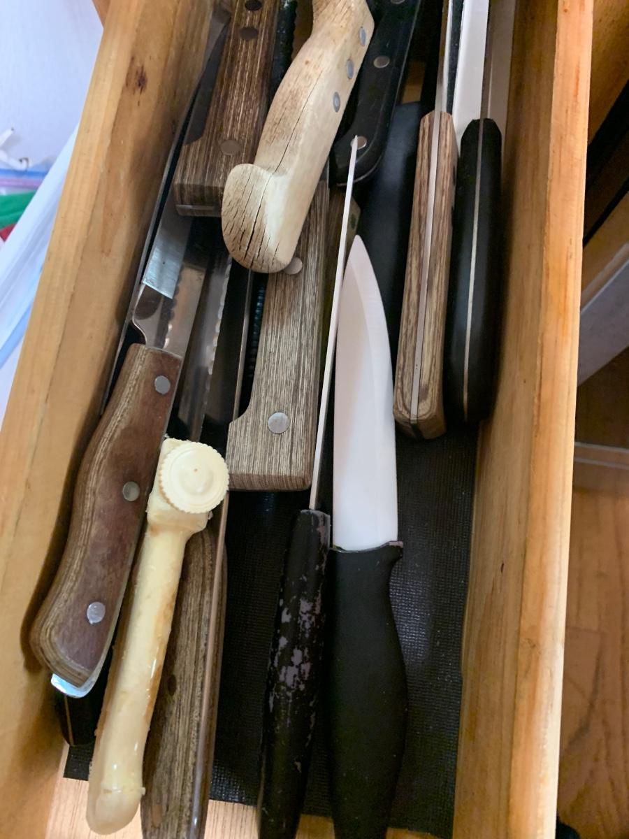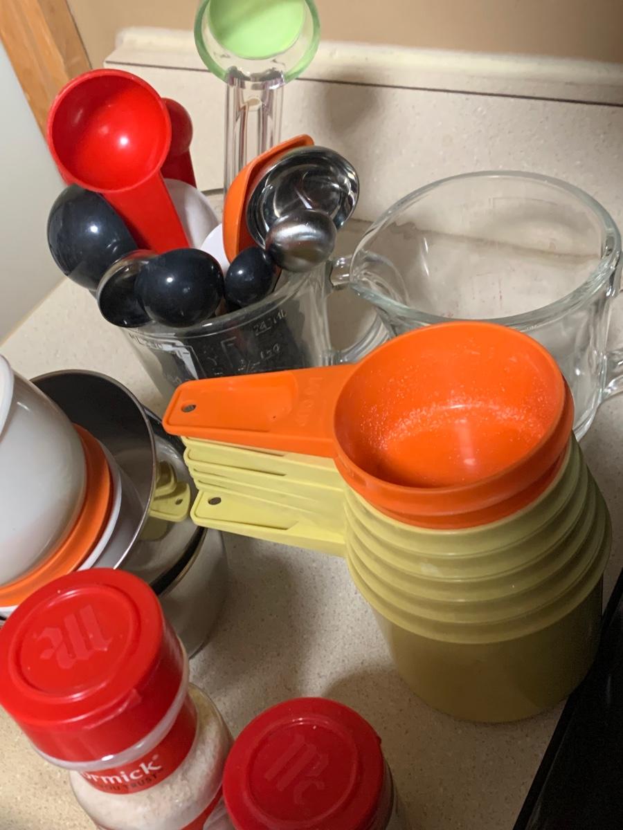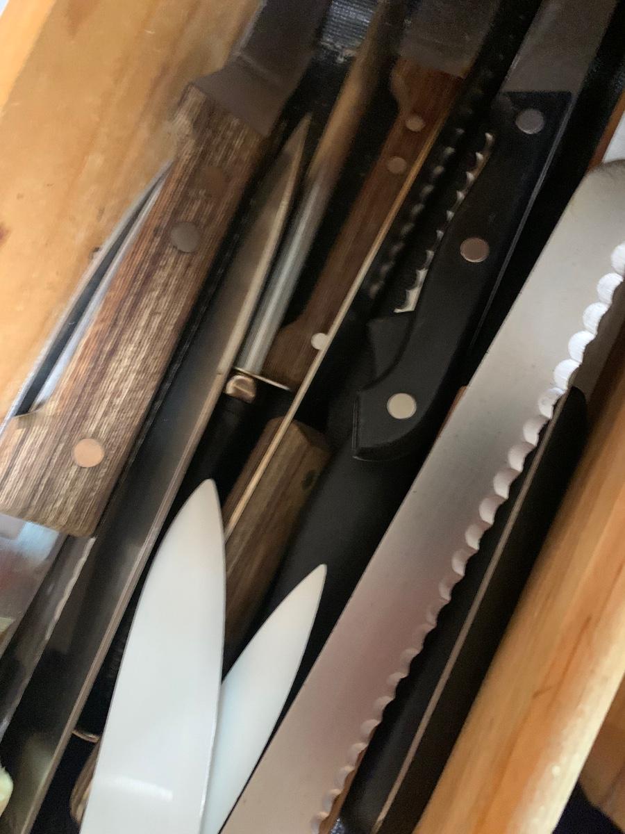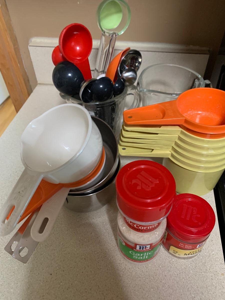 Huge Kitchen Lot Knives Knife Storage Block Cooking Utensils Measuring Cups Rolling Pin Much More
