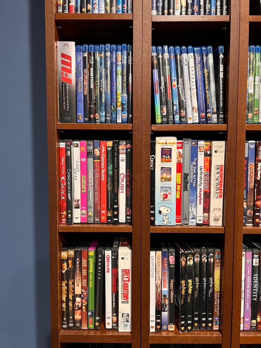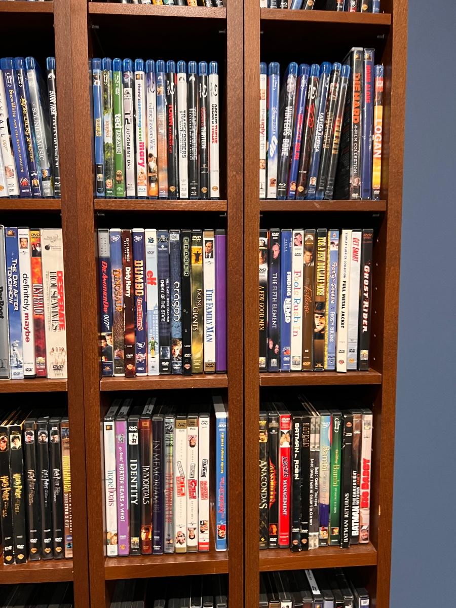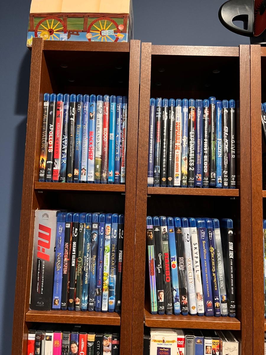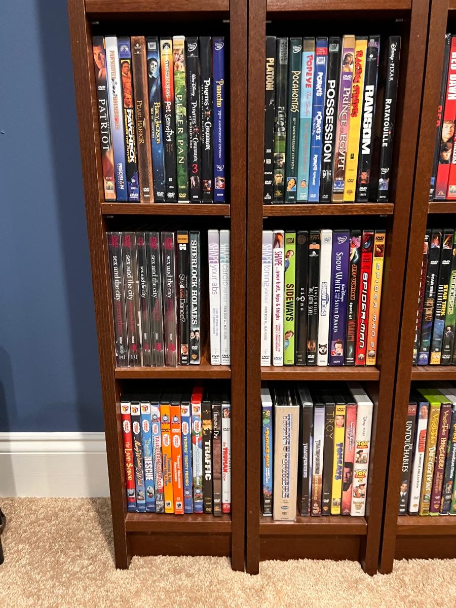 Shelves are not included but are in this auction. Multiple genres. Boxes have not been checked but owner says they’re all there and there is a stack of discs without boxes.
