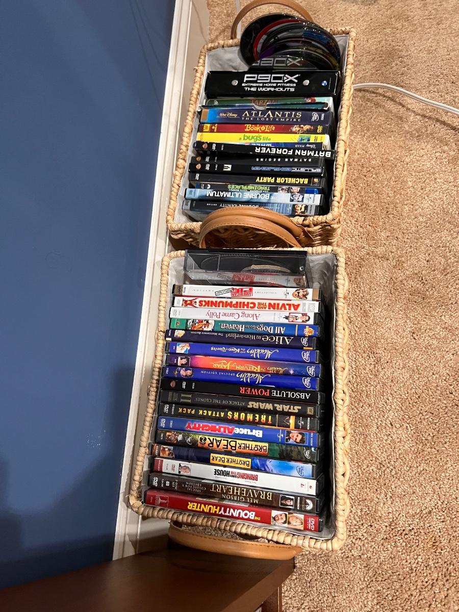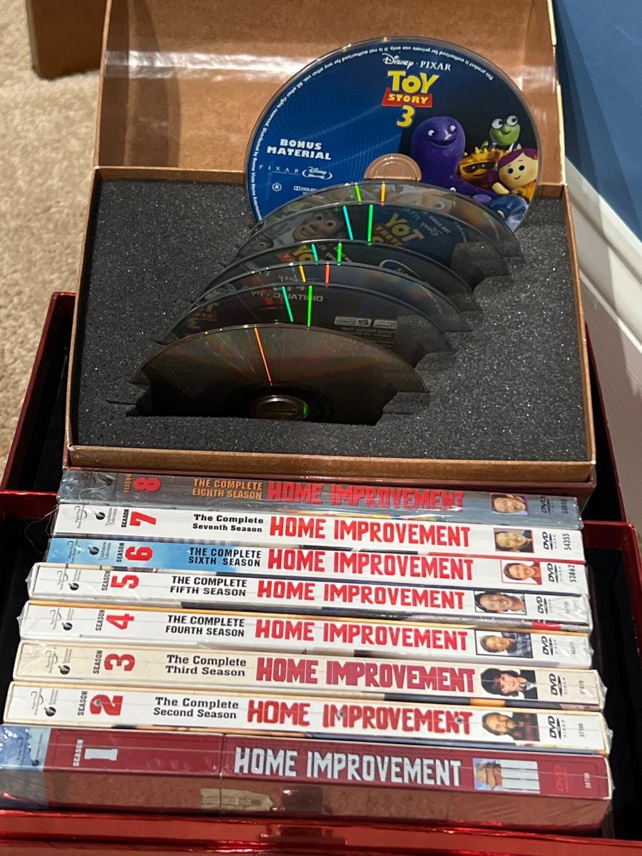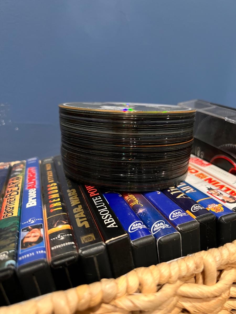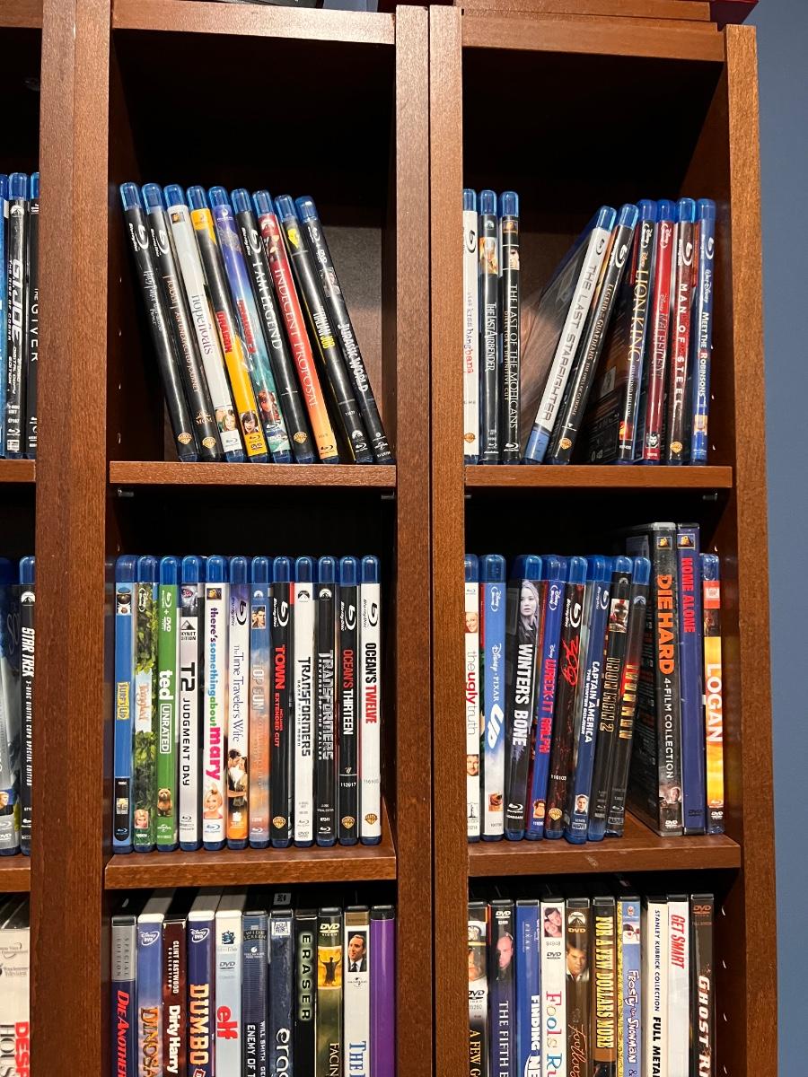 Shelves are not included but are in this auction. Multiple genres. Boxes have not been checked but owner says they’re all there and there is a stack of discs without boxes.