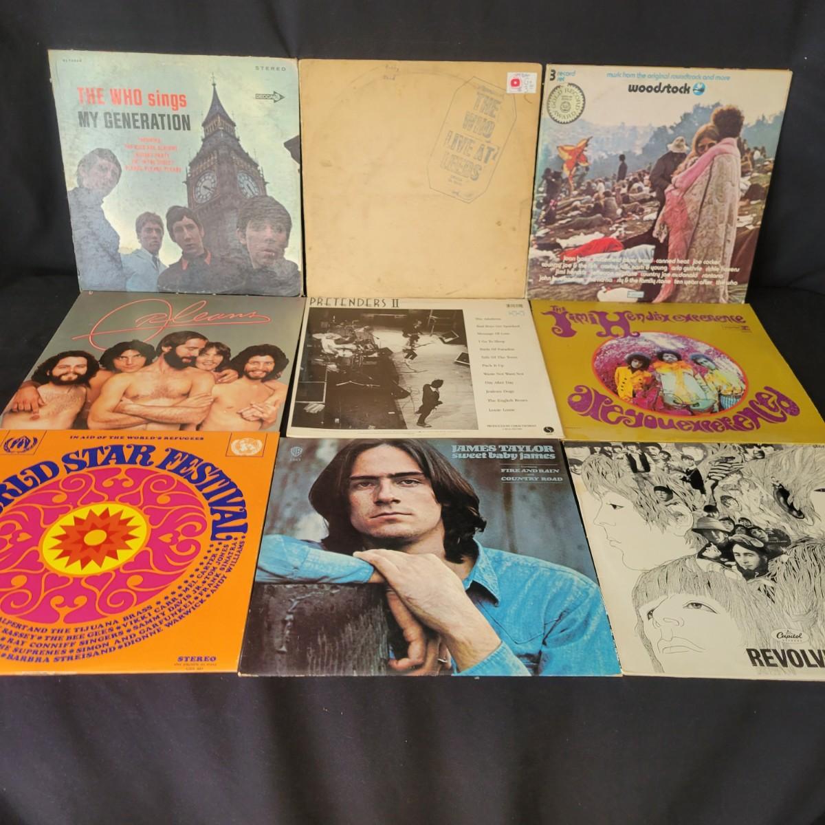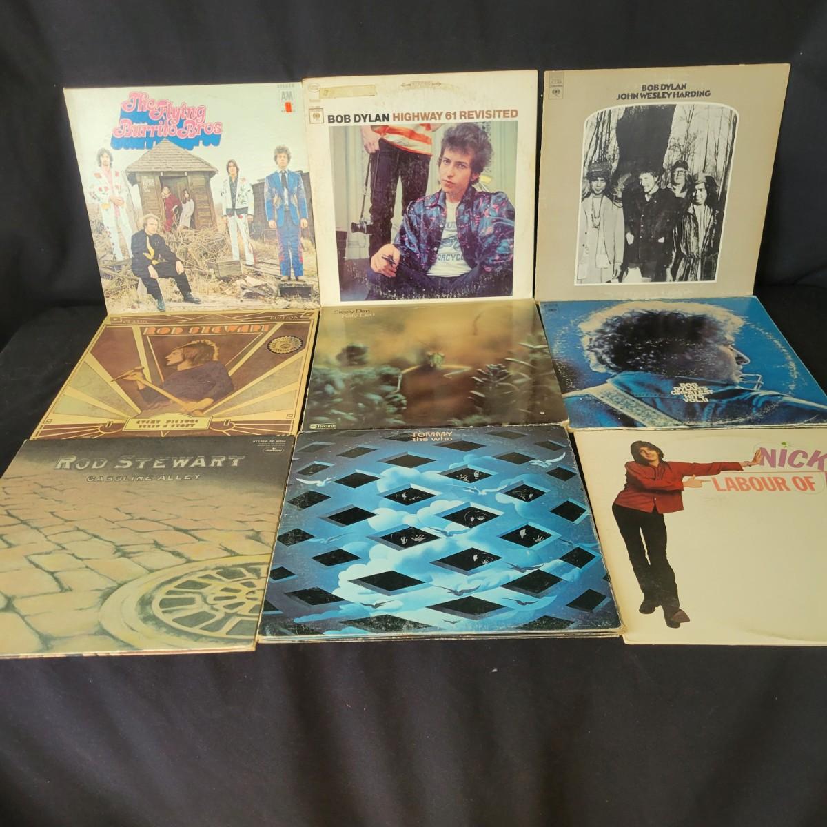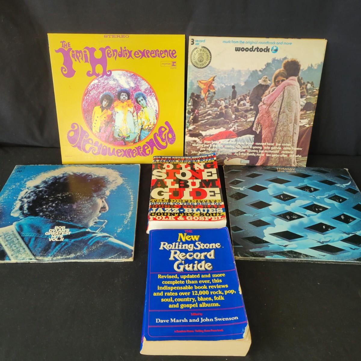 A huge lot of vinyl focused on the rock and punk of the 70s and 80s. Talking Heads, Jimi Hendrix, The Who Pete, Townsend and so many more. Also two books on the history of rock and two album guides. Also includes a handy album crate to carry your treasure home in. Over seventy five albums are included in this lot. Vinyl appears to have normal wear and tear.