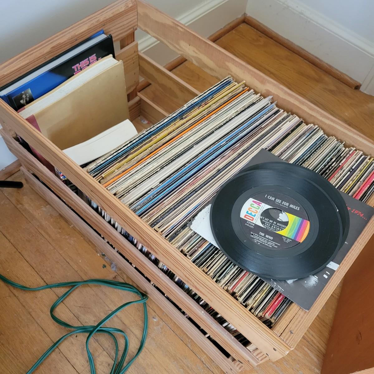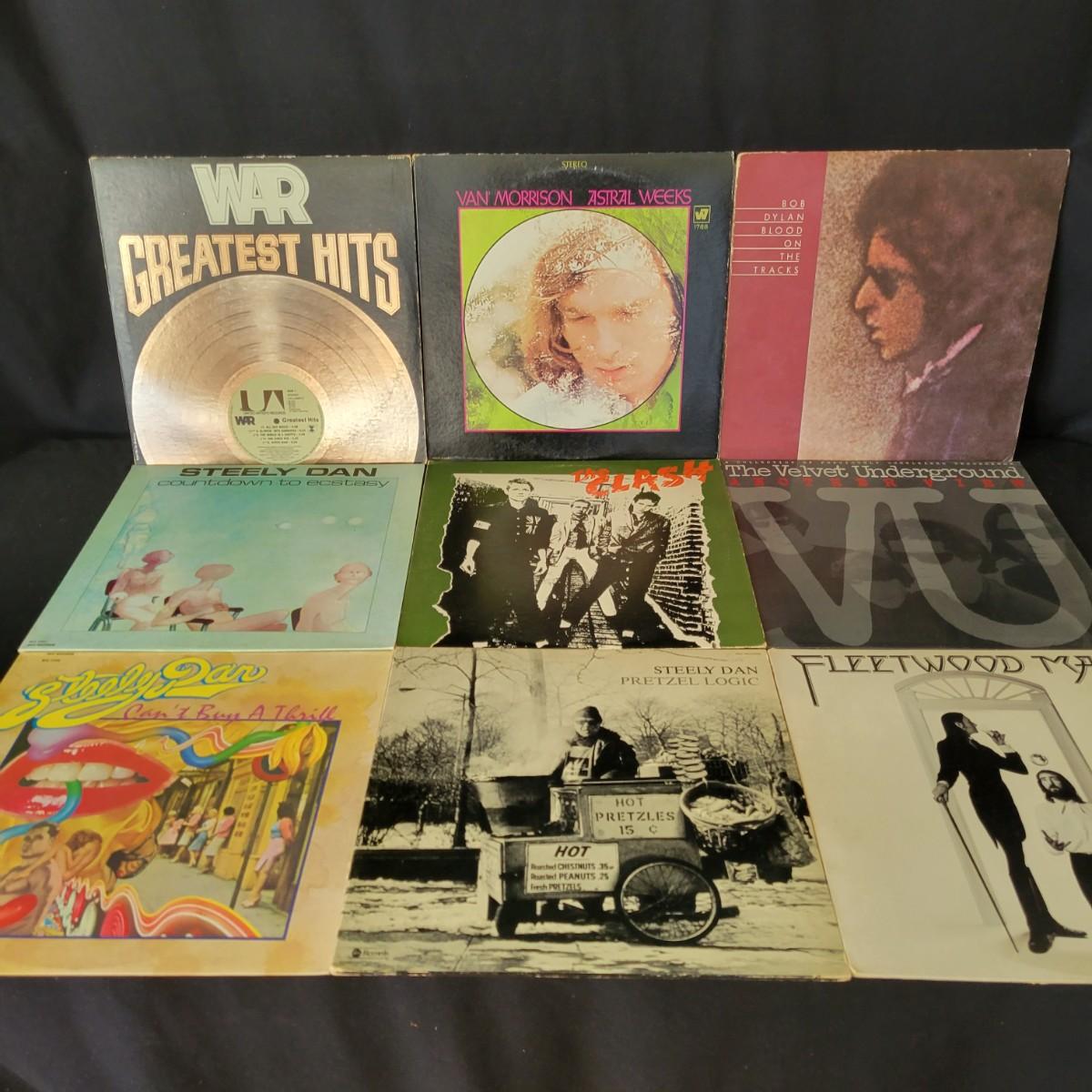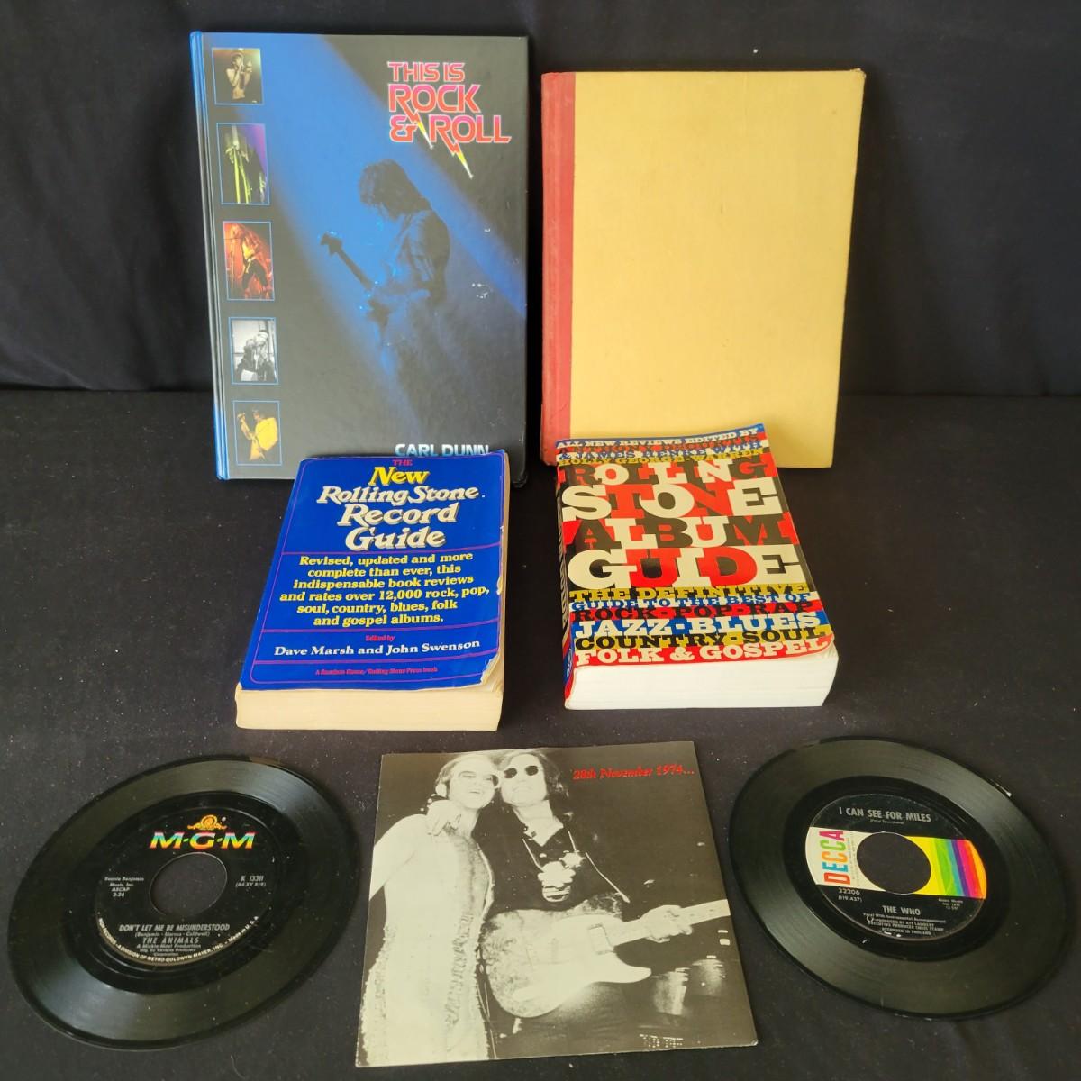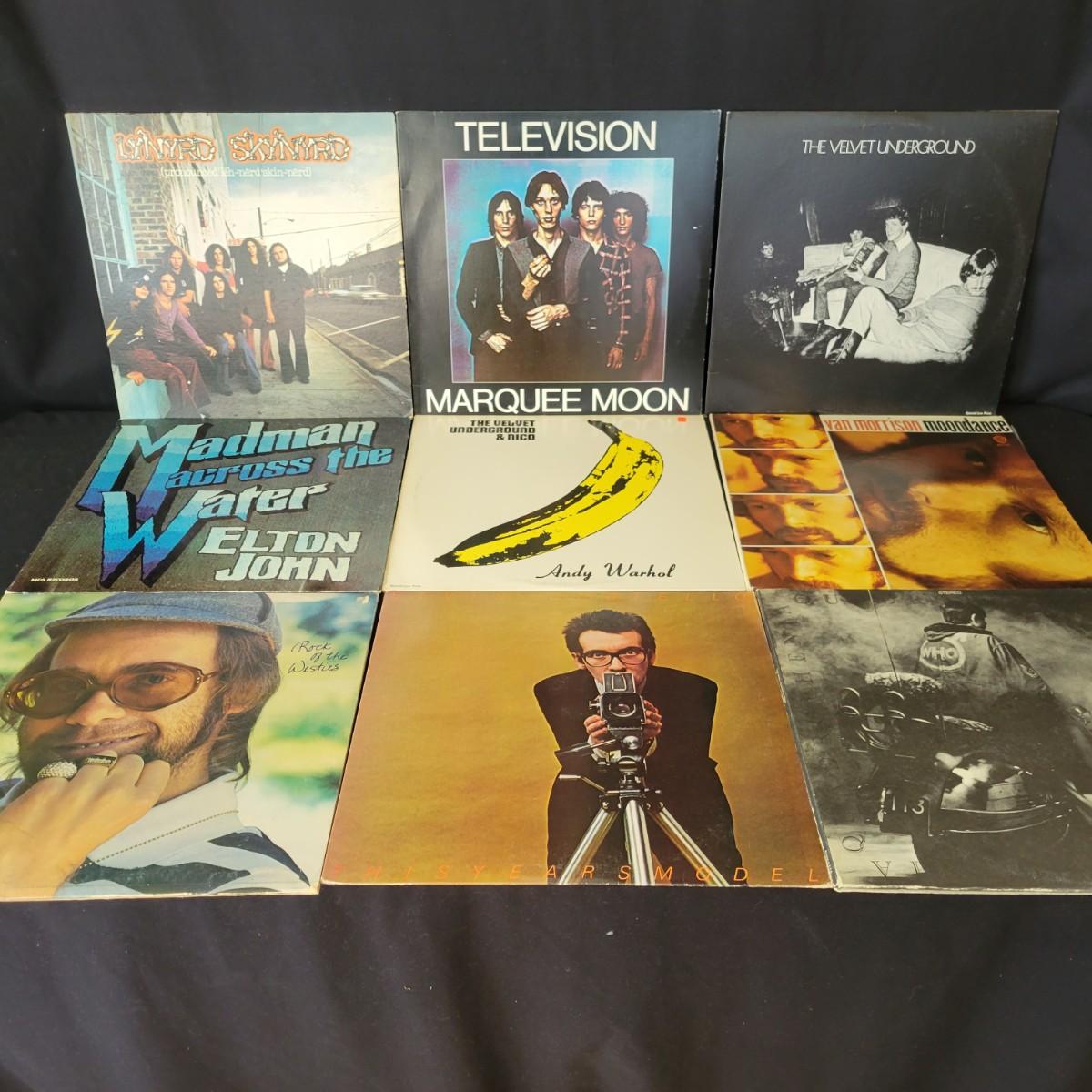 A huge lot of vinyl focused on the rock and punk of the 70s and 80s. Talking Heads, Jimi Hendrix, The Who Pete, Townsend and so many more. Also two books on the history of rock and two album guides. Also includes a handy album crate to carry your treasure home in. Over seventy five albums are included in this lot. Vinyl appears to have normal wear and tear.