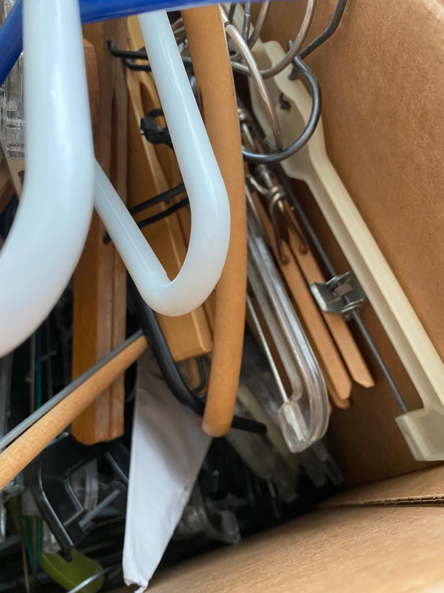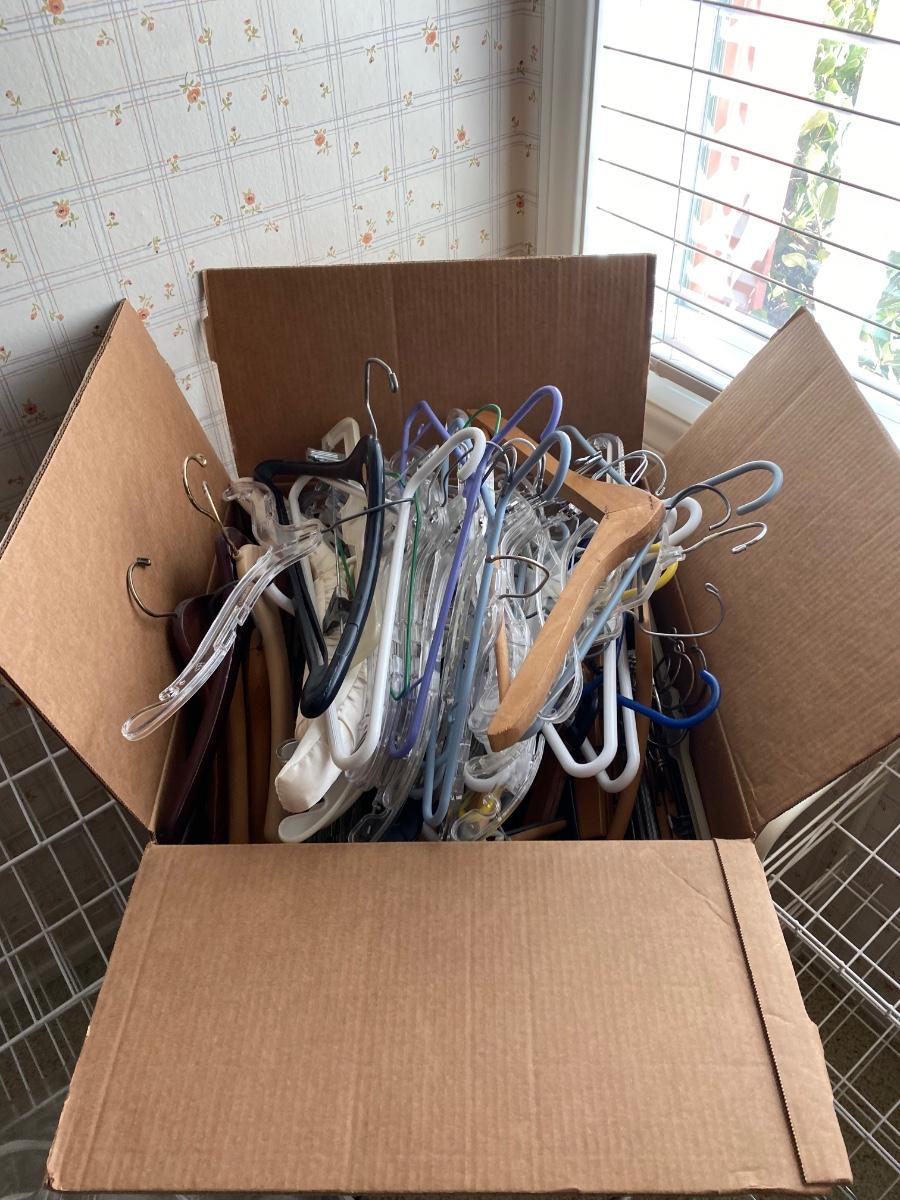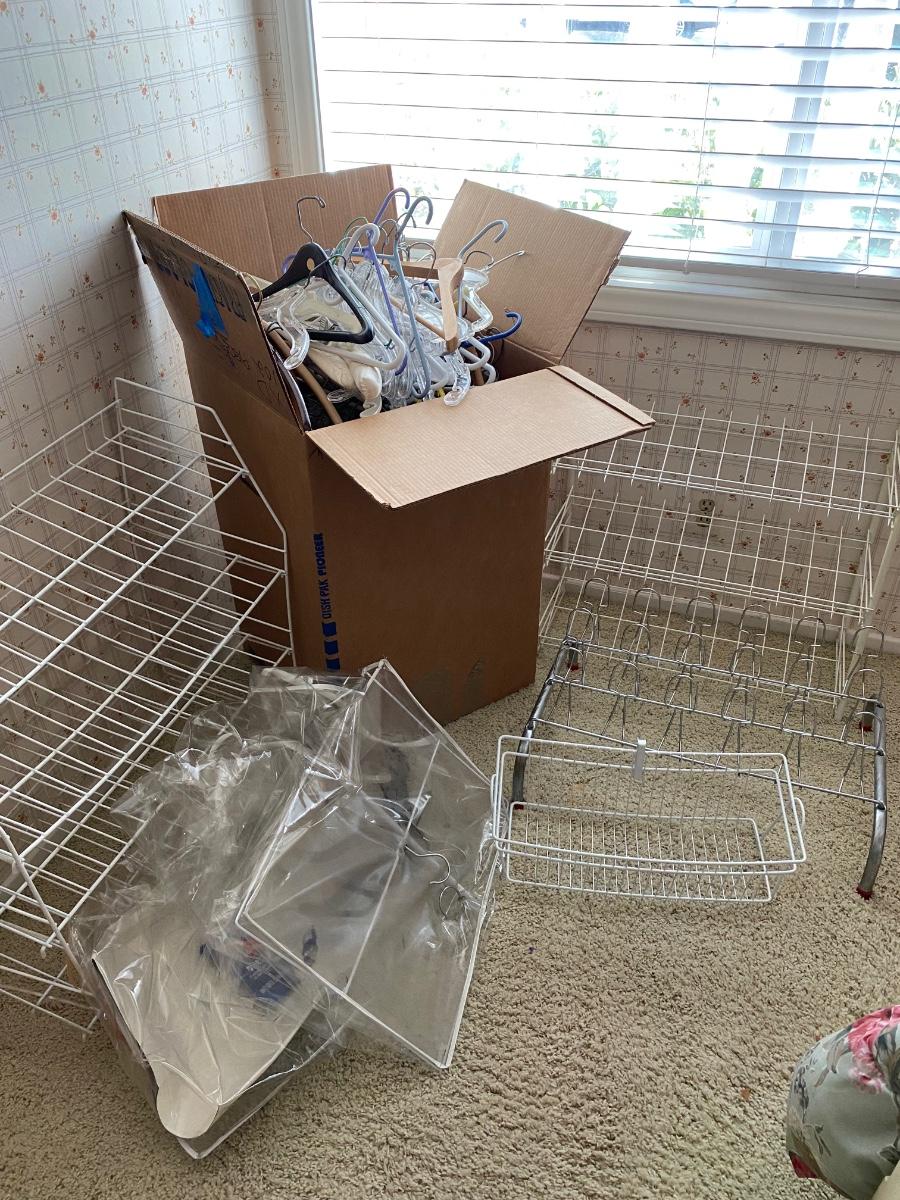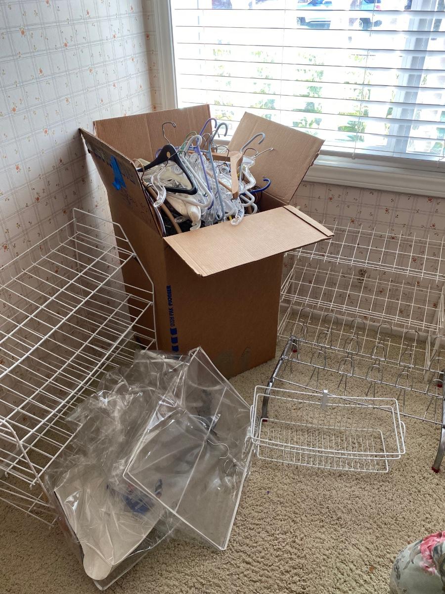 Huge lot of Clothes Hangers and Wire Racks. Box is 18x18x27 filled with all types of hangers.
