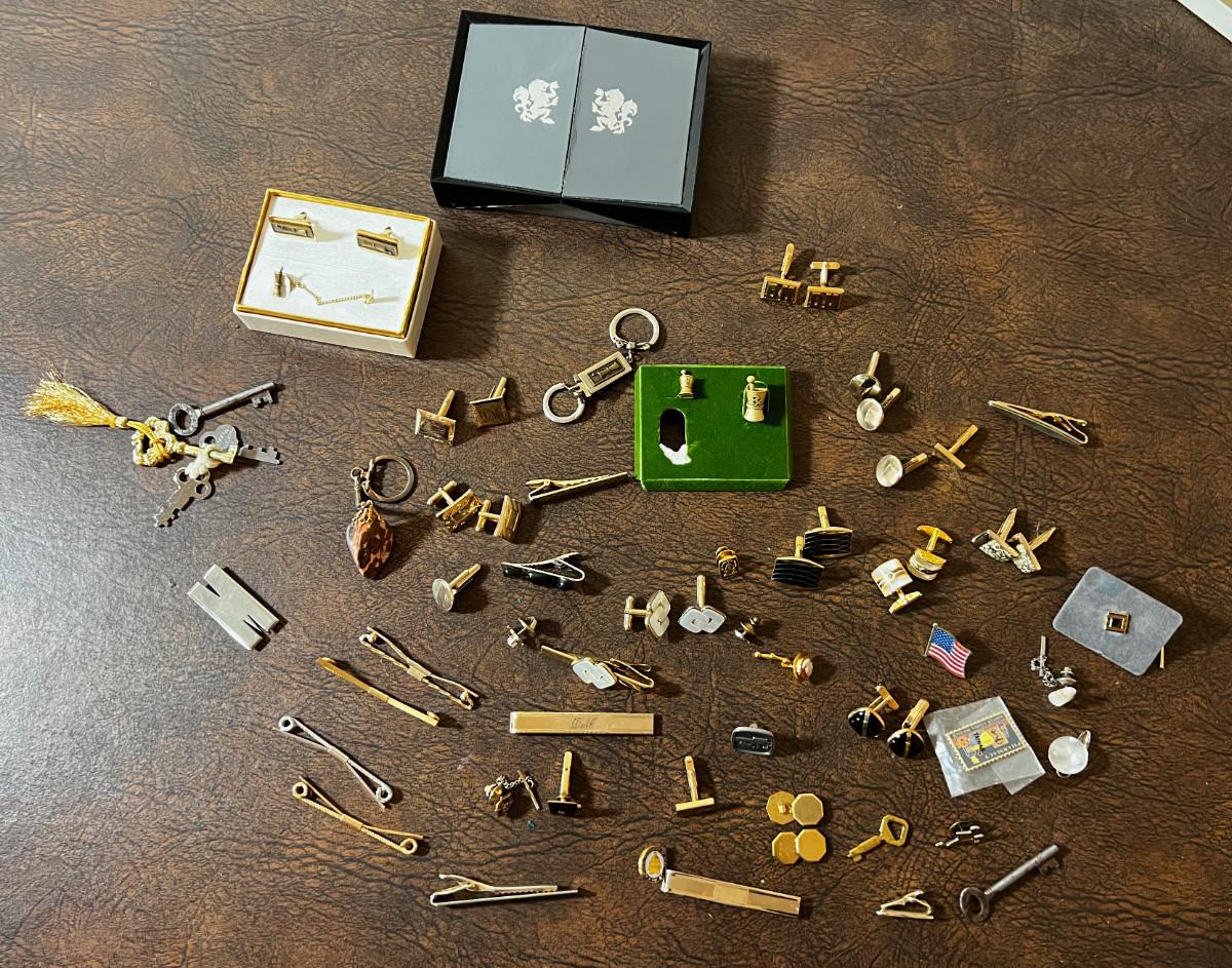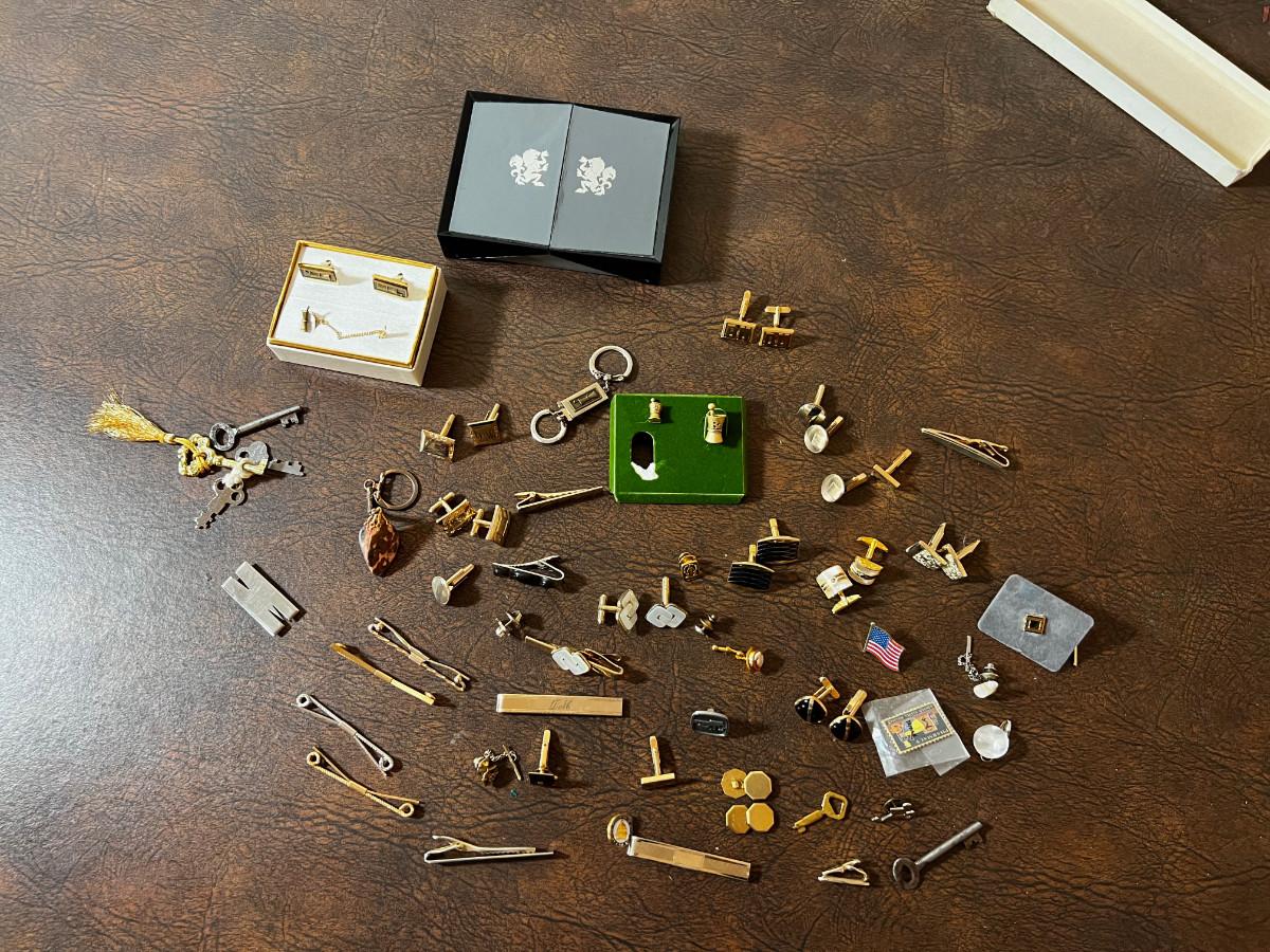 Huge Lot of Men's Jewelry; Tie Clips, Cuff Links, Key Chains etc.
