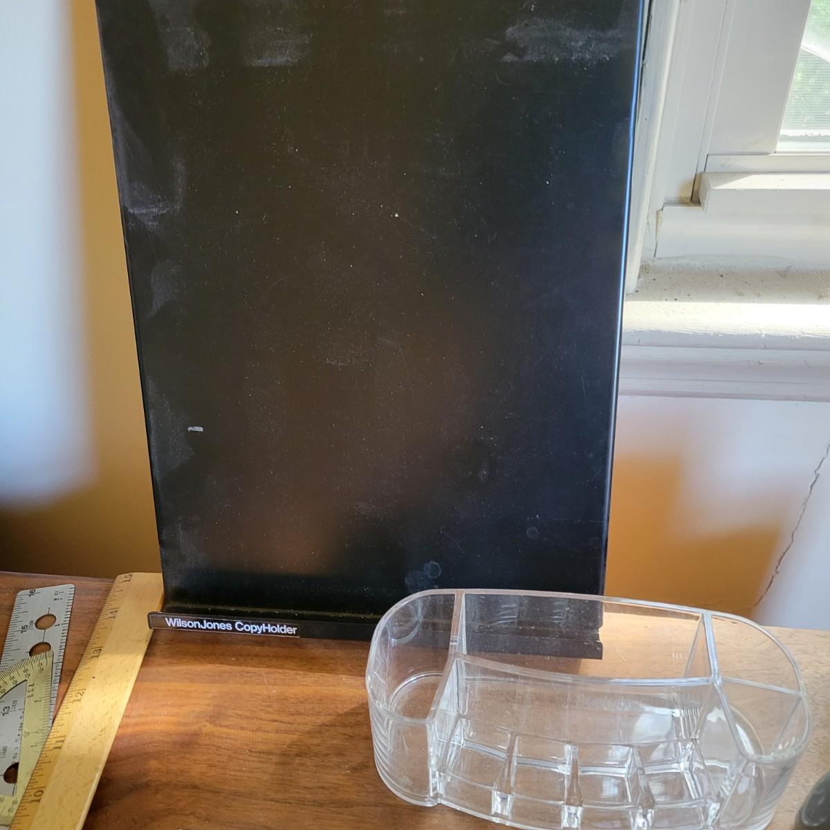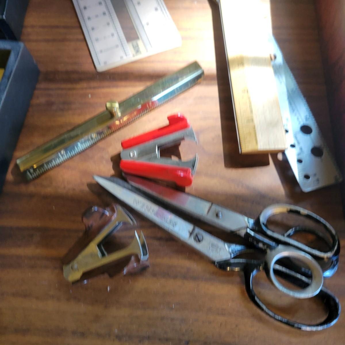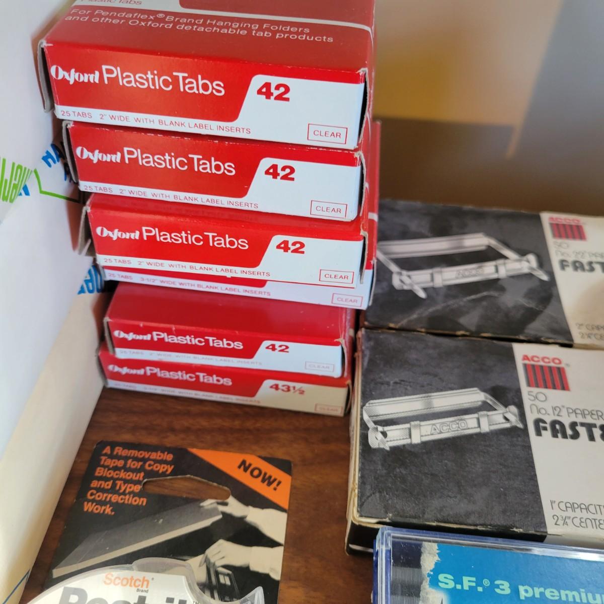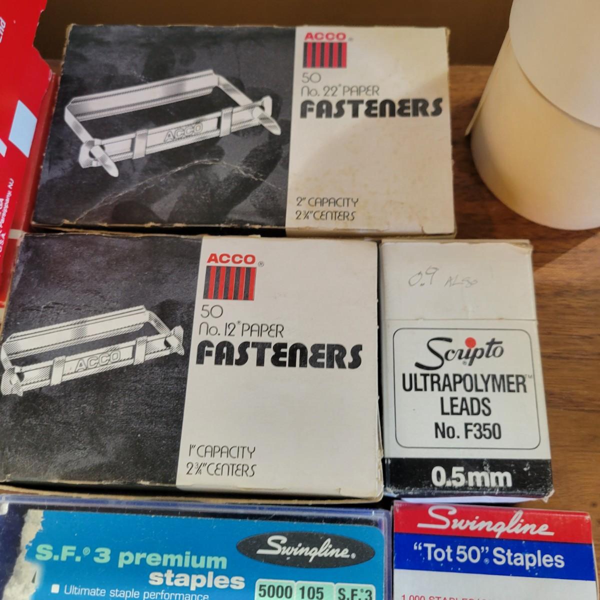Staplers, cork board, lamps, file folders, reems of paper and so much morein this lotnof office supplies. Most items are in good condition or unused. Includes letter trays, rulers, calculator, adding machine, pens, pen holders. Full inventory included in attached pictures. Cork board measures approximately 36" x 24" and has hanging brackets at the top. Adding machine did not power on. Local pickup only
