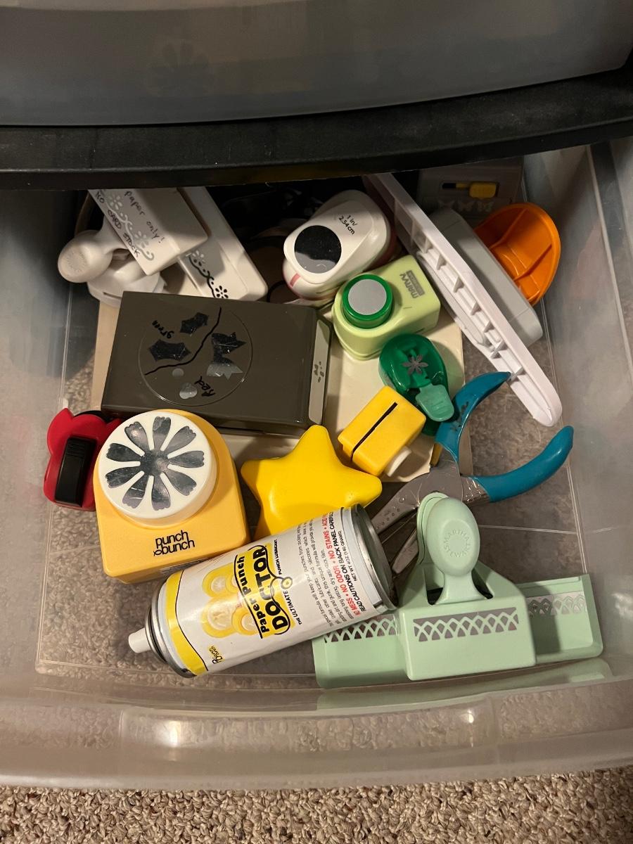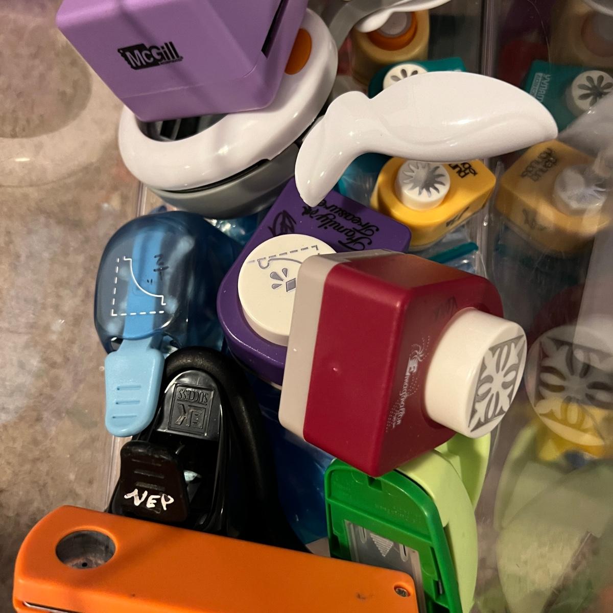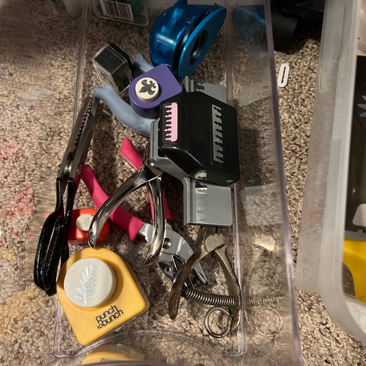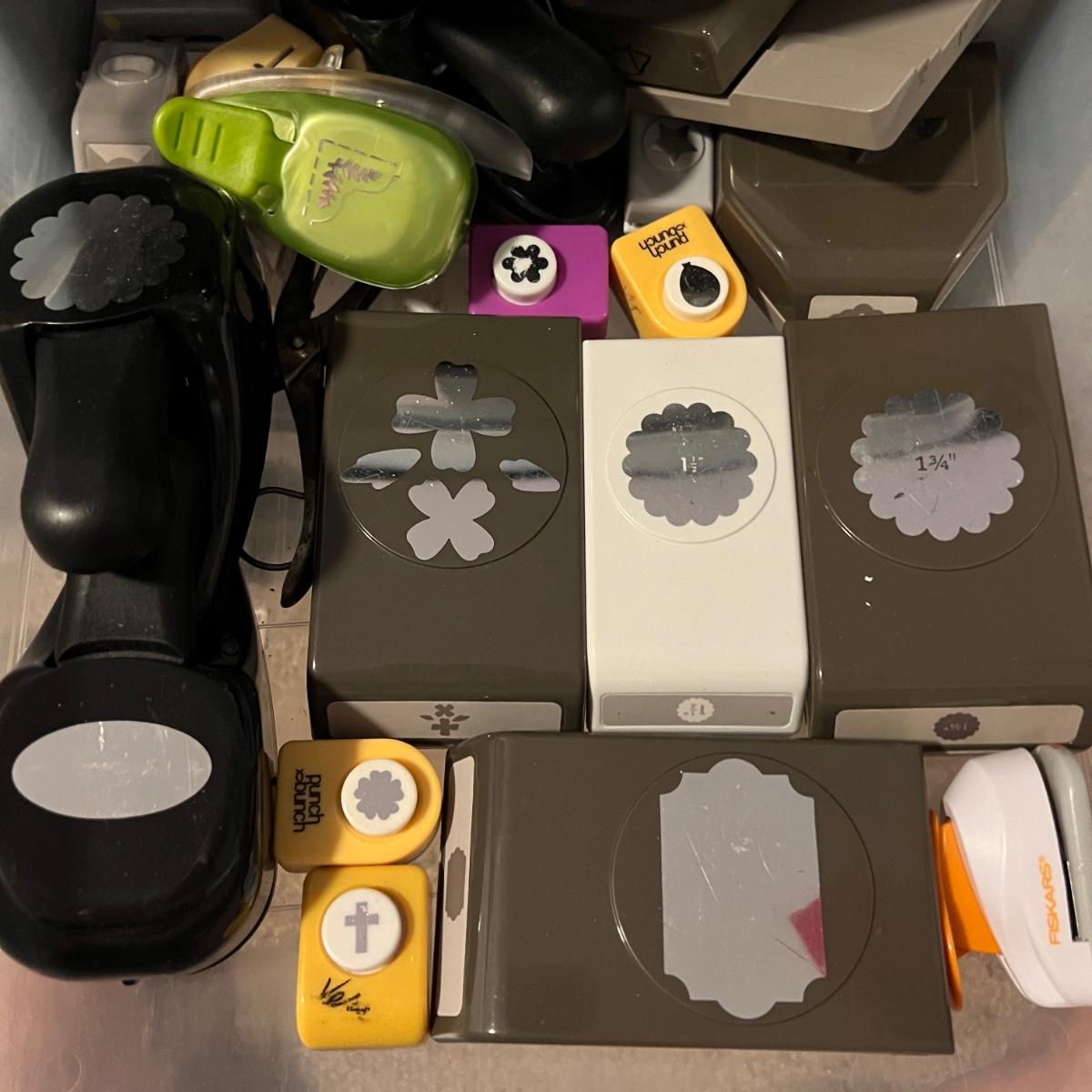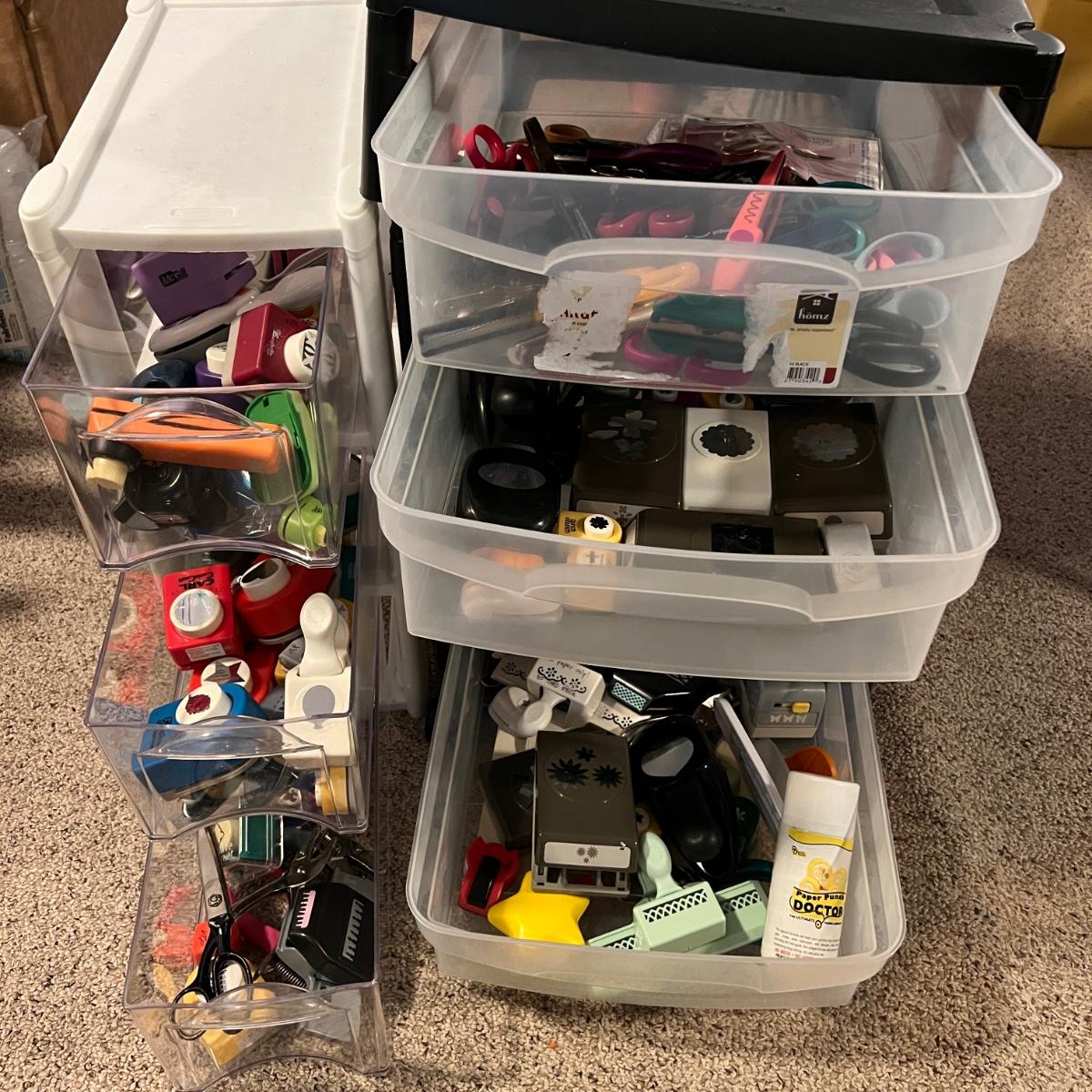 Huge Lot of Paper Punches, Decorative Scissors + 2 Storage Carts