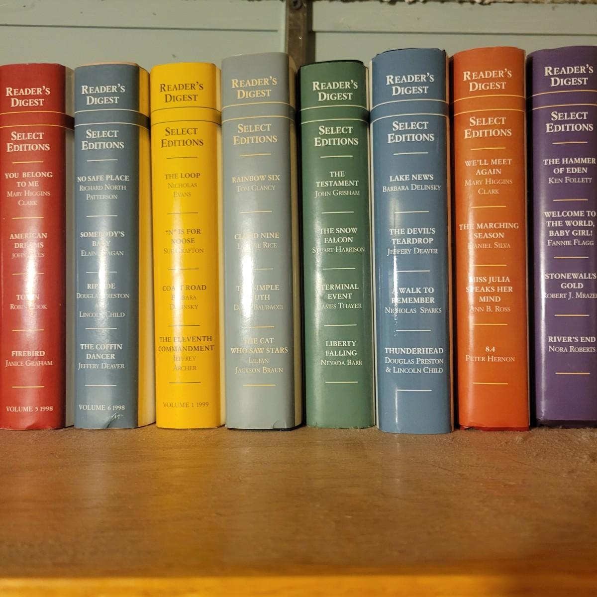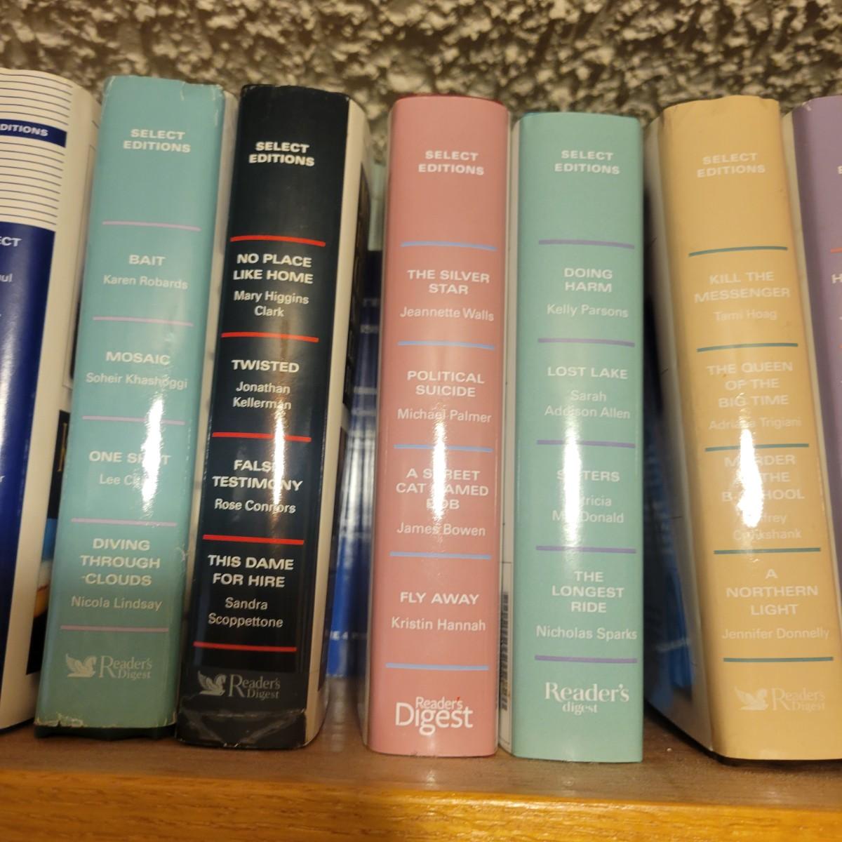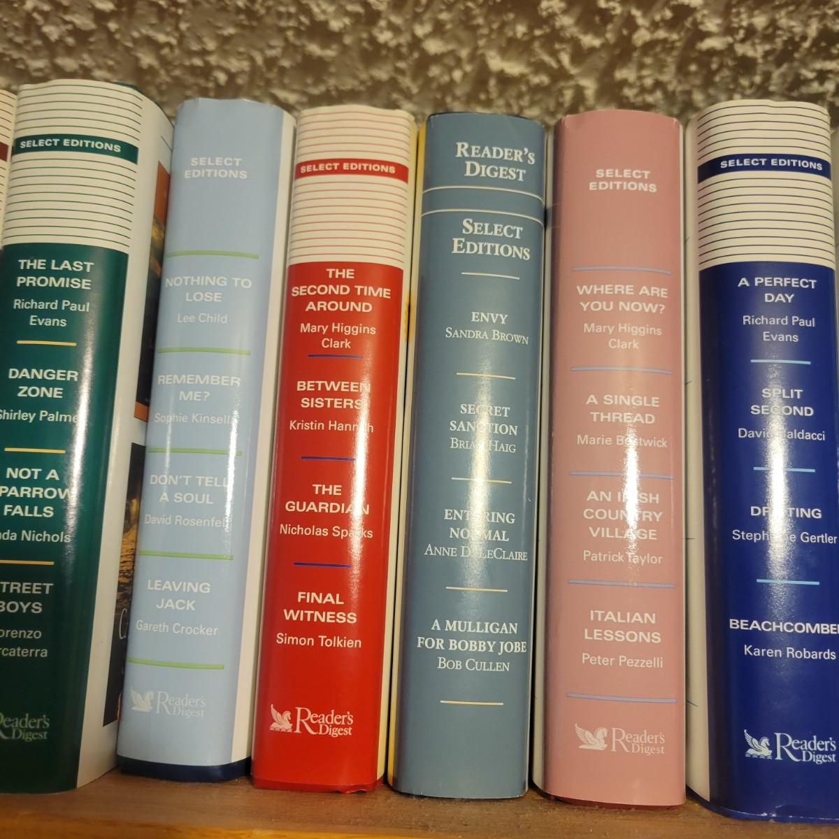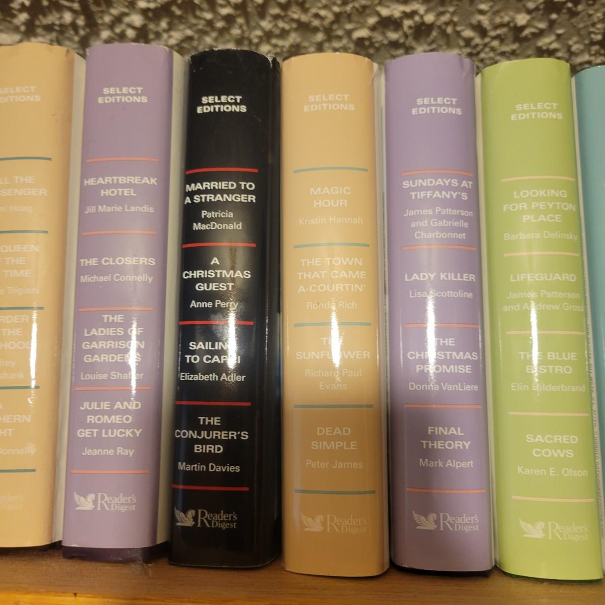 A large selection of Reader's Digest select edition books in good condition. Each book contains four books, so this is a lot of novels. Books are a little dusty, but otherwise in good condition. Upwards of 100 books. Local pickup only