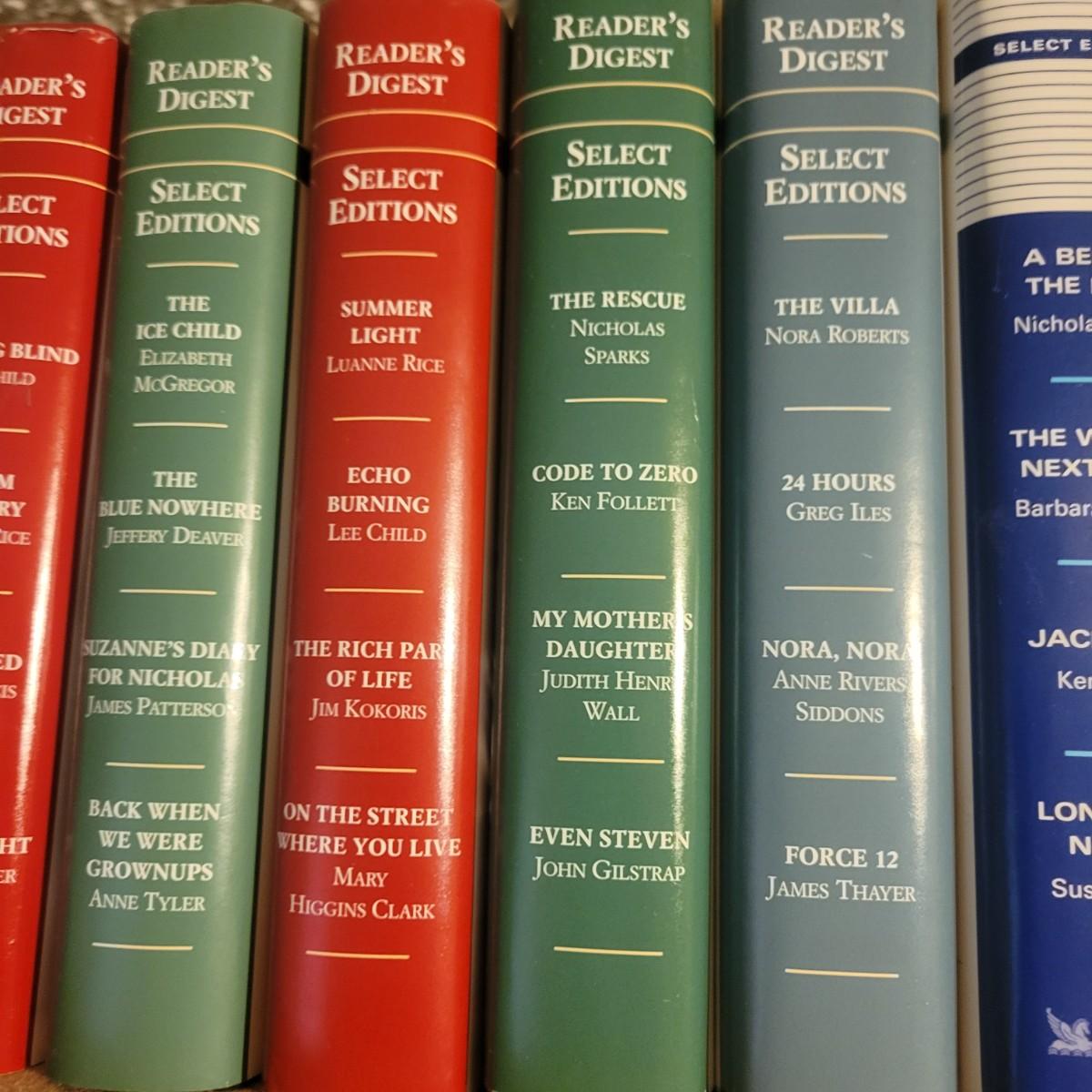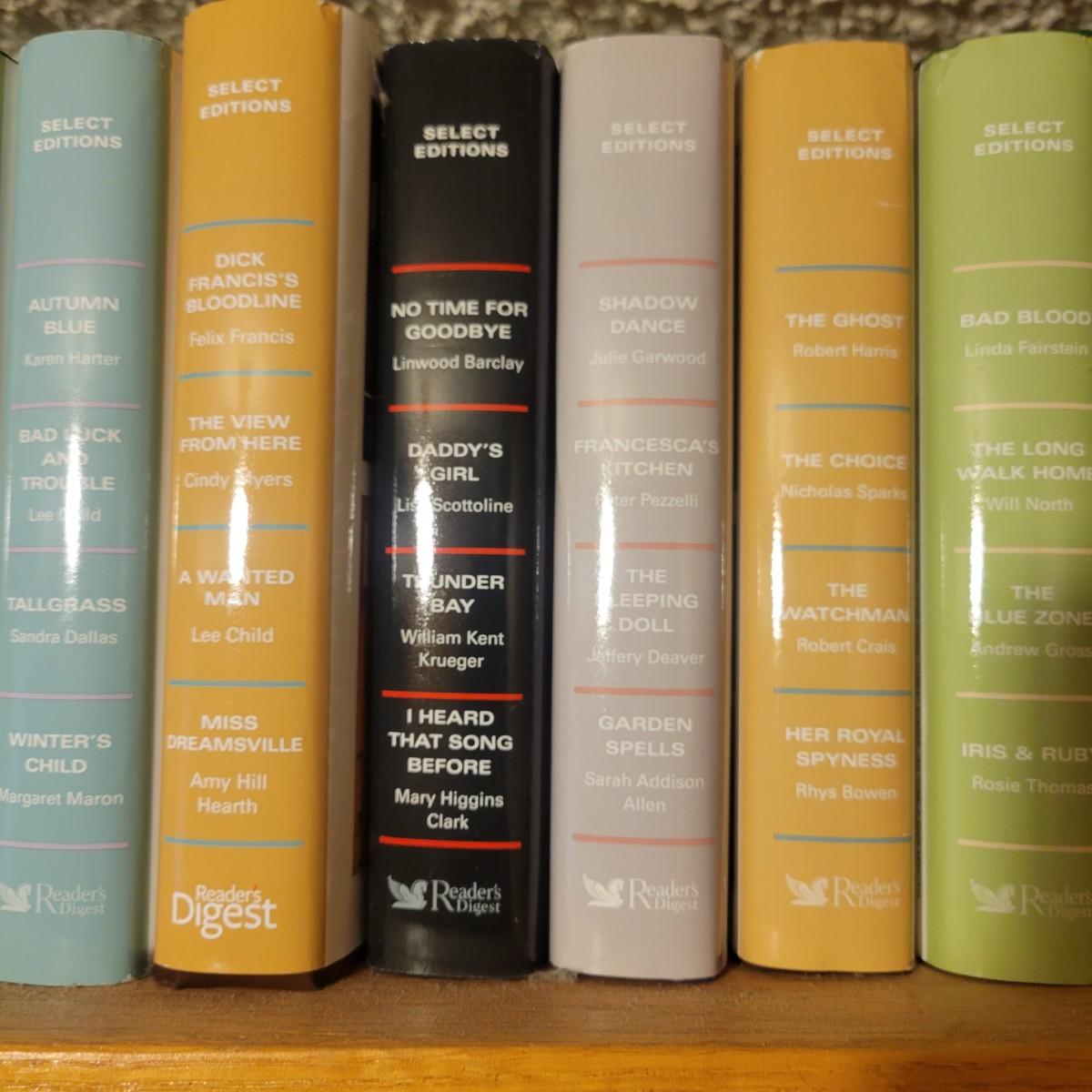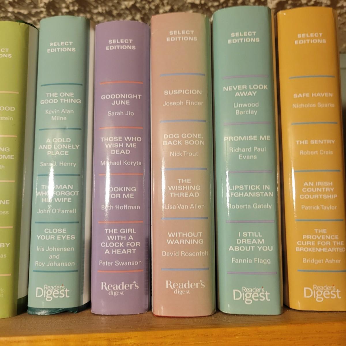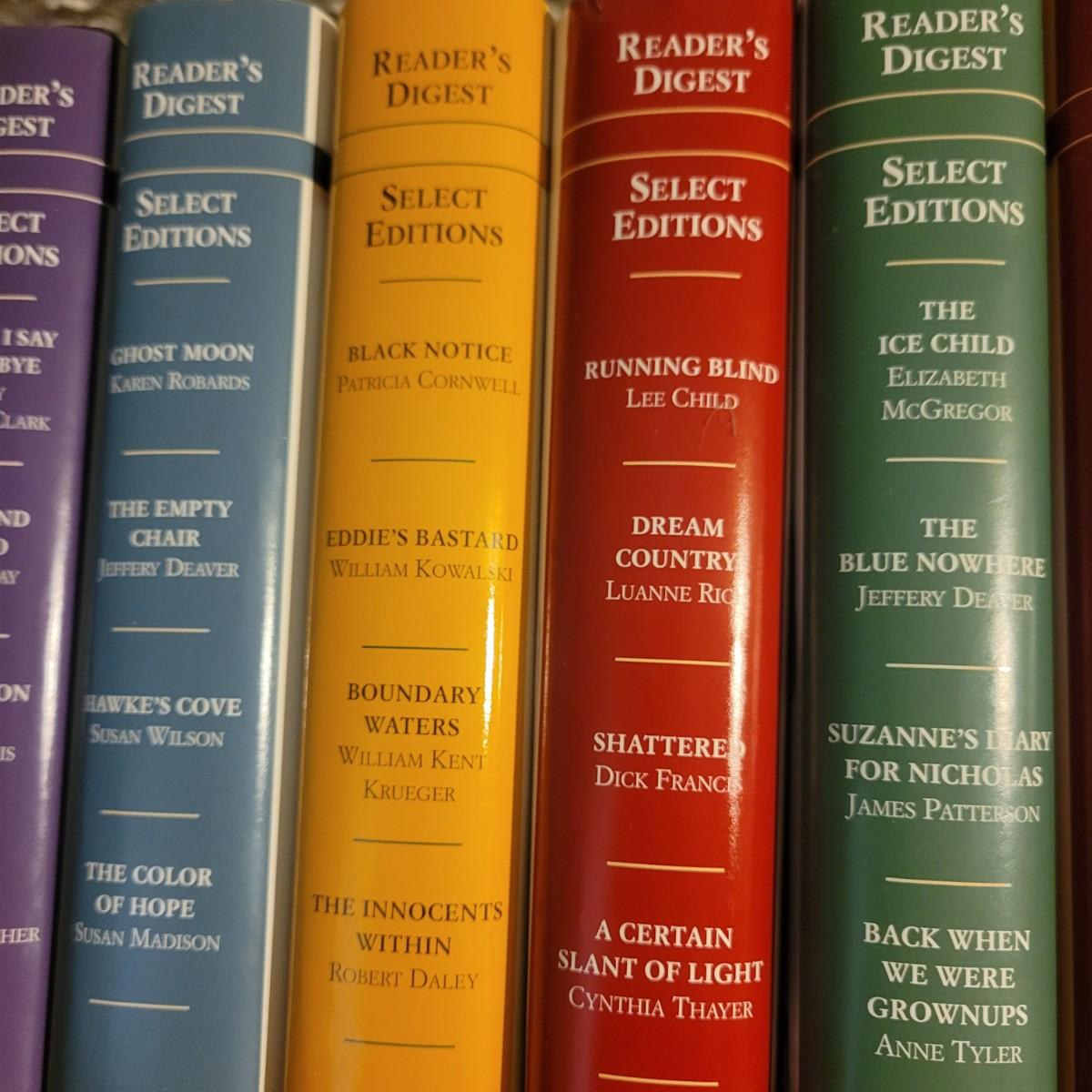 A large selection of Reader's Digest select edition books in good condition. Each book contains four books, so this is a lot of novels. Books are a little dusty, but otherwise in good condition. Upwards of 100 books. Local pickup only