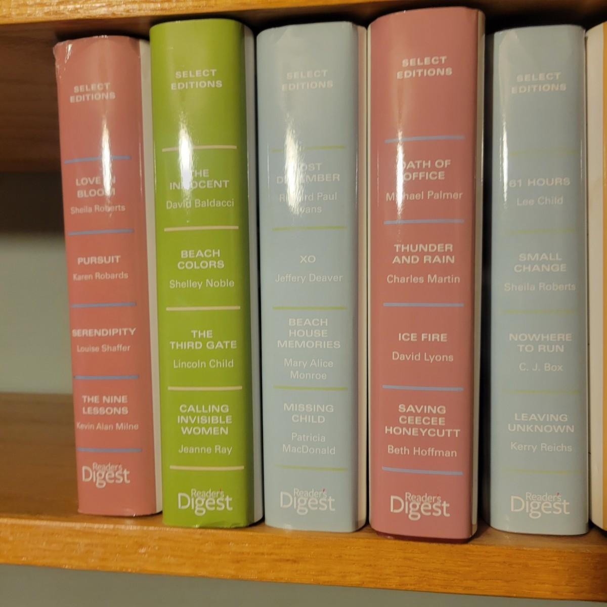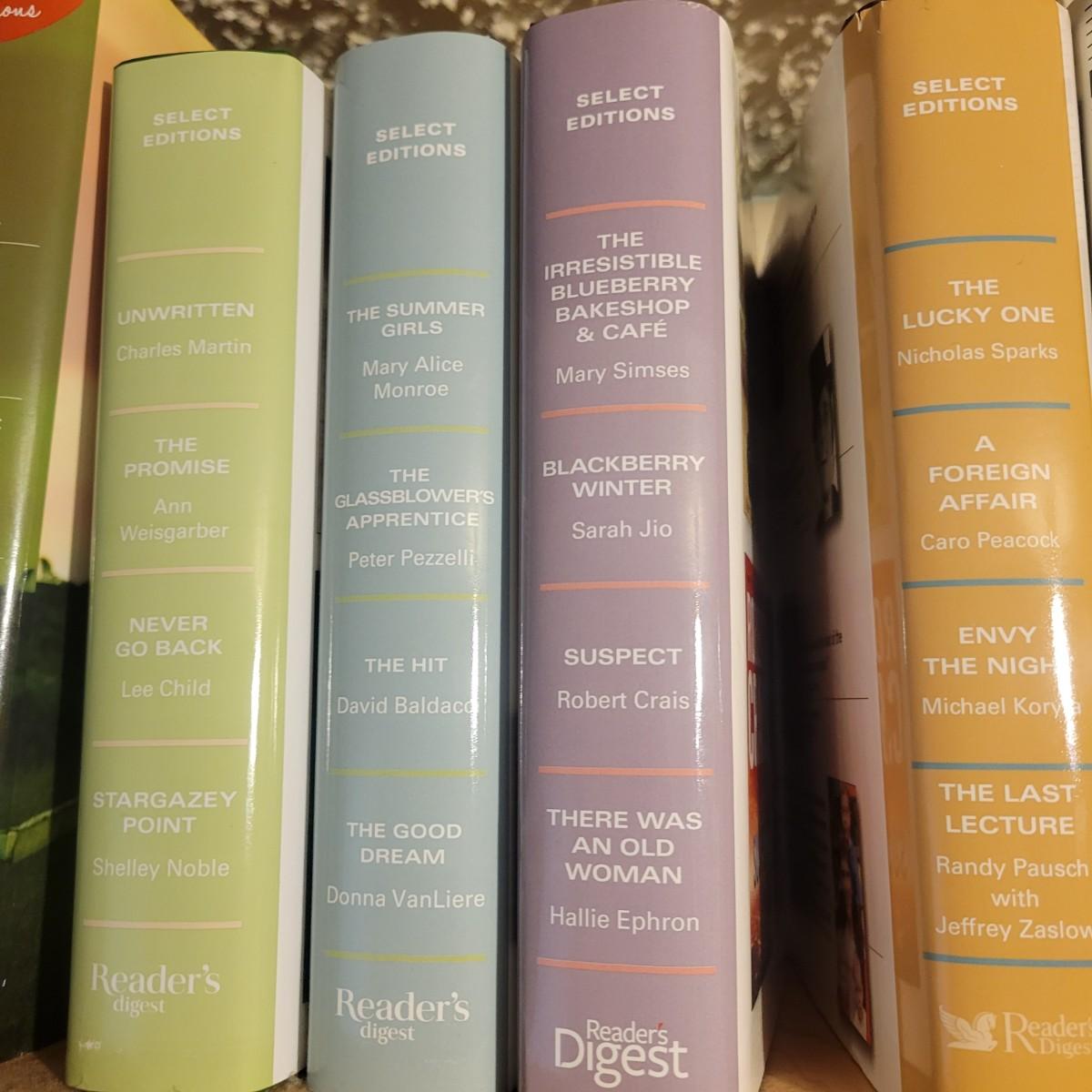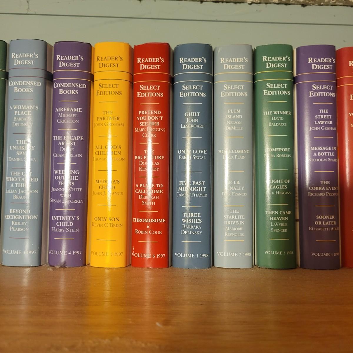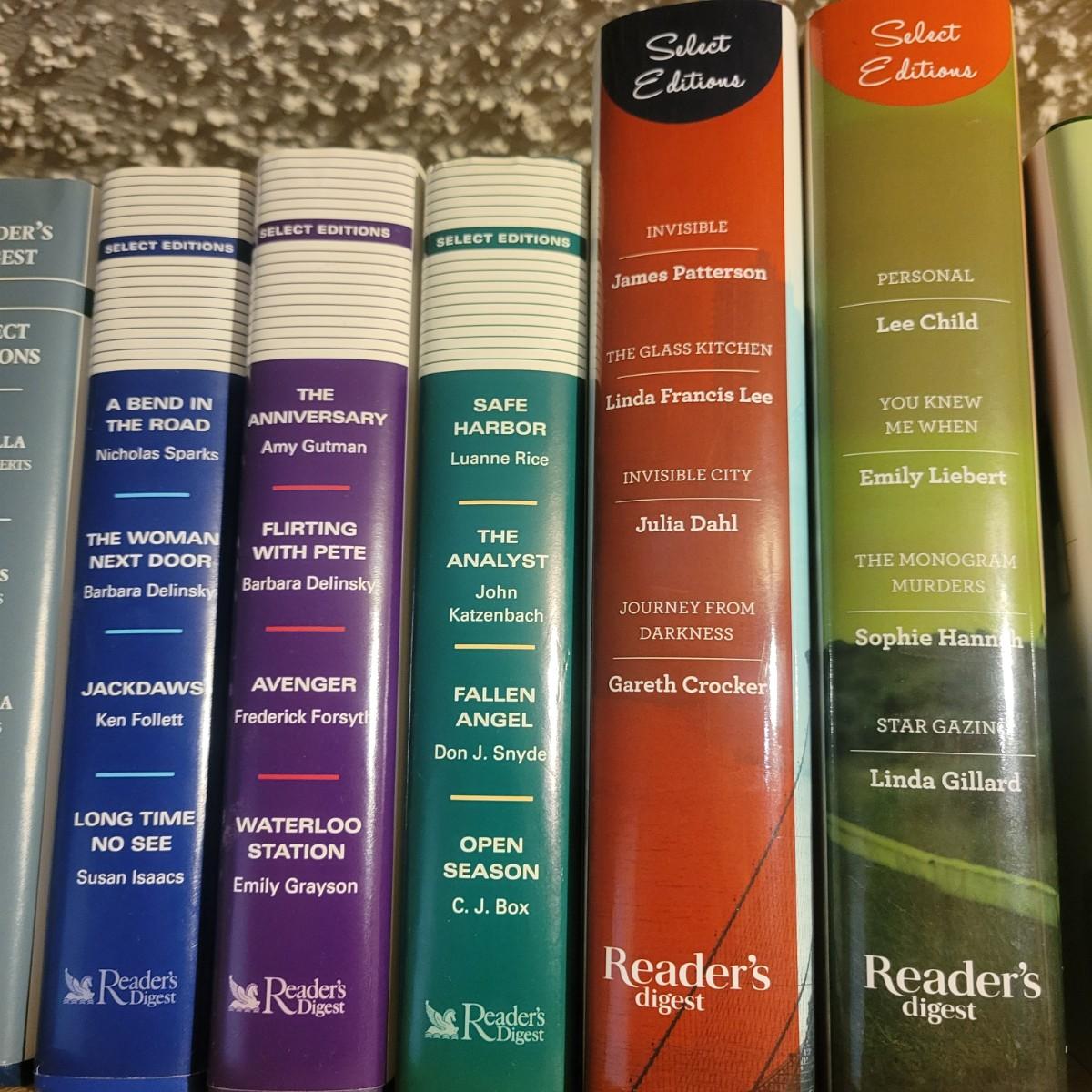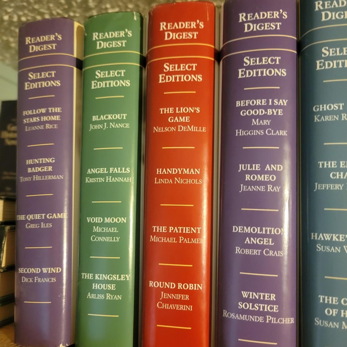 A large selection of Reader's Digest select edition books in good condition. Each book contains four books, so this is a lot of novels. Books are a little dusty, but otherwise in good condition. Upwards of 100 books. Local pickup only