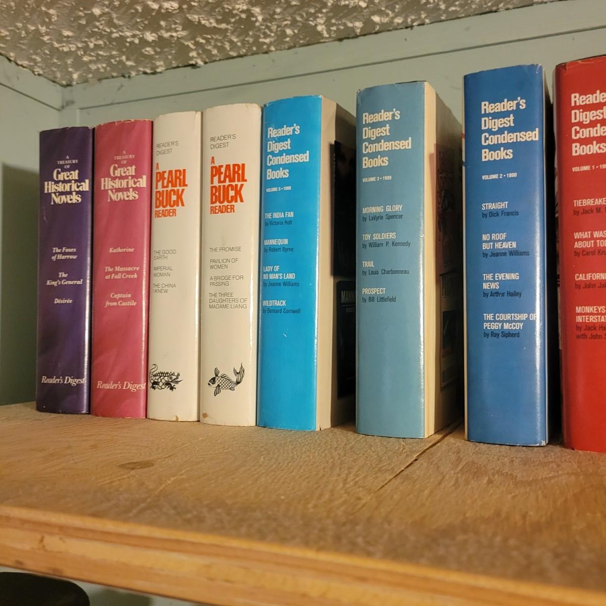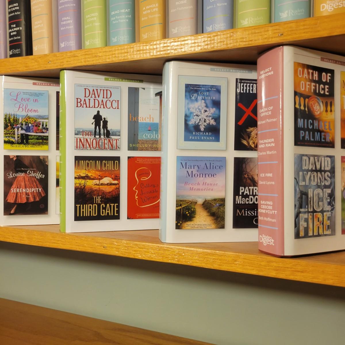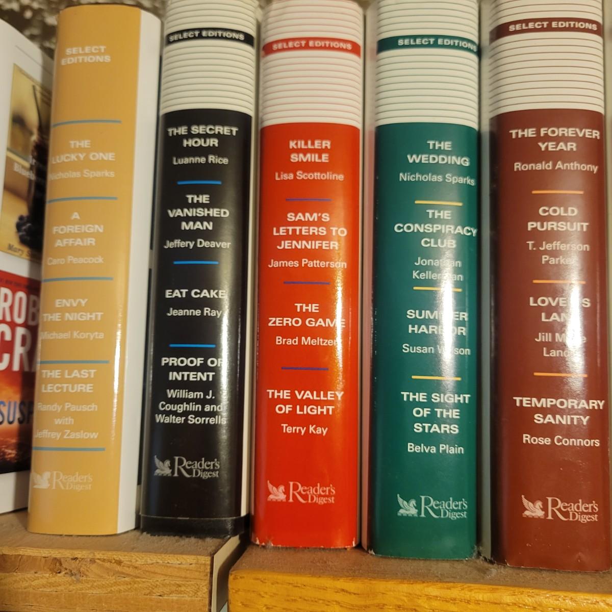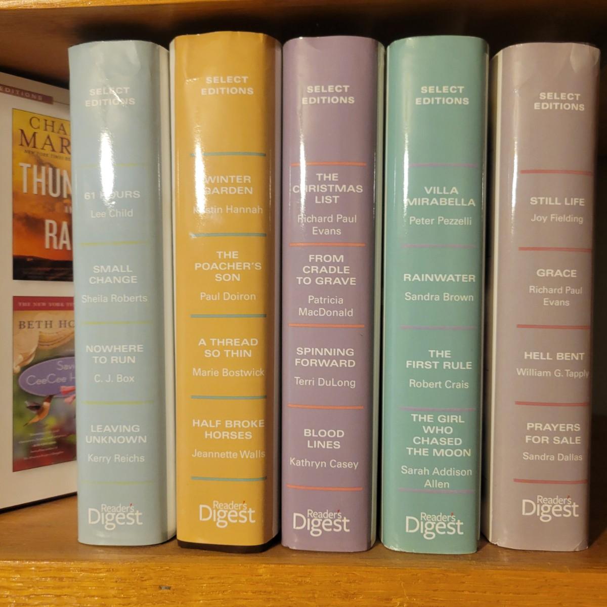 A large selection of Reader's Digest select edition books in good condition. Each book contains four books, so this is a lot of novels. Books are a little dusty, but otherwise in good condition. Upwards of 100 books. Local pickup only