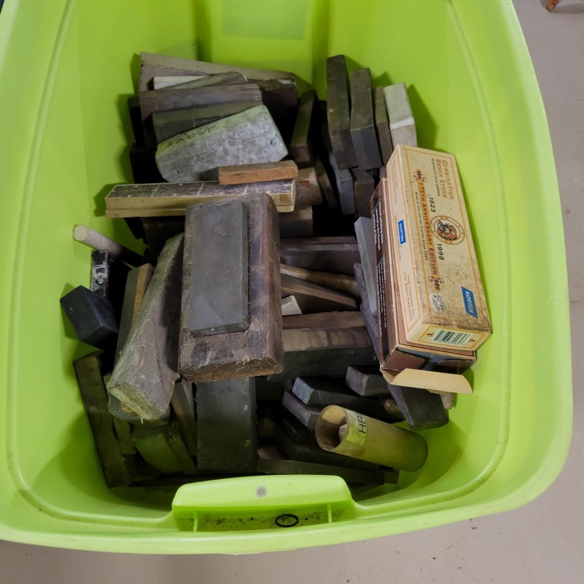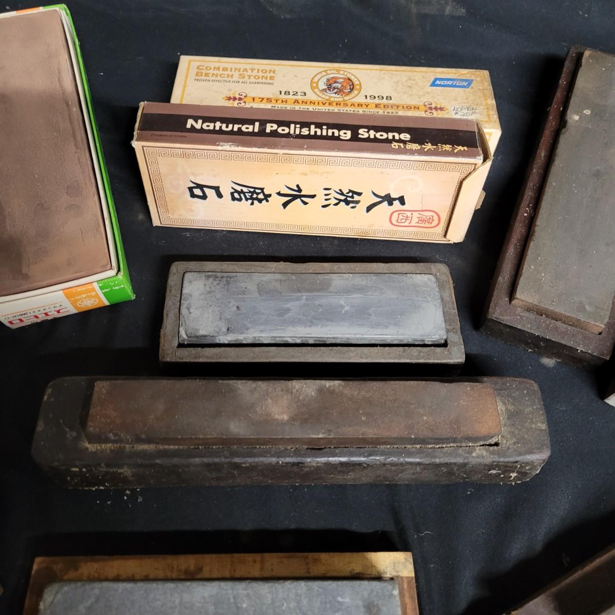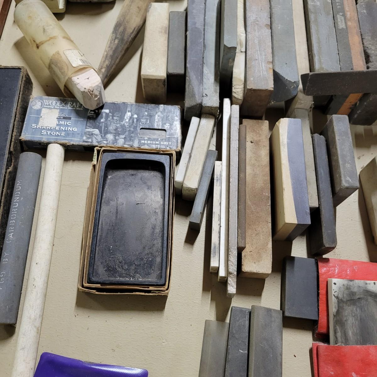 Polishing, Sharpening and whet stones in every shape, size and grit imaginable. Most stones are loose but some have wooden bases. Most are used, some are still in original packaging. Some stones made by WoodCraft and Norton. Combined, there is over 100lbs of stones. Local pickup only