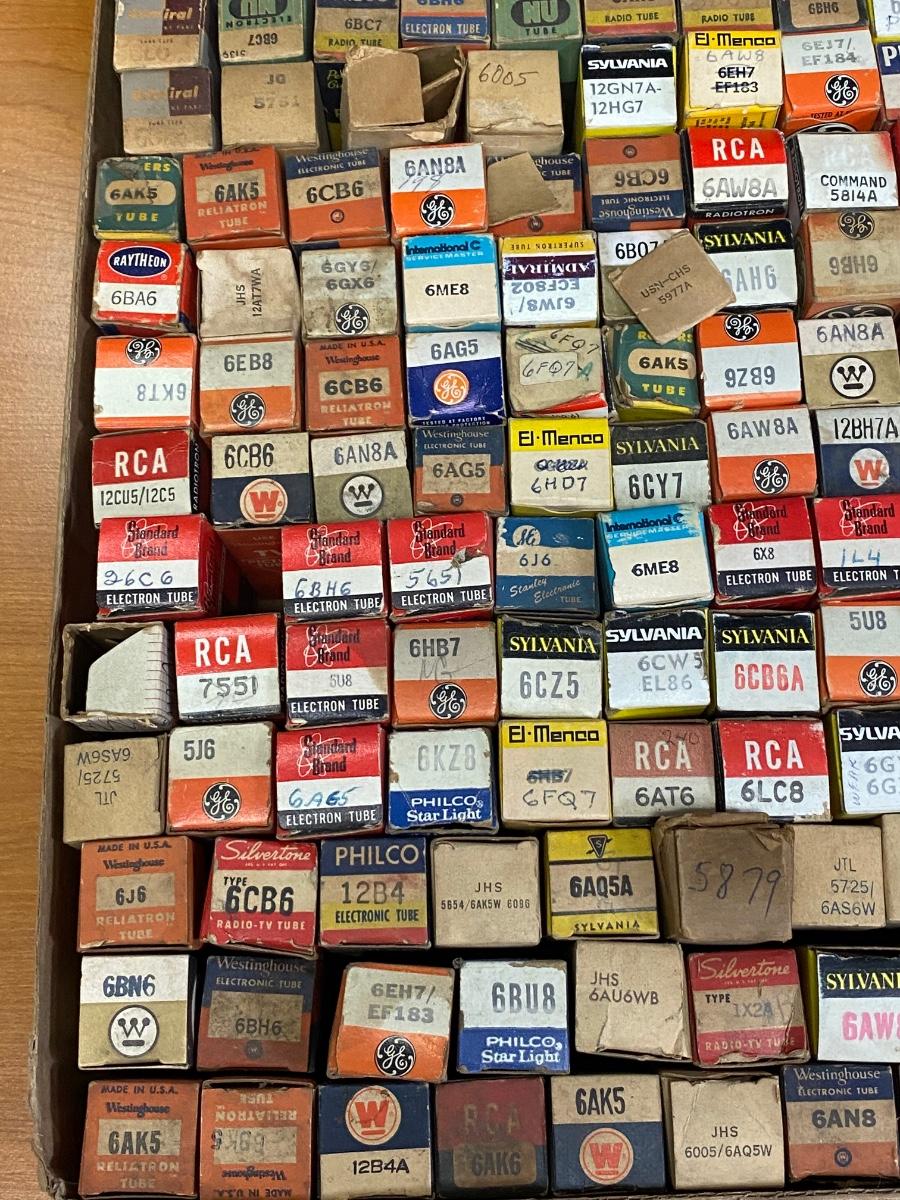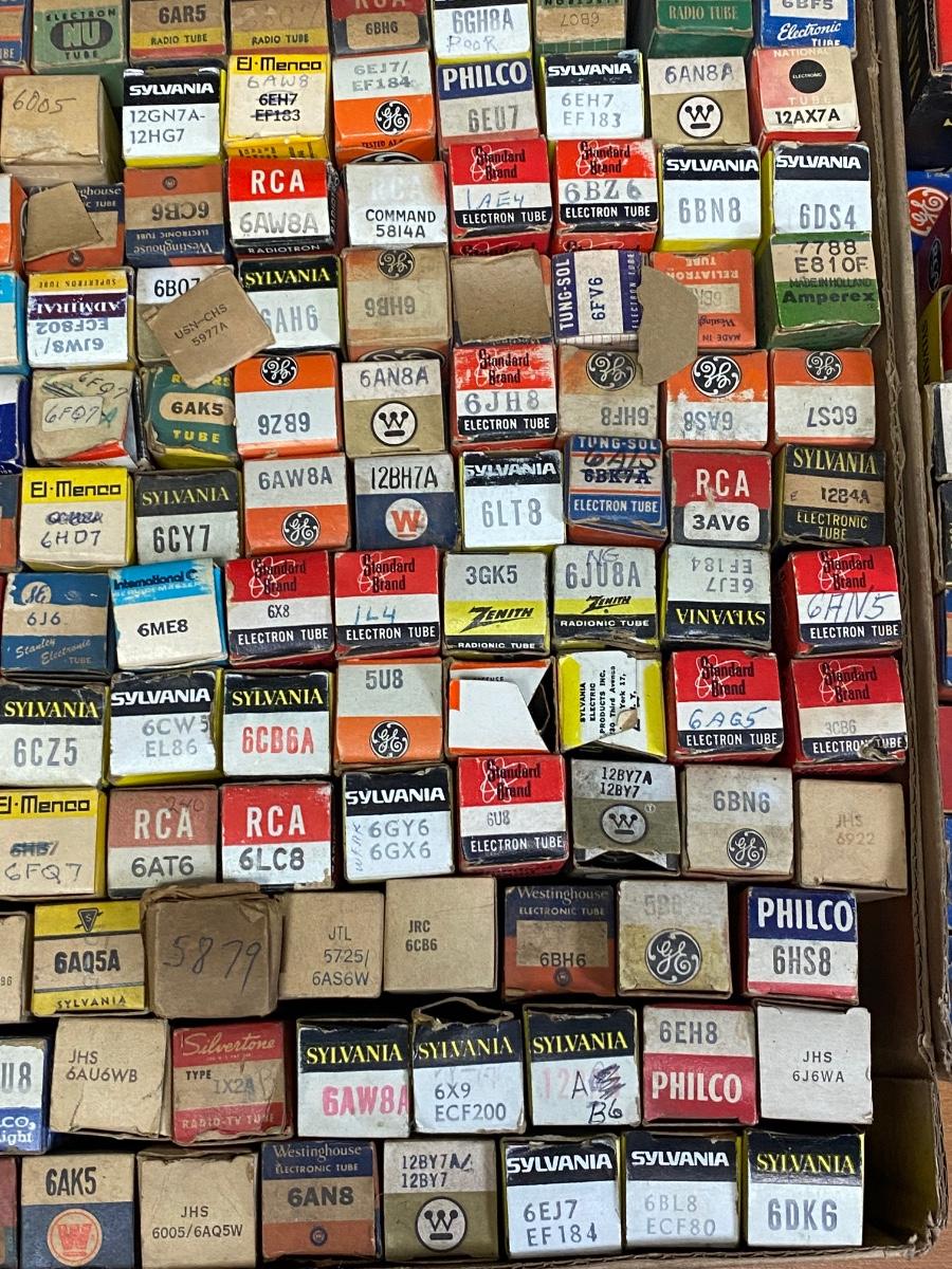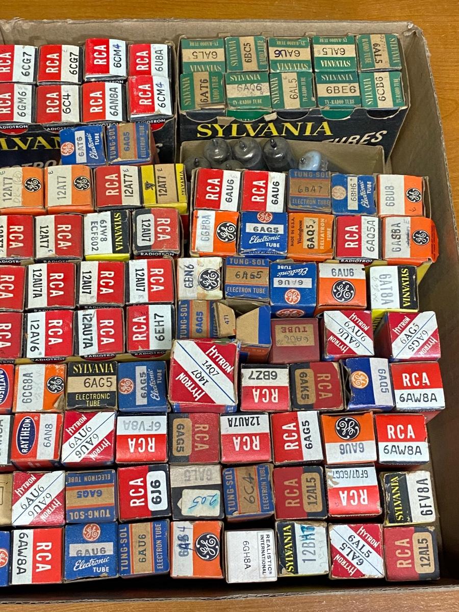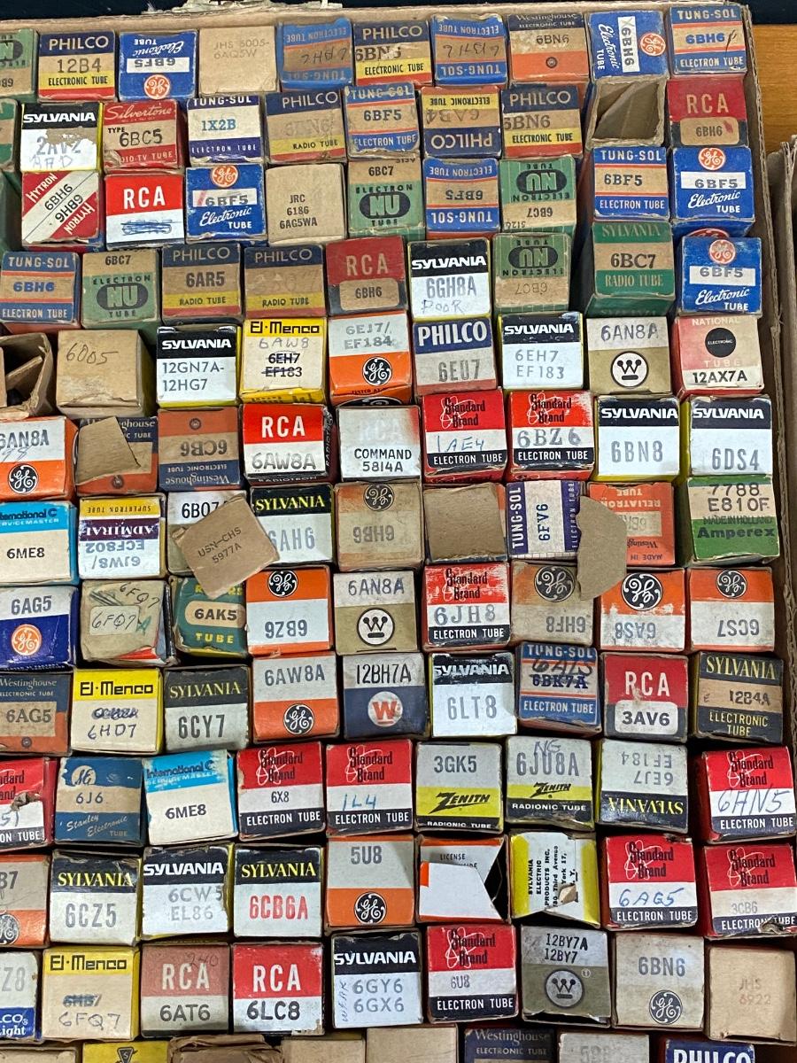 Huge Lot of Small Radio Jukebox Vacuum Tubes. Boxed. Untested. Mixed variety of brands and models.