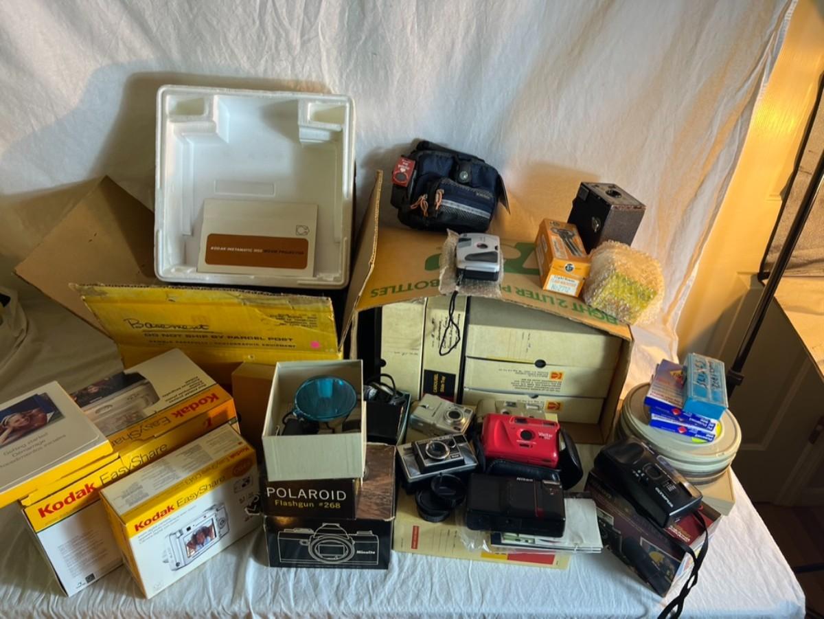Huge Lot of Vintage Camera Equipment, Cameras, Film, Film Projector Kodak Polaroid