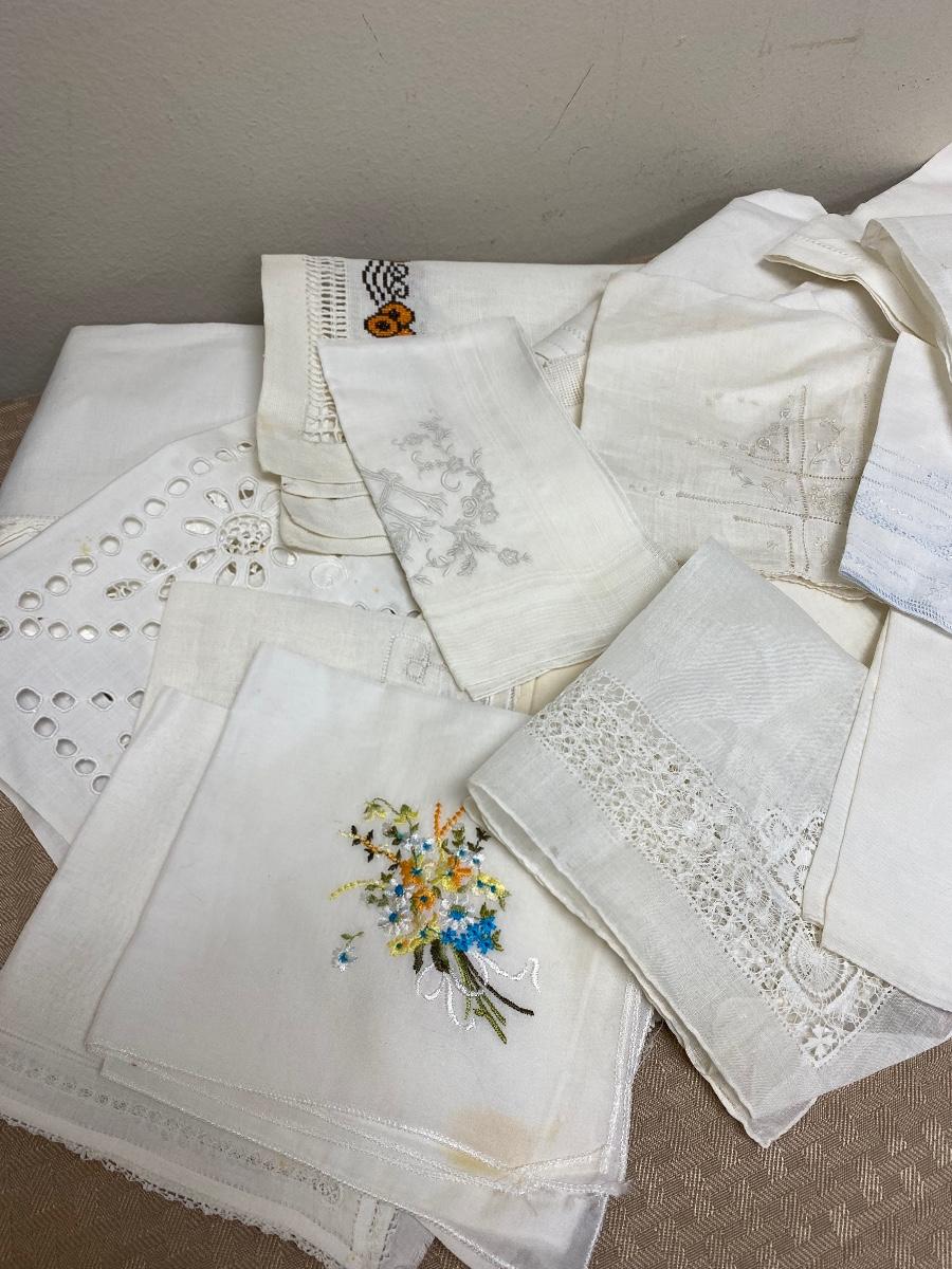 Huge Lot of Vintage Embroidered Linen Handkerchiefs Napkins Pocket Squares