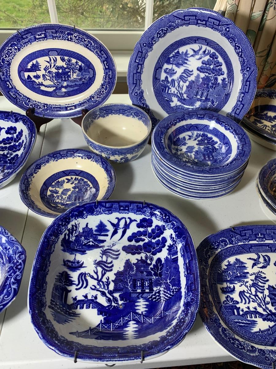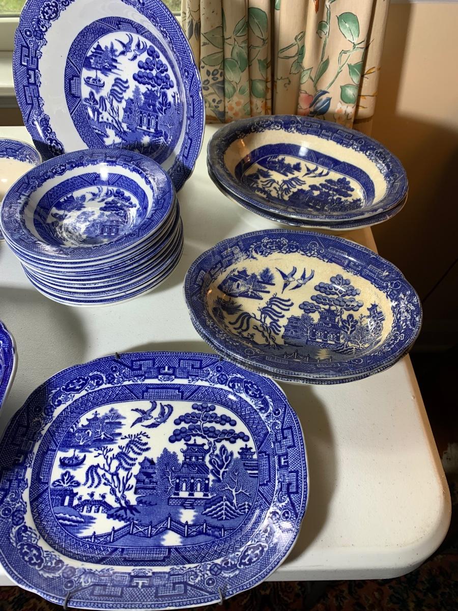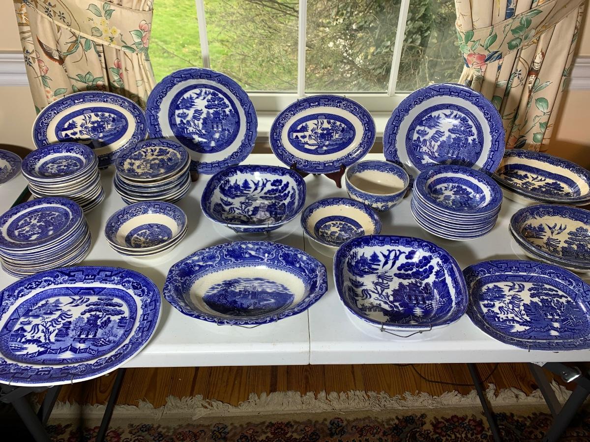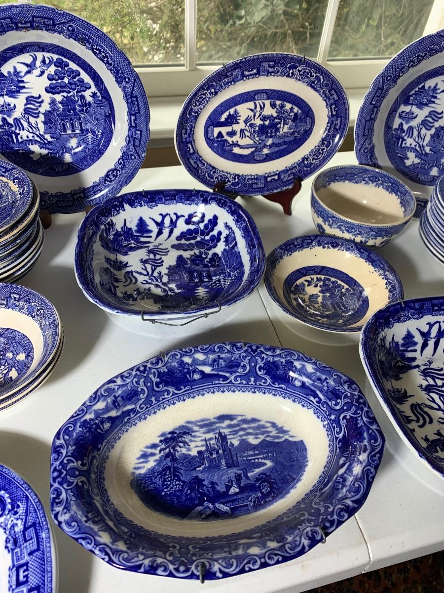 HUGE LOT - Vintage Flow Blue Serving Bowls & Casserole Dishes