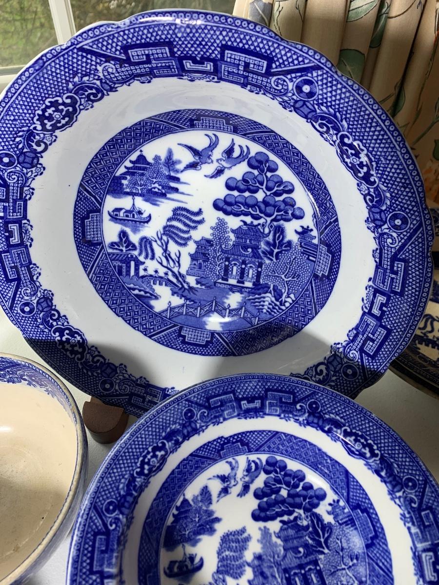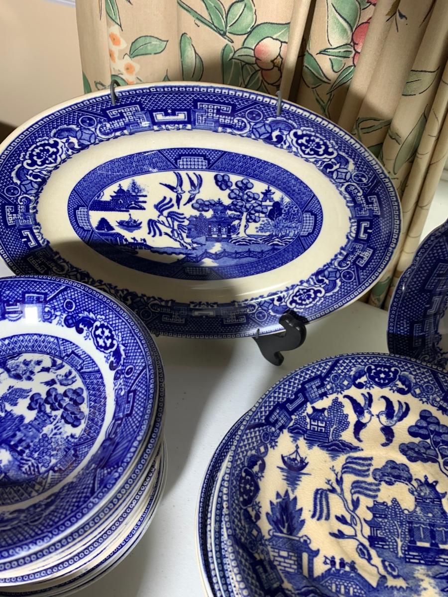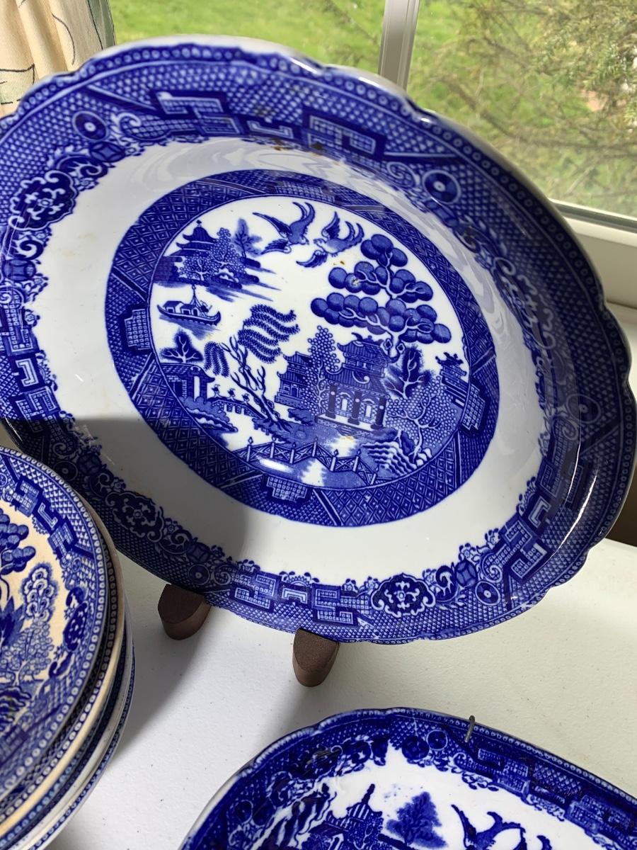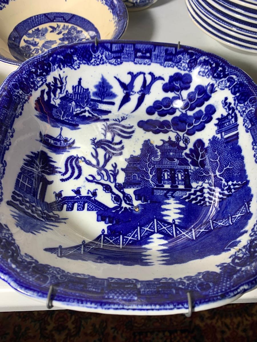 HUGE LOT - Vintage Flow Blue Serving Bowls & Casserole Dishes
