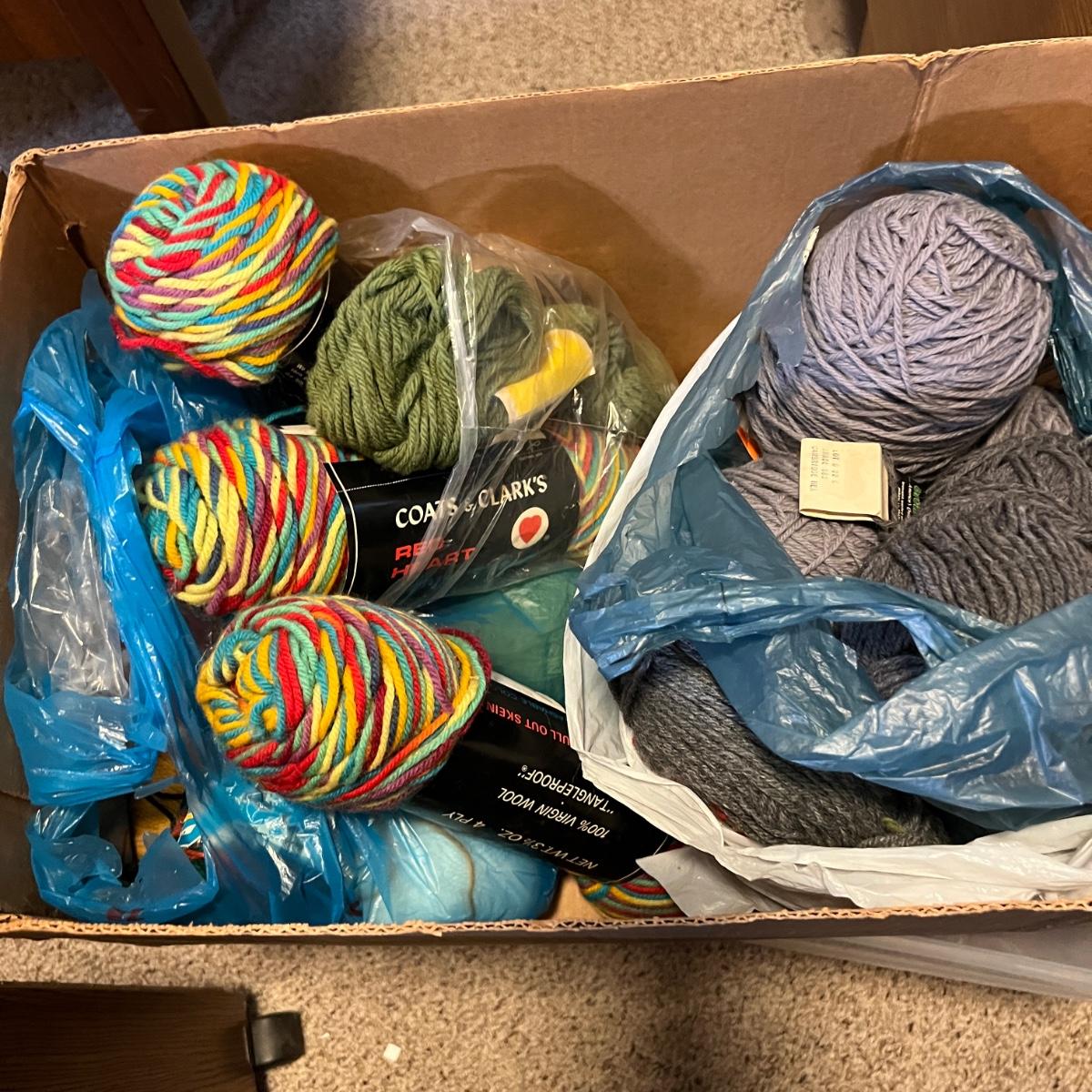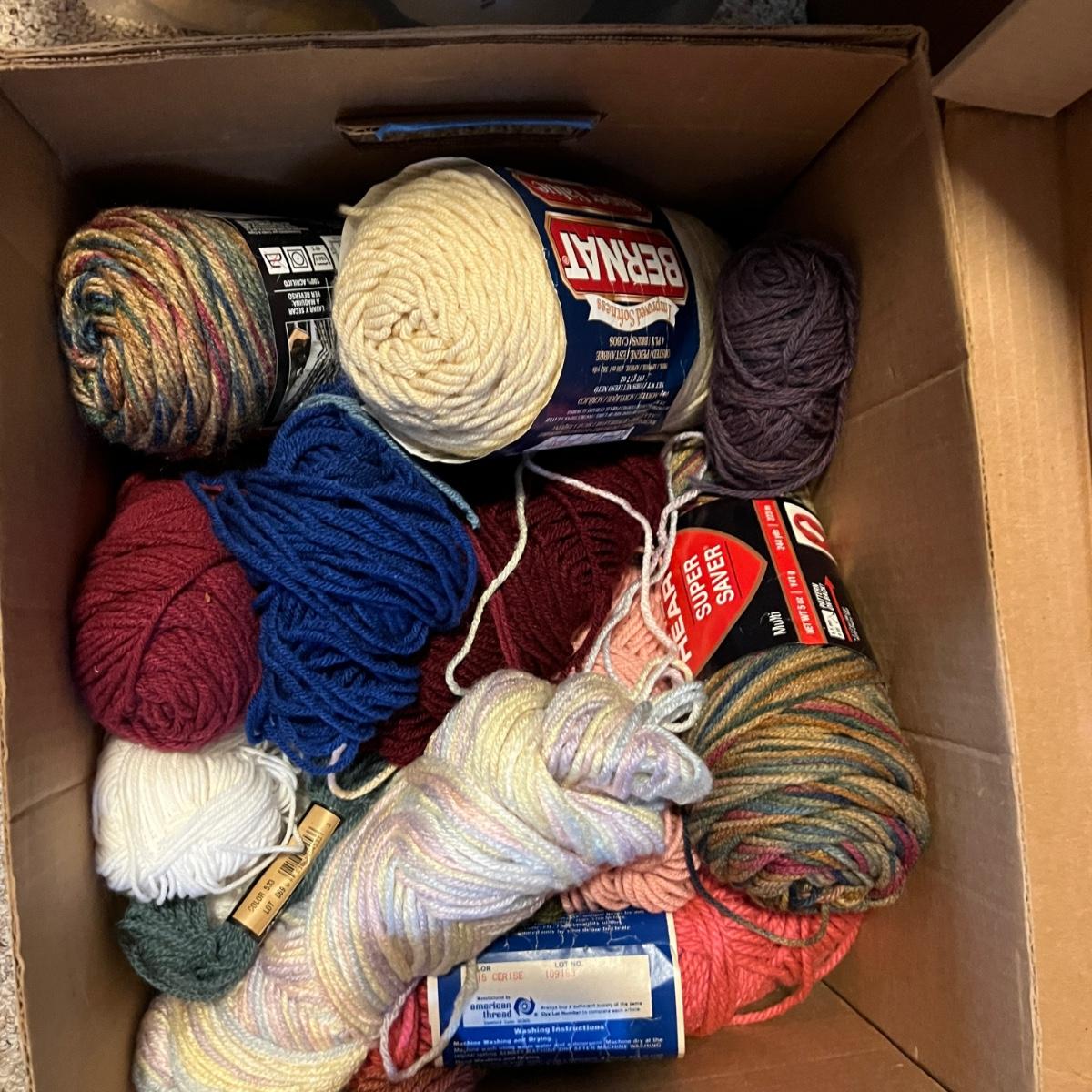 Lots of yarn and different types as well. Box of project, patterns, etc. Buying "as is - as found" in this wonderful estate. See ALL PHOTOS for content, condition, & dimensions. NEVER a Buyer's Premium or Credit Card Fee added.