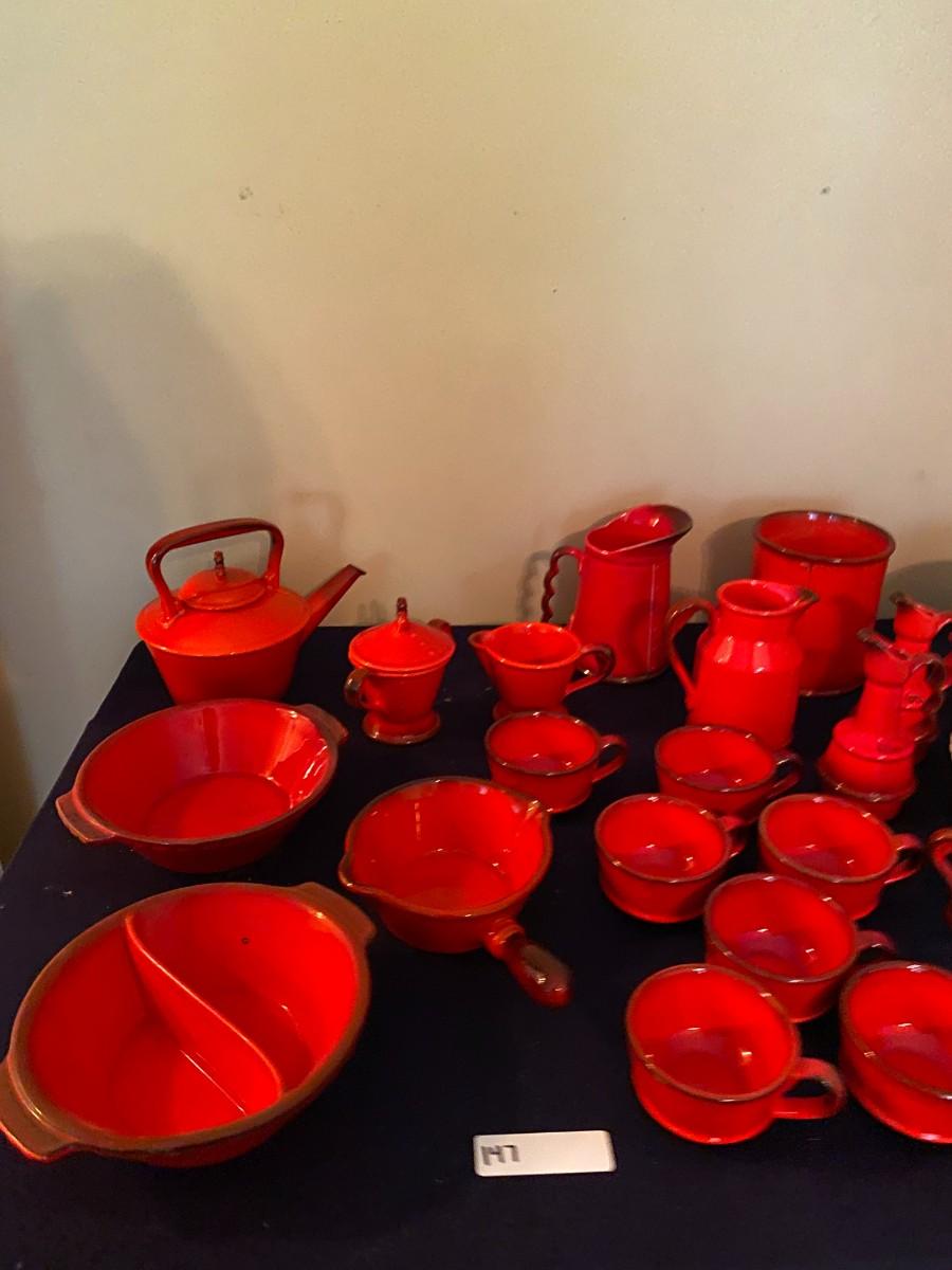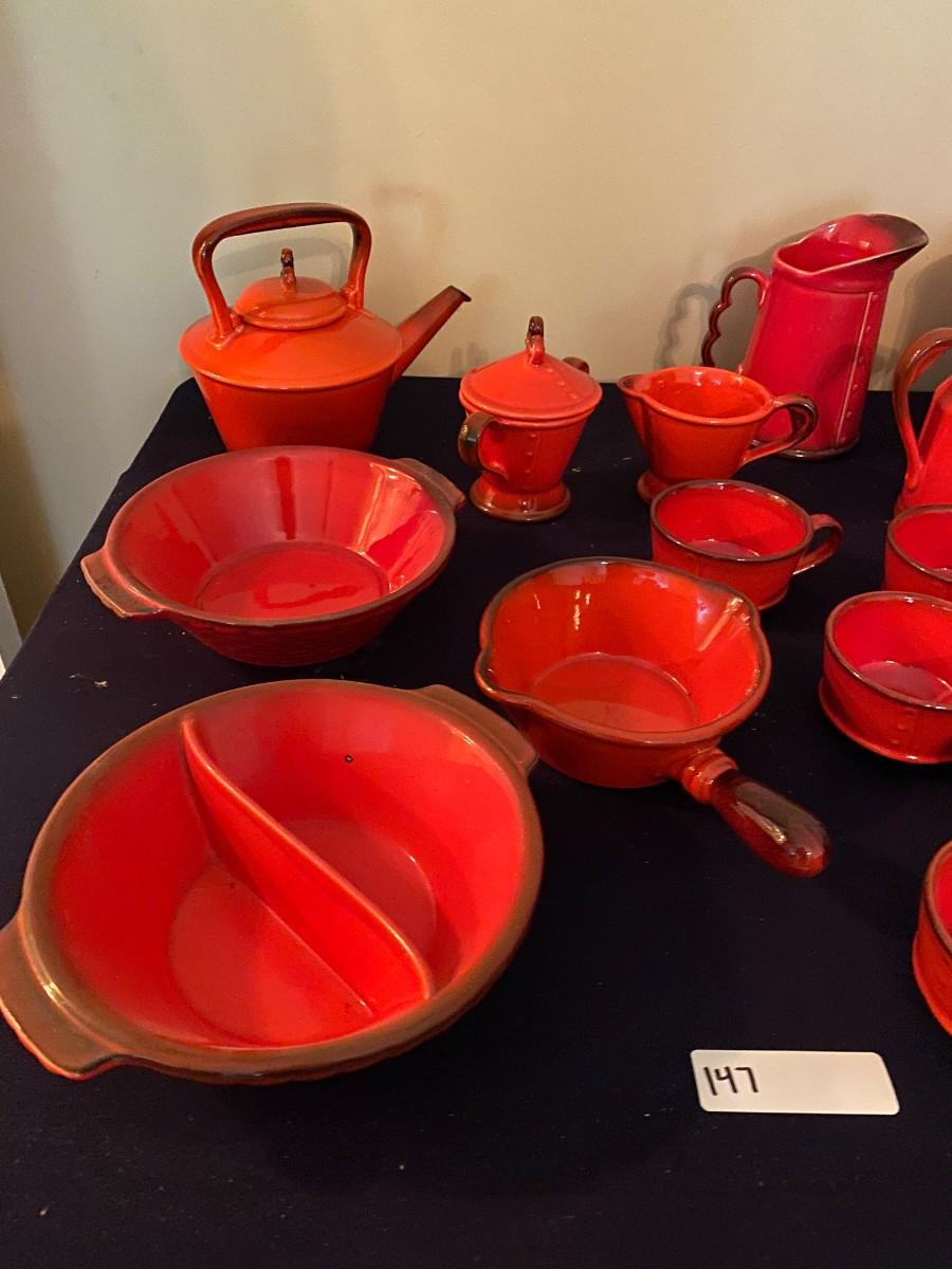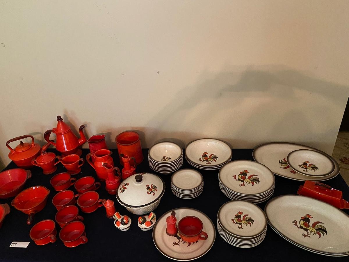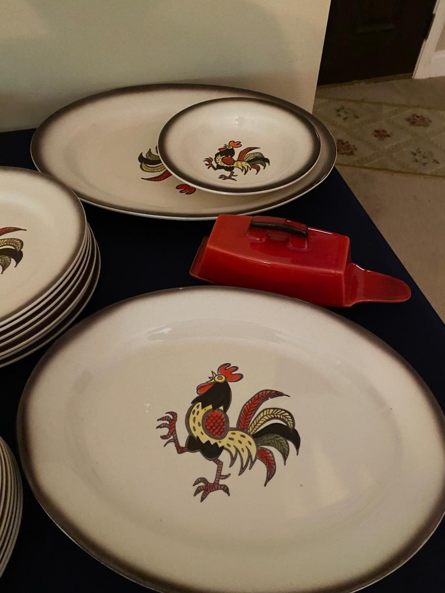 Huge Metlox  Poppy Trail Red Rooster Dish Set