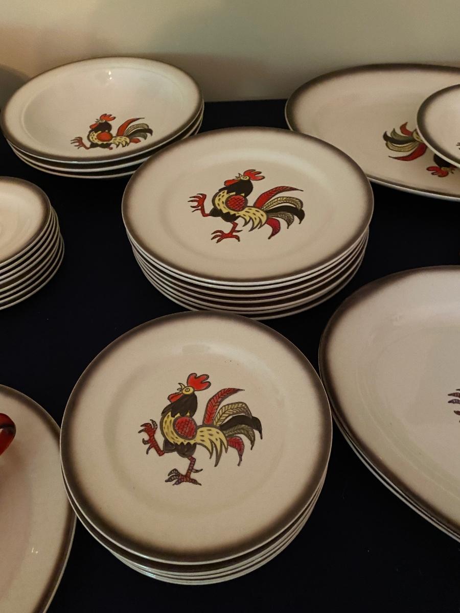 Huge Metlox Poppy Trail Red Rooster Dish Set