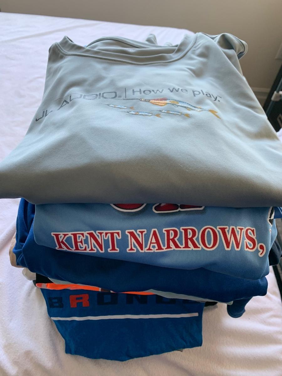 Most are Large but some XL & Mediums mixed in. Buying "as is - as found" in this wonderful estate. See ALL PHOTOS for content, condition, & dimensions. NEVER a Buyer's Premium or Credit Card Fee added.