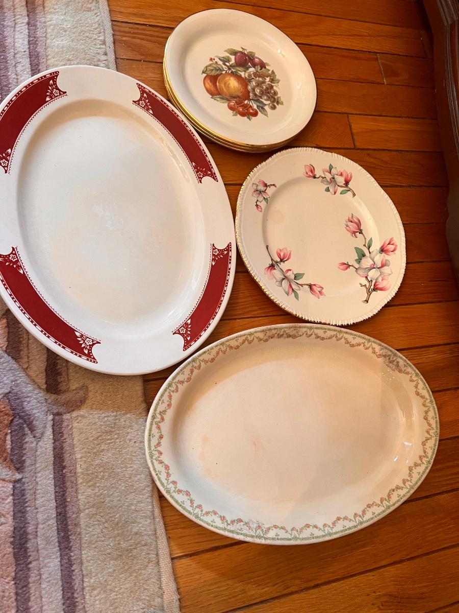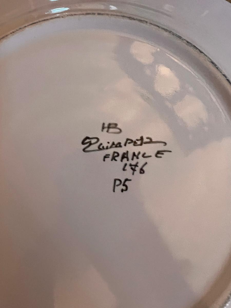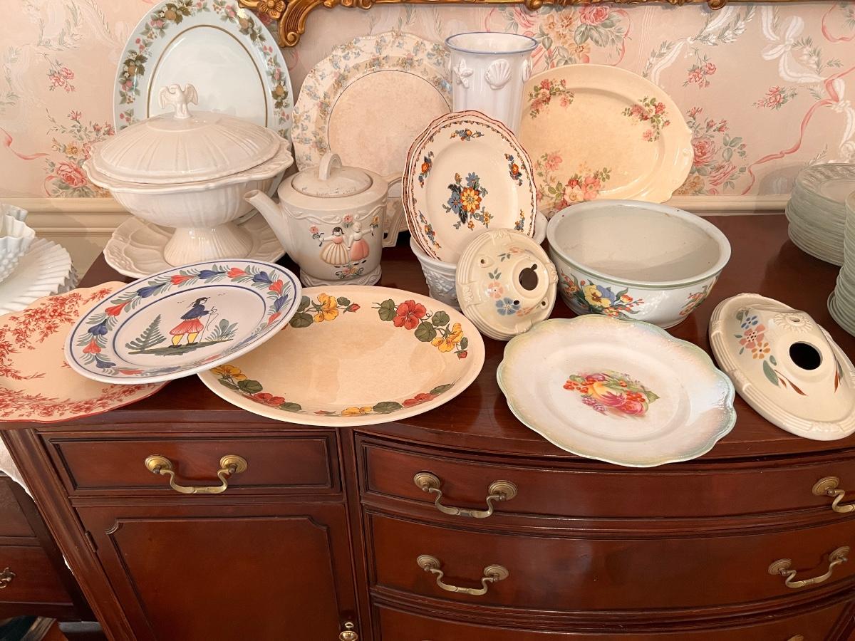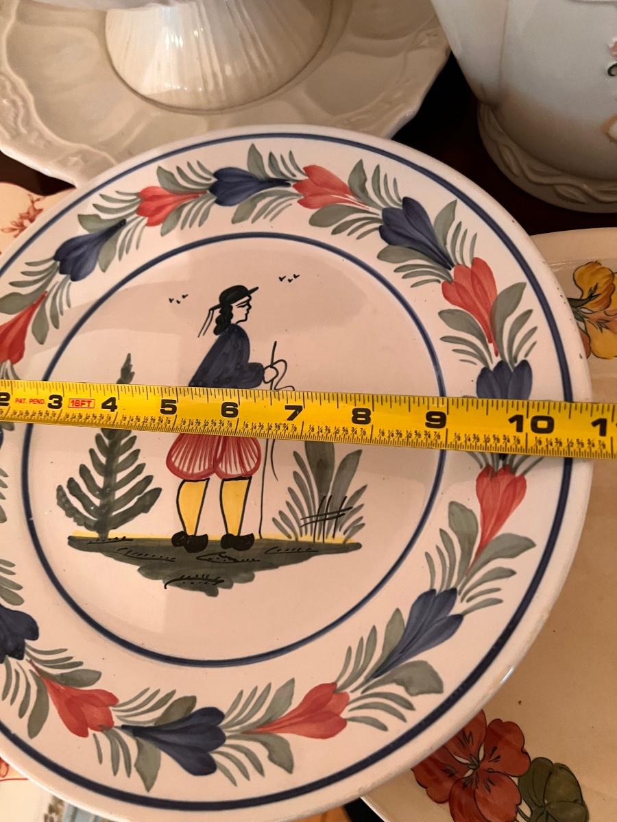 Second picture is all Homer Laughlin. Vintage QUIMPER French Breton Pottery Dinner Plate, Shenandoah Ware platter, Steubenville Ivory, 2 ceramic light fixture covers, serving platters, and more.