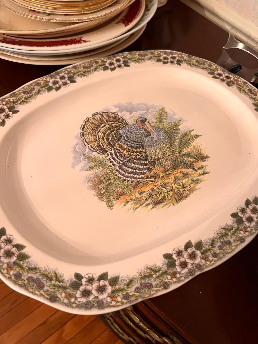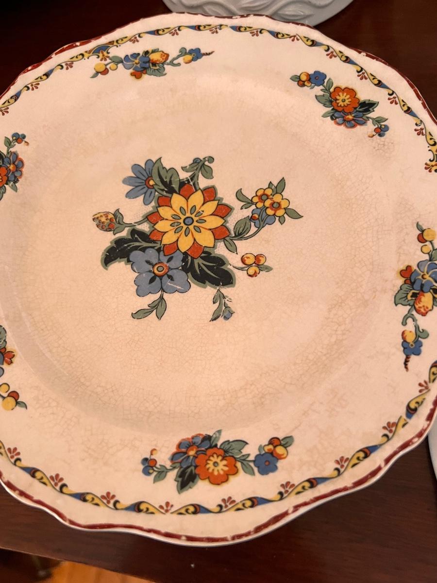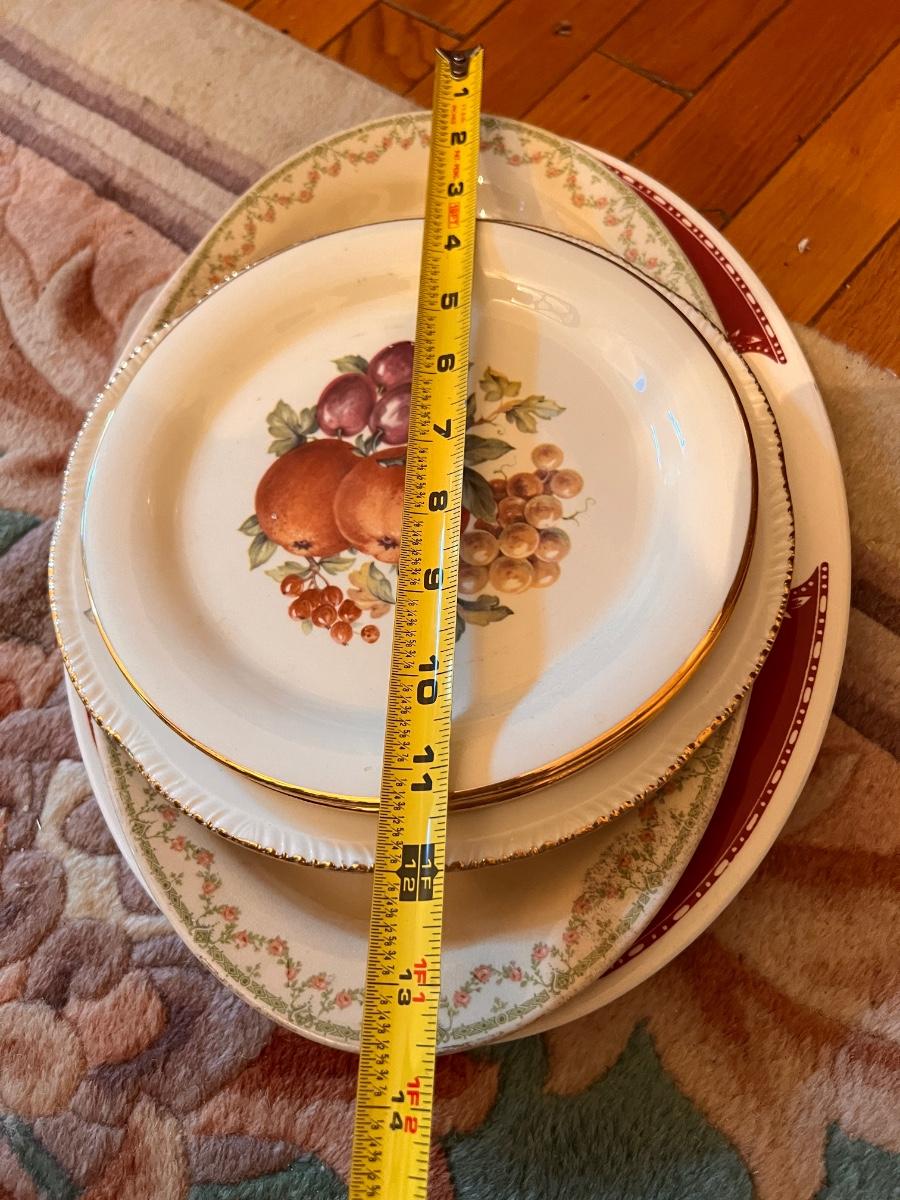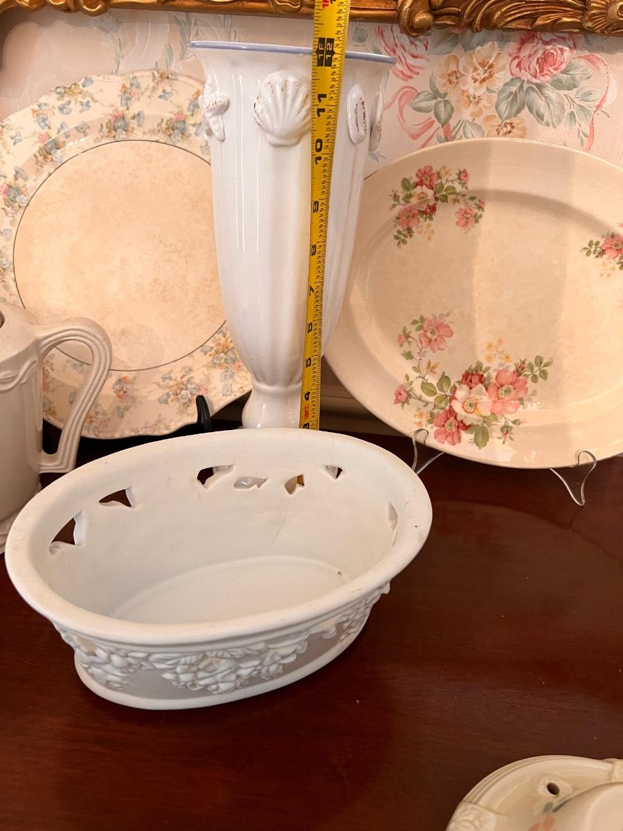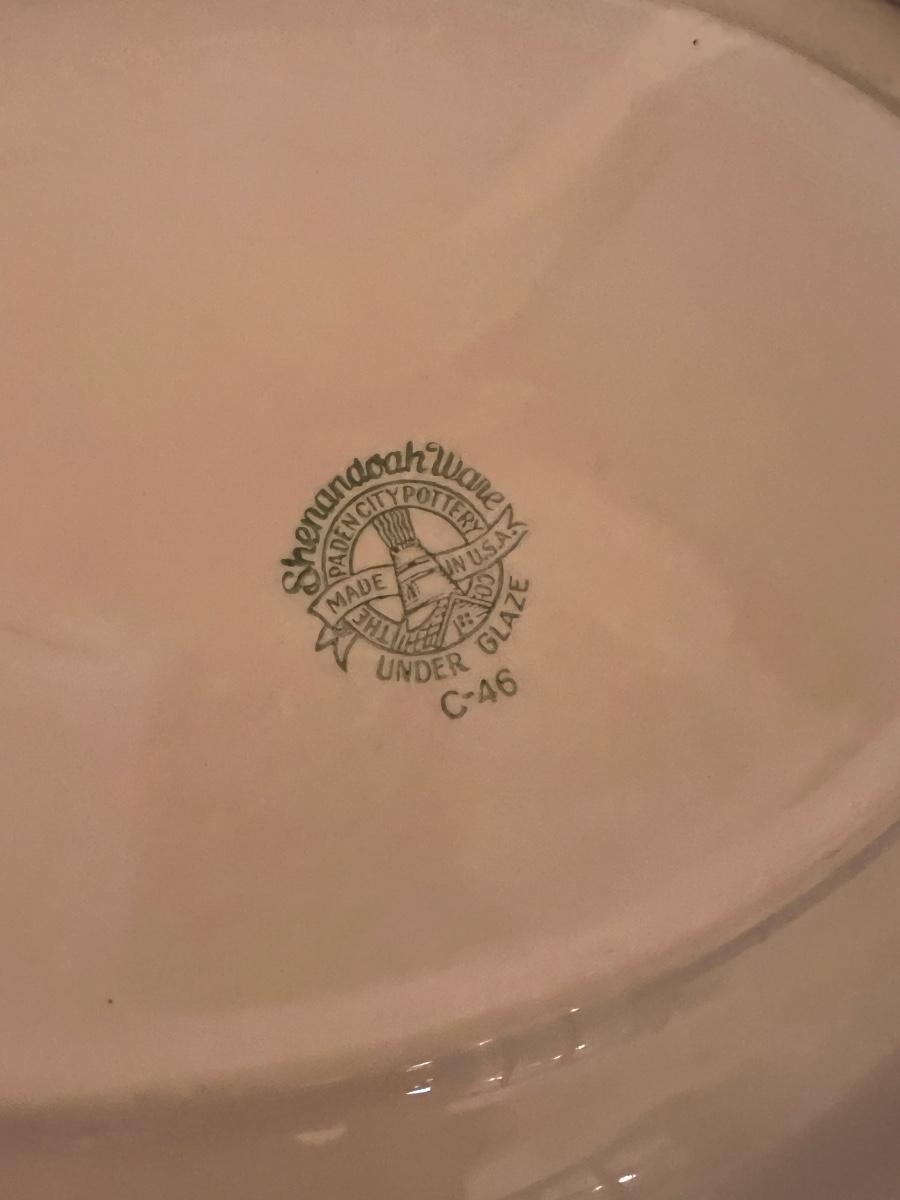 Second picture is all Homer Laughlin. Vintage QUIMPER French Breton Pottery Dinner Plate, Shenandoah Ware platter, Steubenville Ivory, 2 ceramic light fixture covers, serving platters, and more.