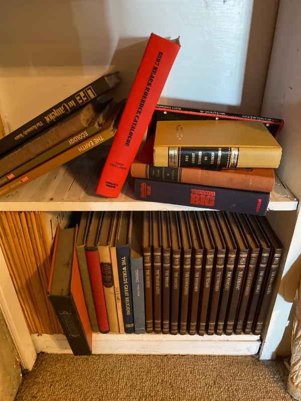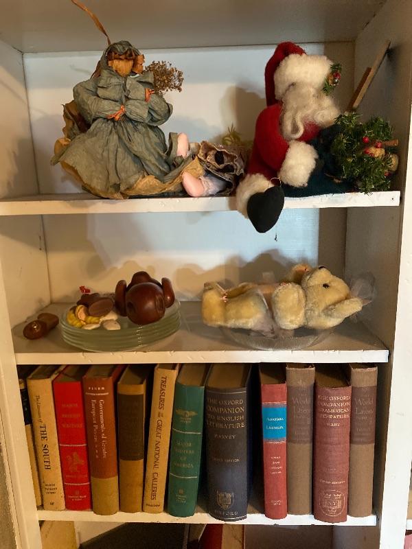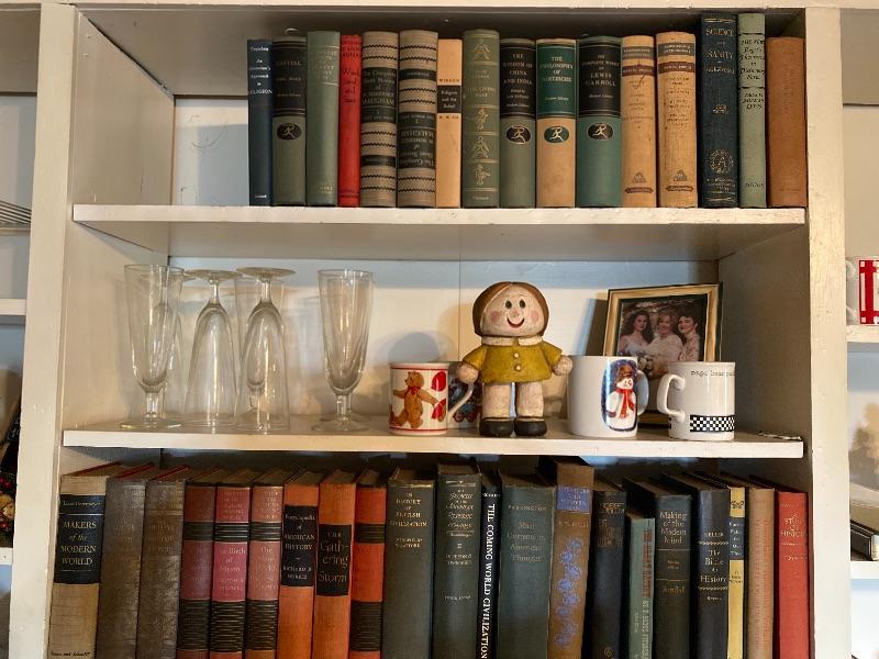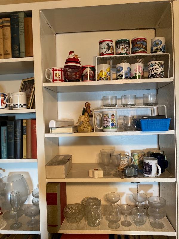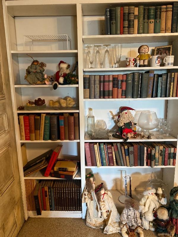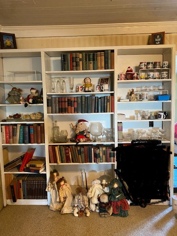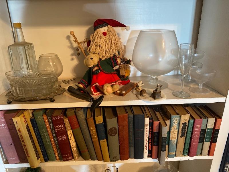Everything in this picture is included in this auction. So much stuff. Vintage books, glassware, dolls. The items on lower corner were blacked out as they were not included and will be removed before pick up.