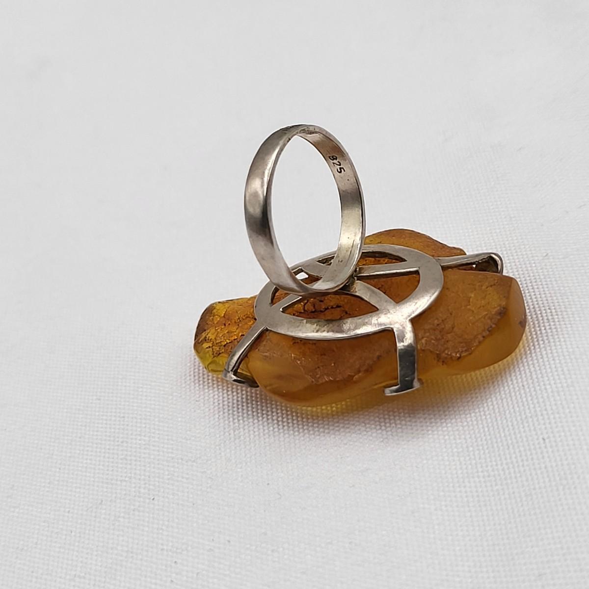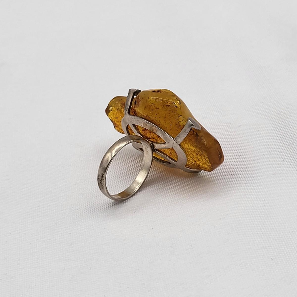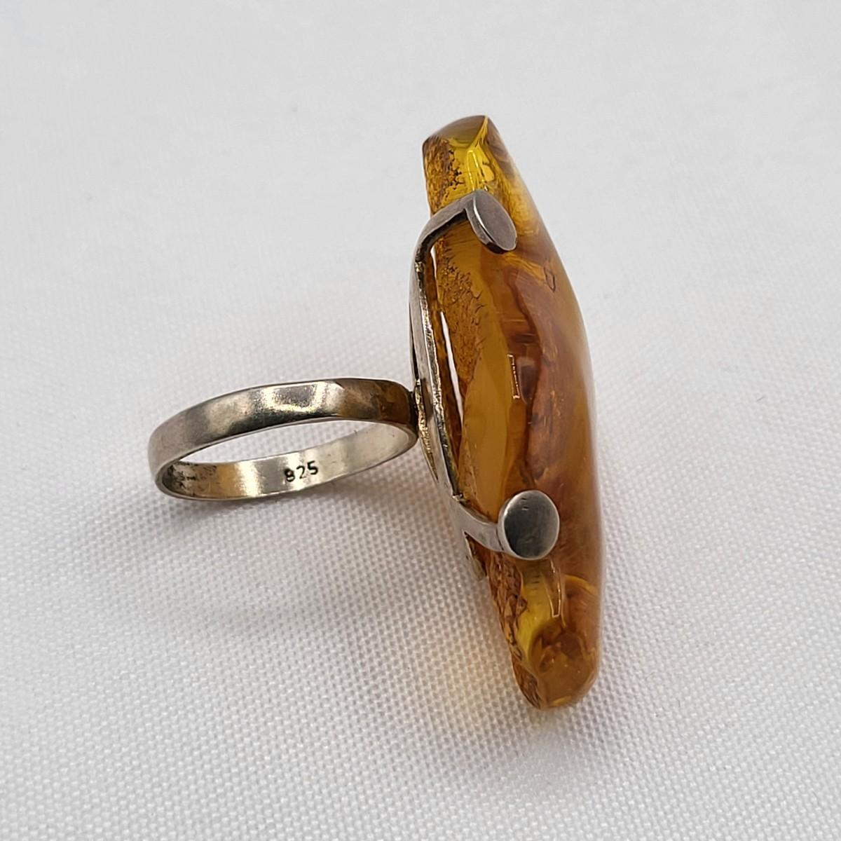 Huge Natural Amber Ring 925