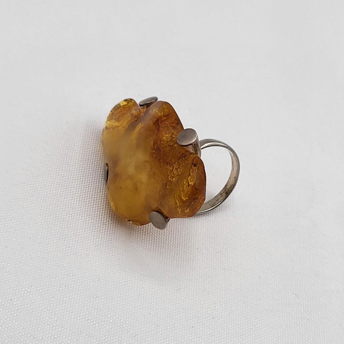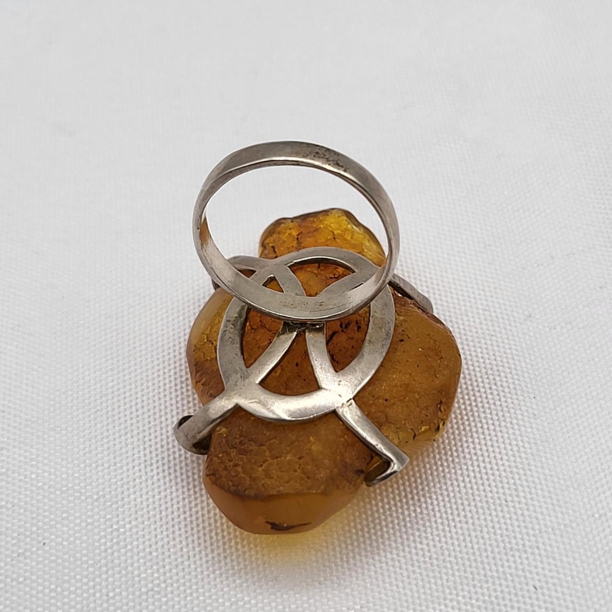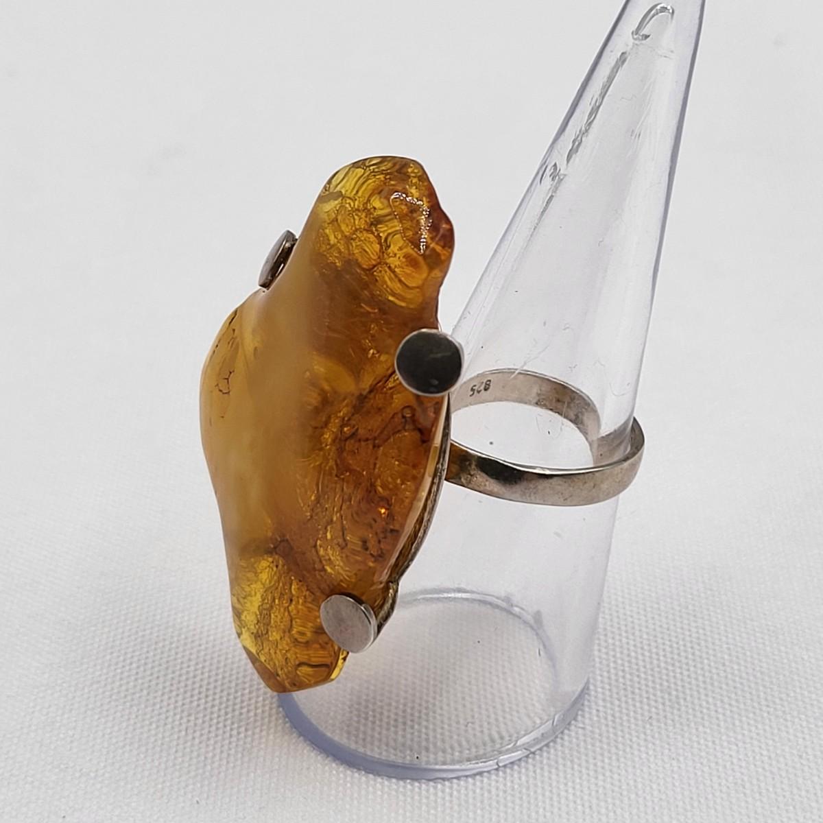 Huge Natural Amber Ring 925