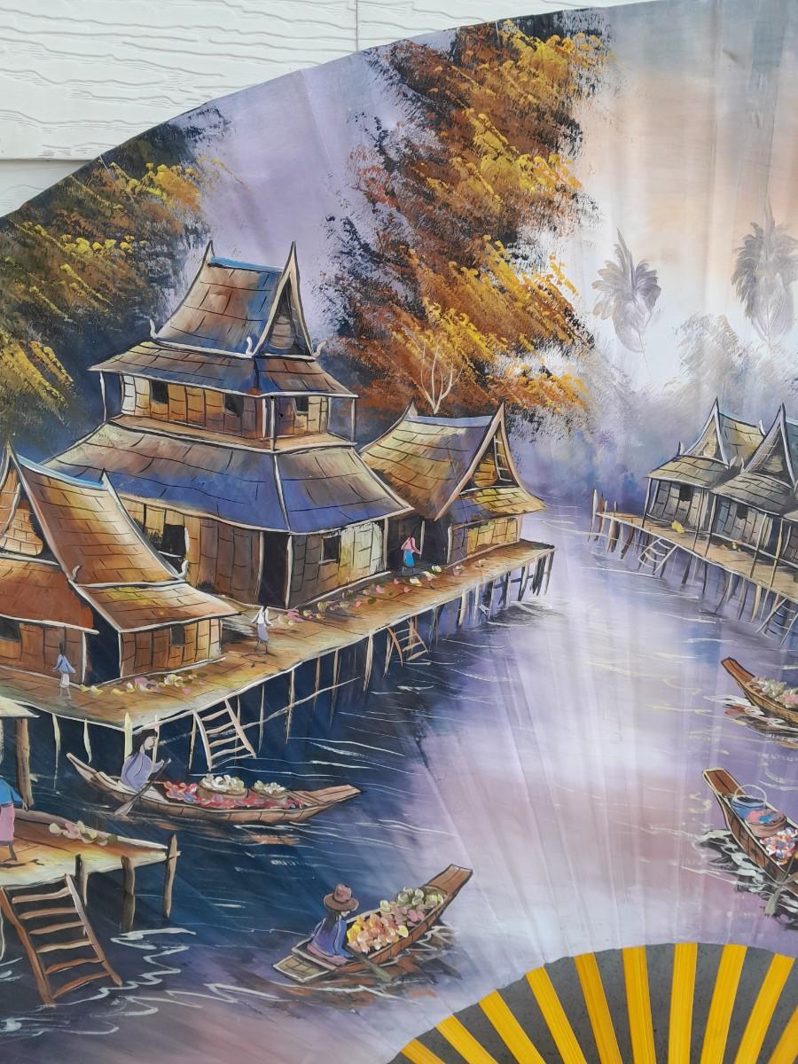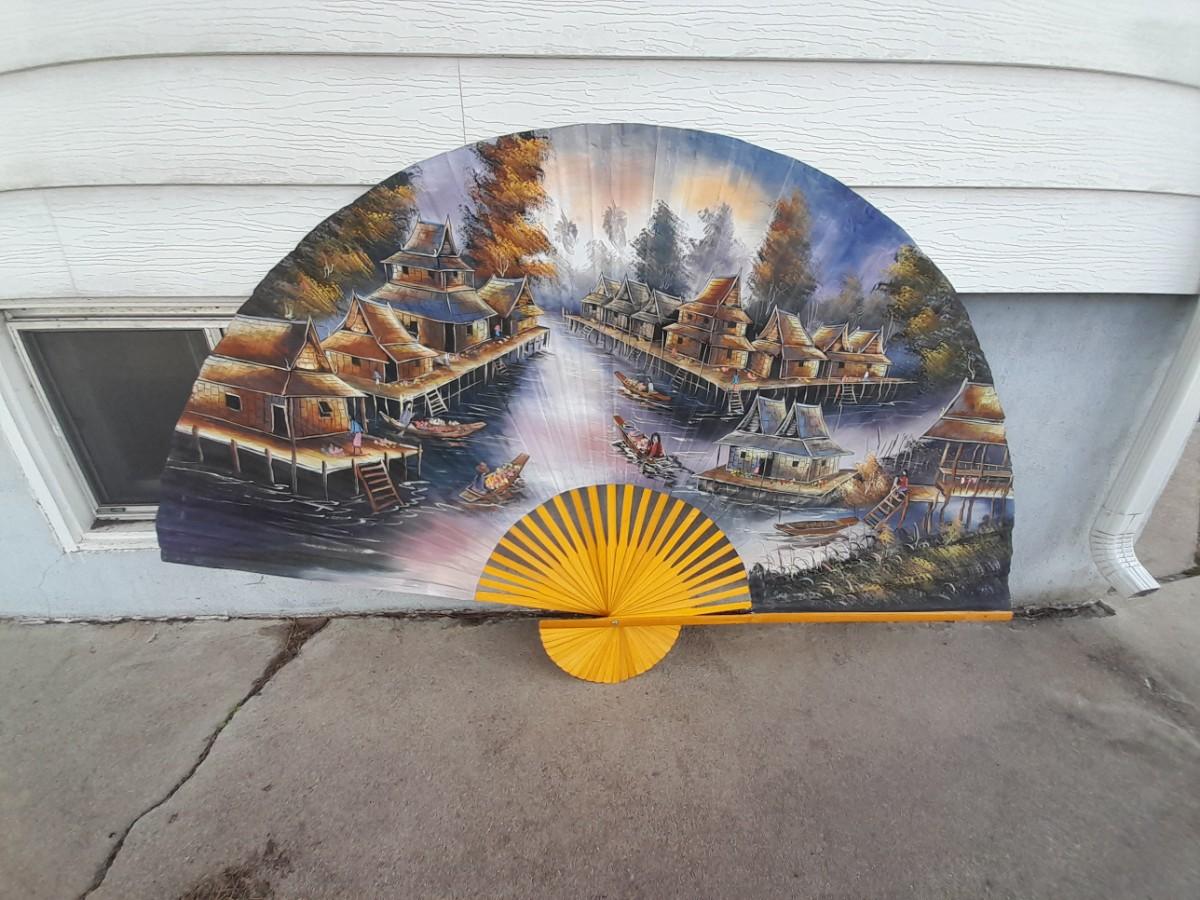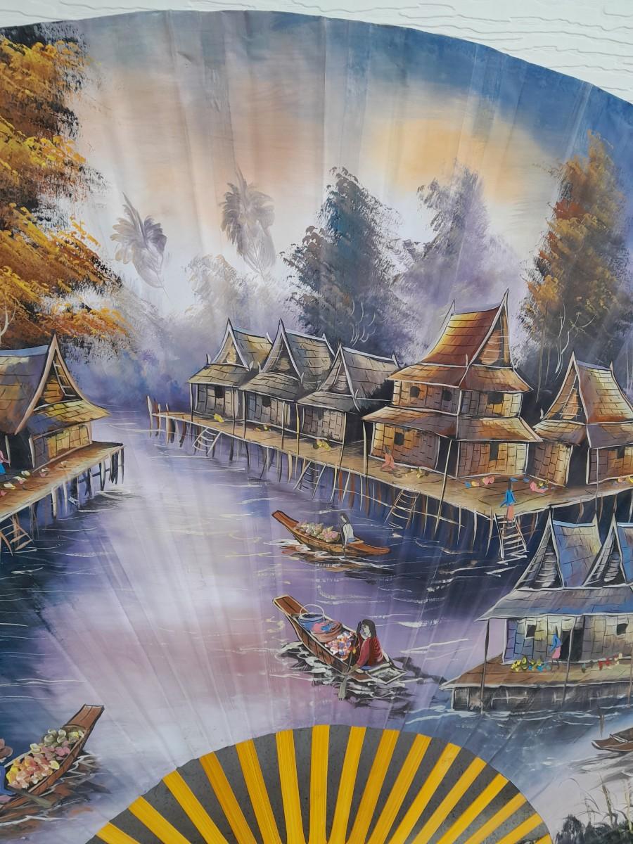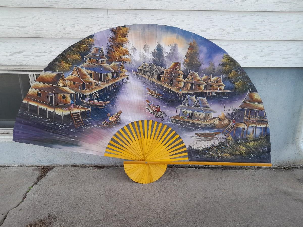 HUGE ORIENTAL VILLAGE WALL FAN DECORATION