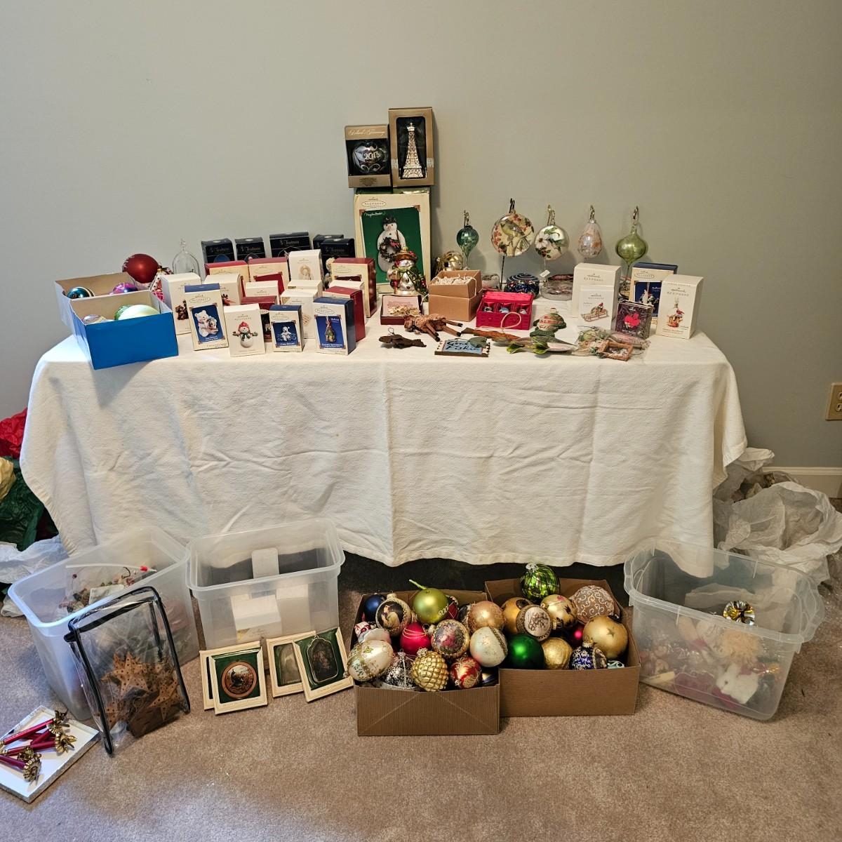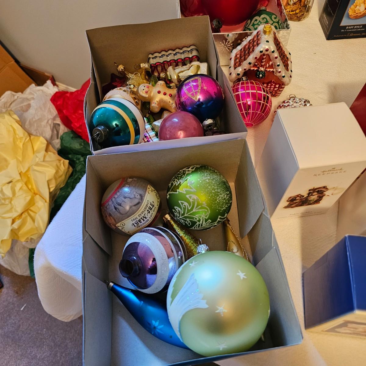 Have you been good this year? Cause if you have then these ornaments are for you! Hundreds of pieces of vintage, modern and traditional Christmas ornaments. Items from Fontanini, Hallmark and more. Glass, resin and more pieces. Over 35 Hallmark items alone. Too many to show all, but ten boxes/containers worth. All containers included. See photos for details. Local pickup only.