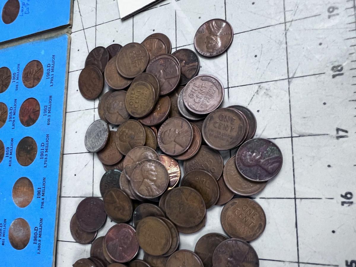 HUGE Pile of Wheat  Pennies, 2 Books, Unsearched Pile plus some Sleeved
