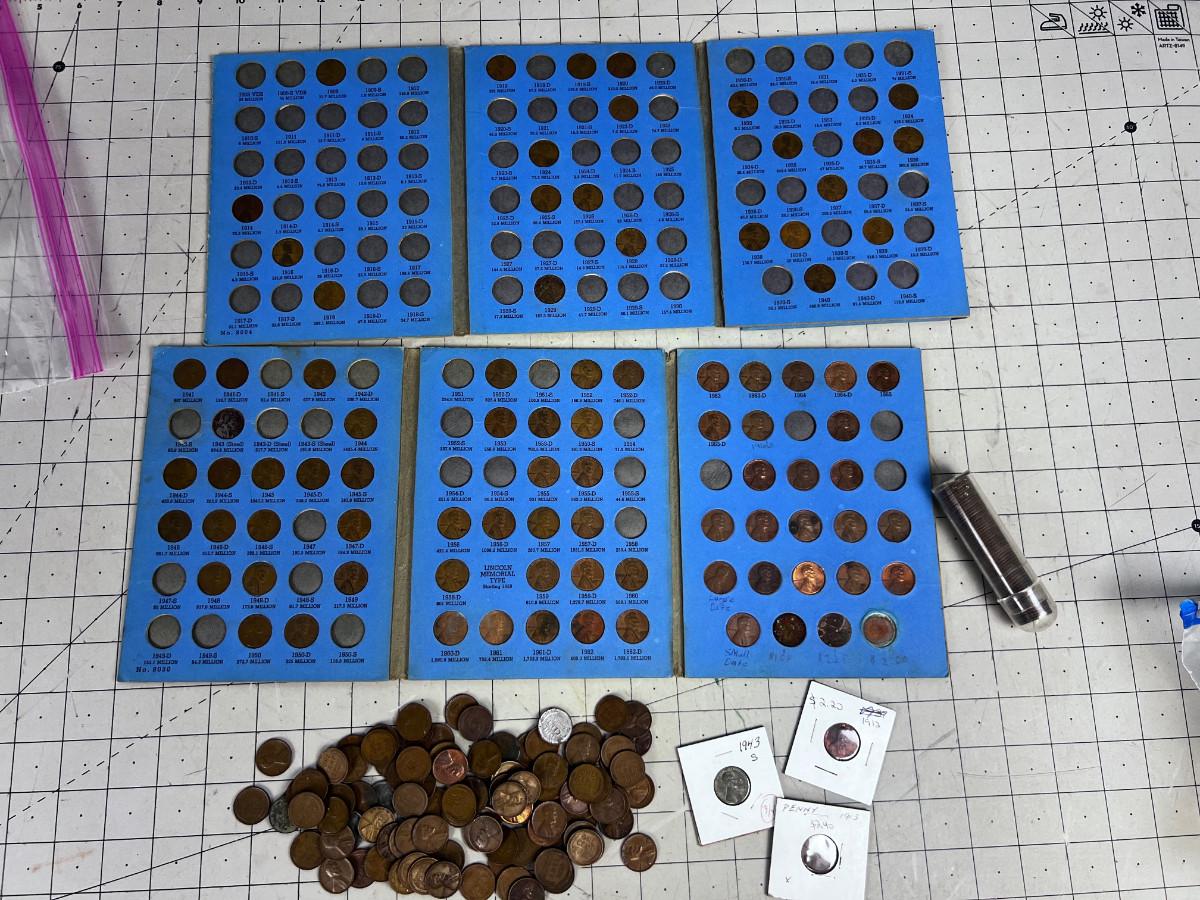 HUGE Pile of Wheat Pennies, 2 Books, Unsearched Pile plus some Sleeved
