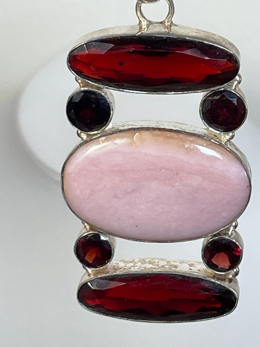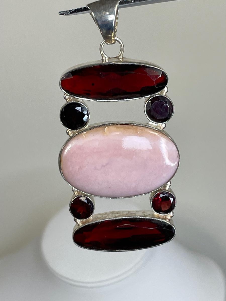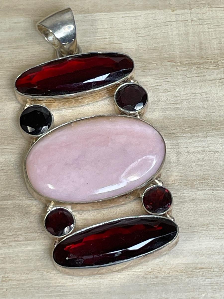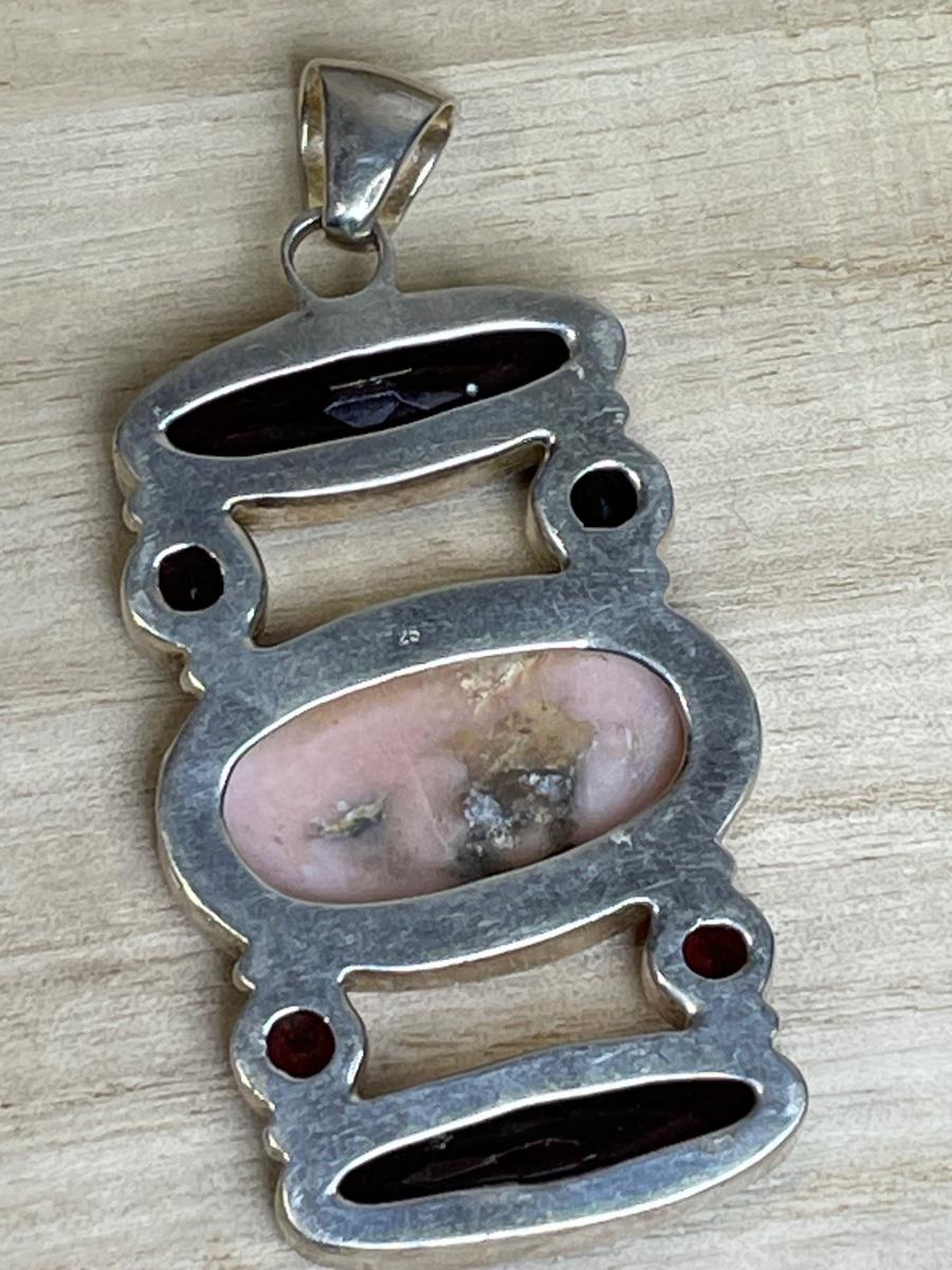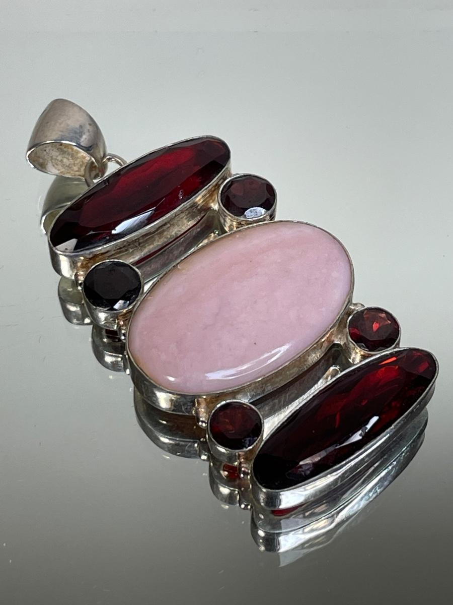 Huge pink and red stone sterling pendant