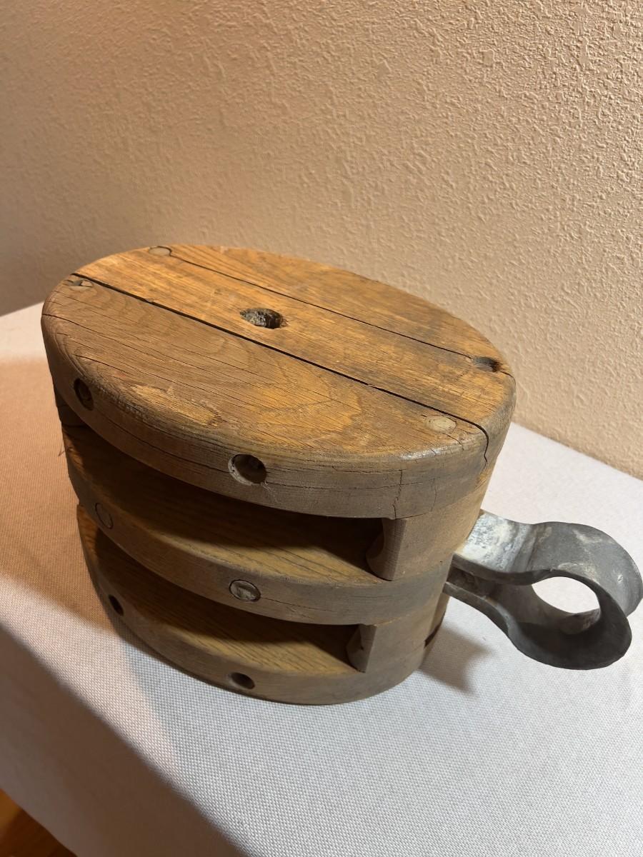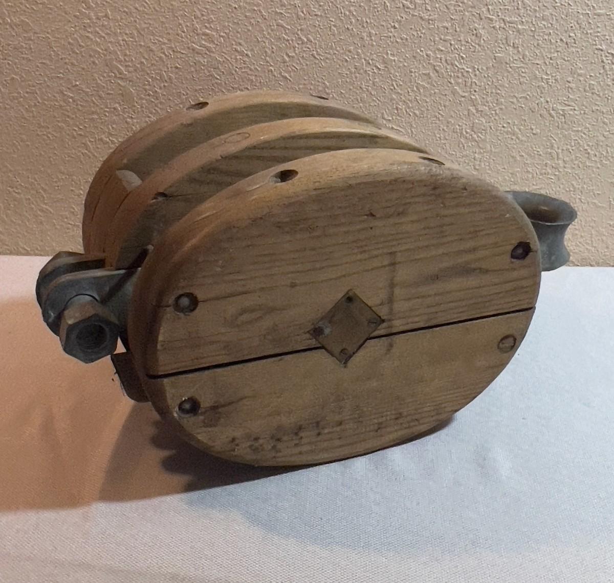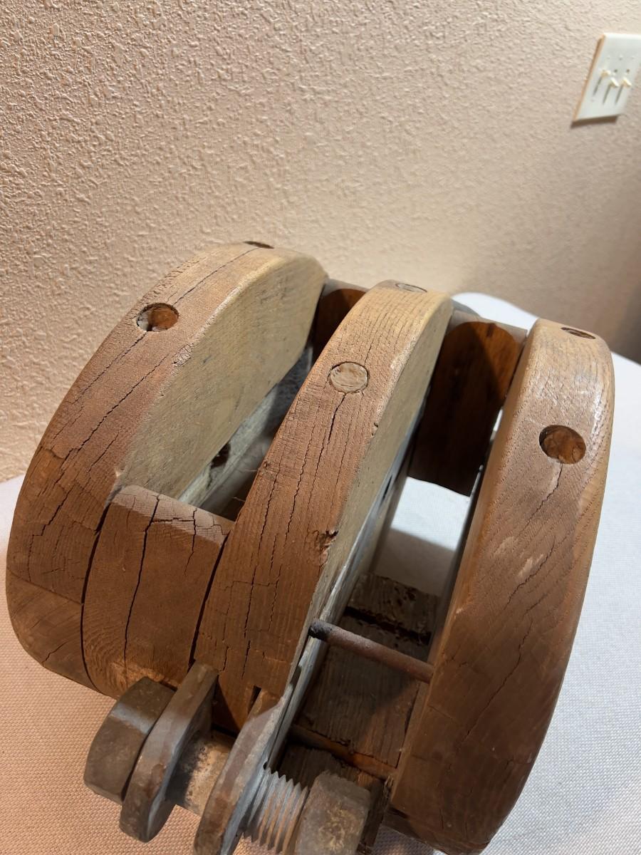 HUGE Pulley WOOD and Metal ANTIQUE
