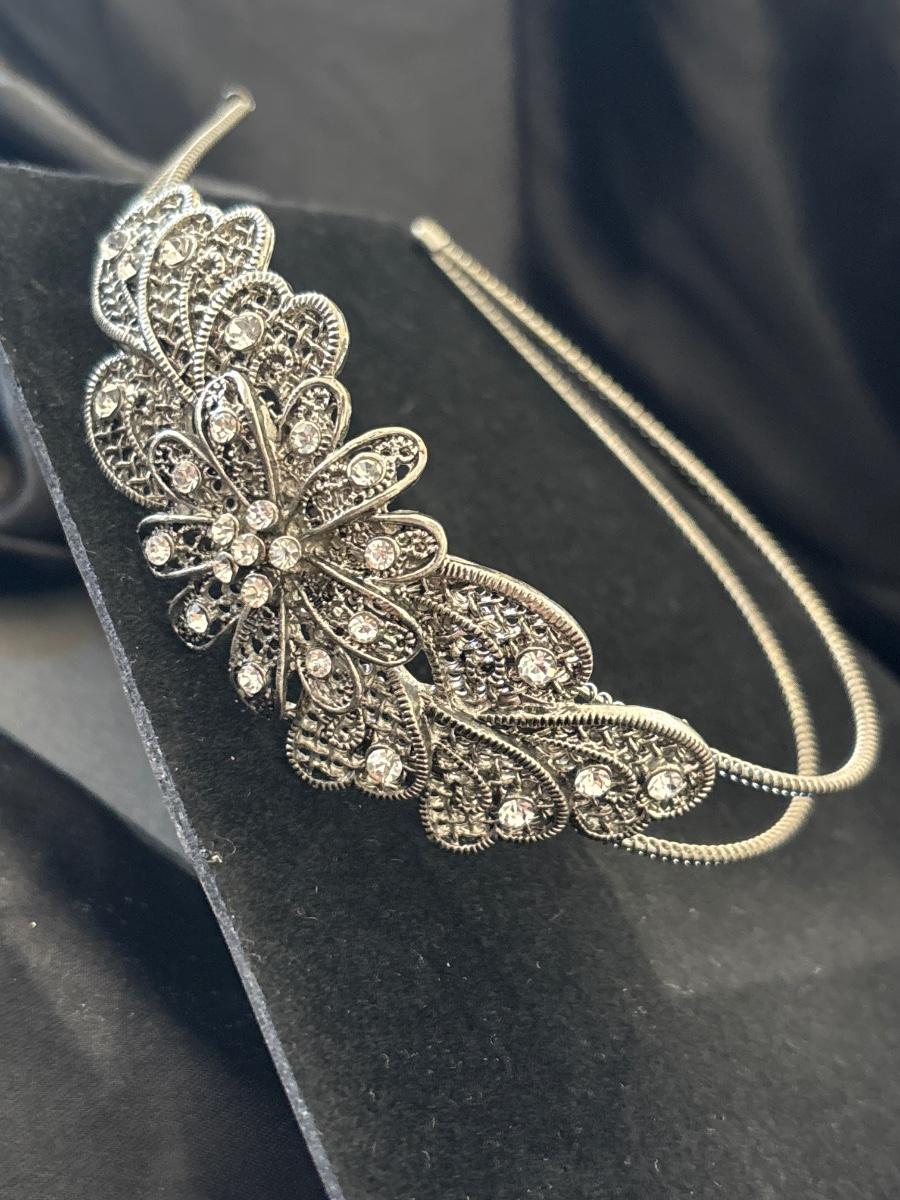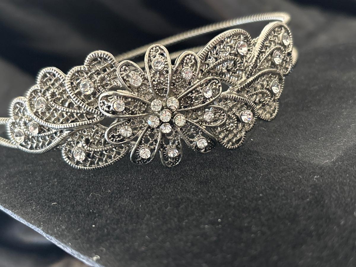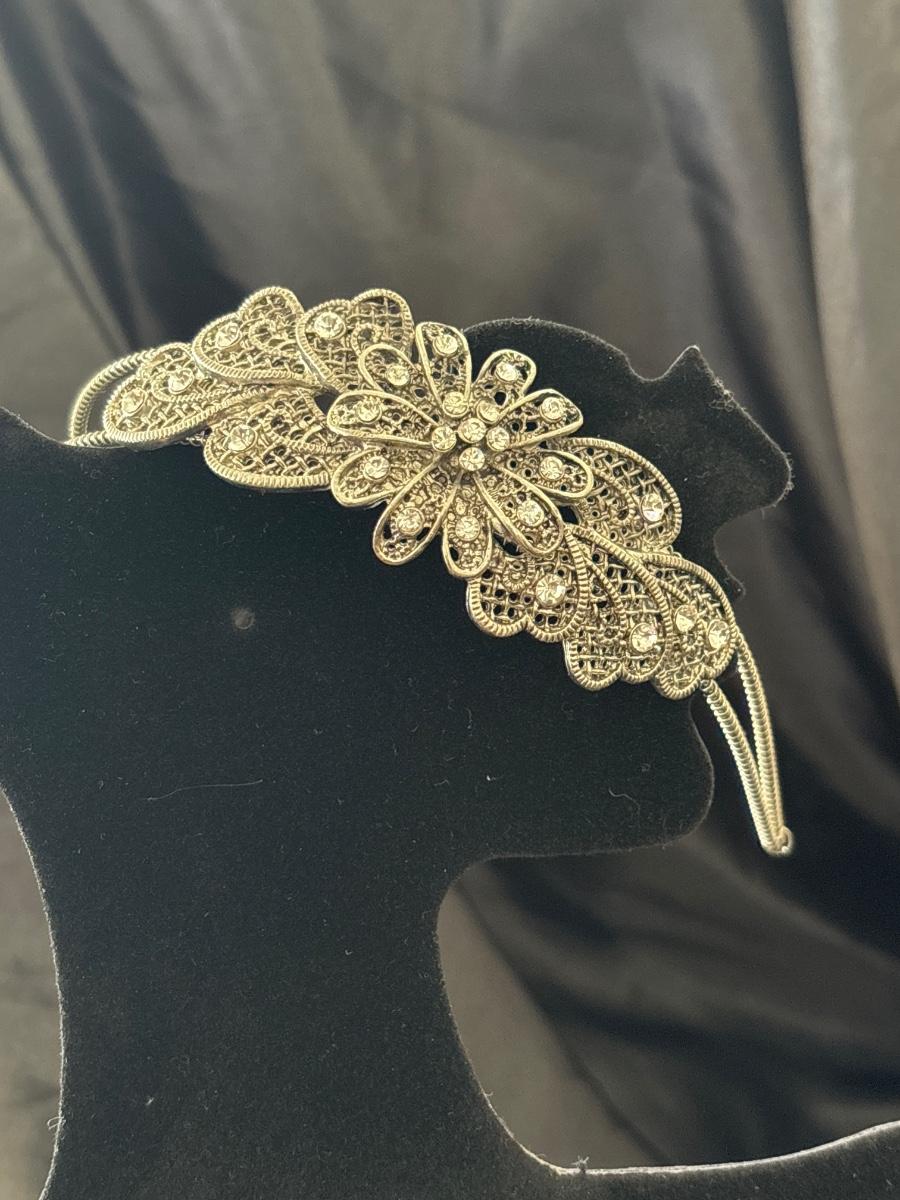Huge Rhinestone Flower and Hearts Head Band, Vintage Hair Jewelry