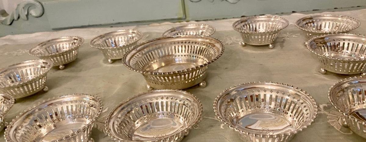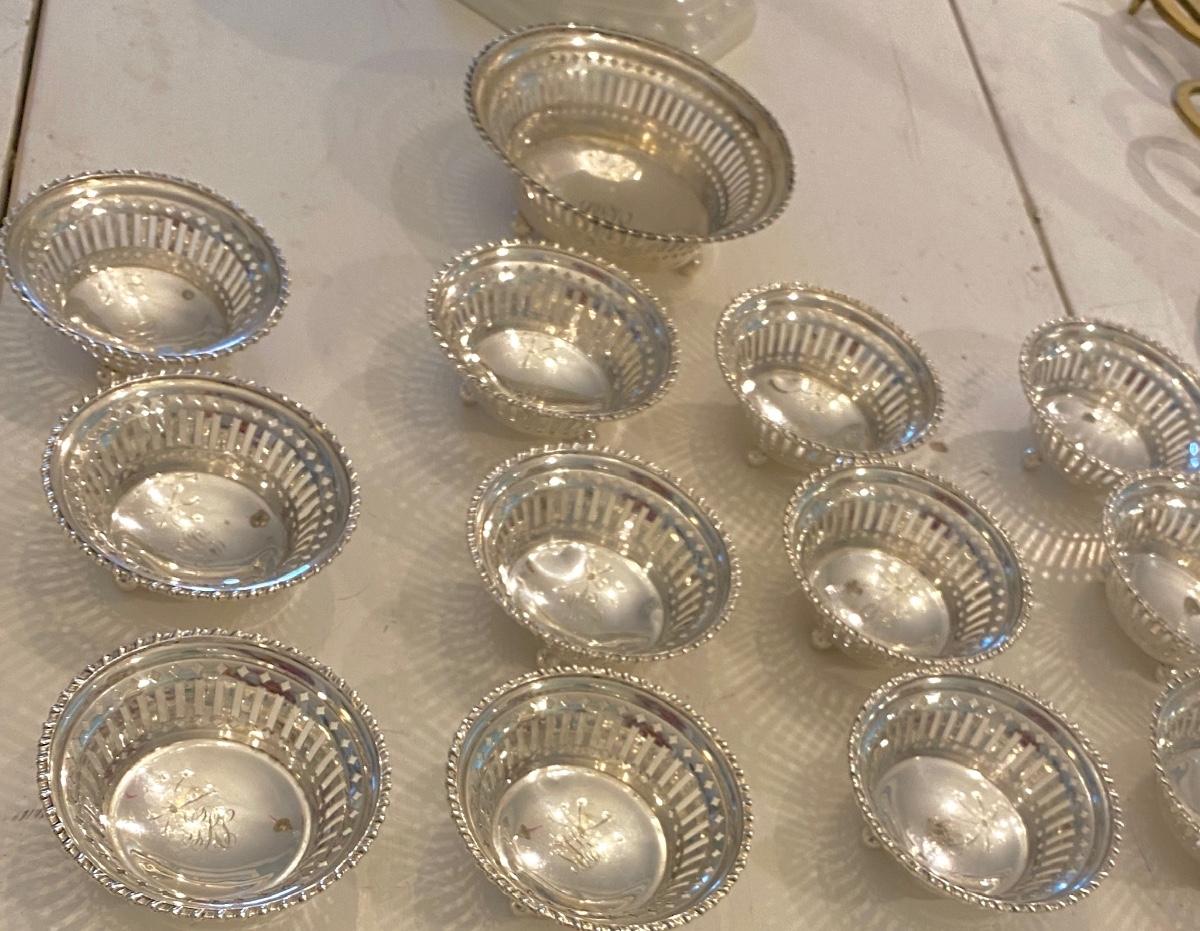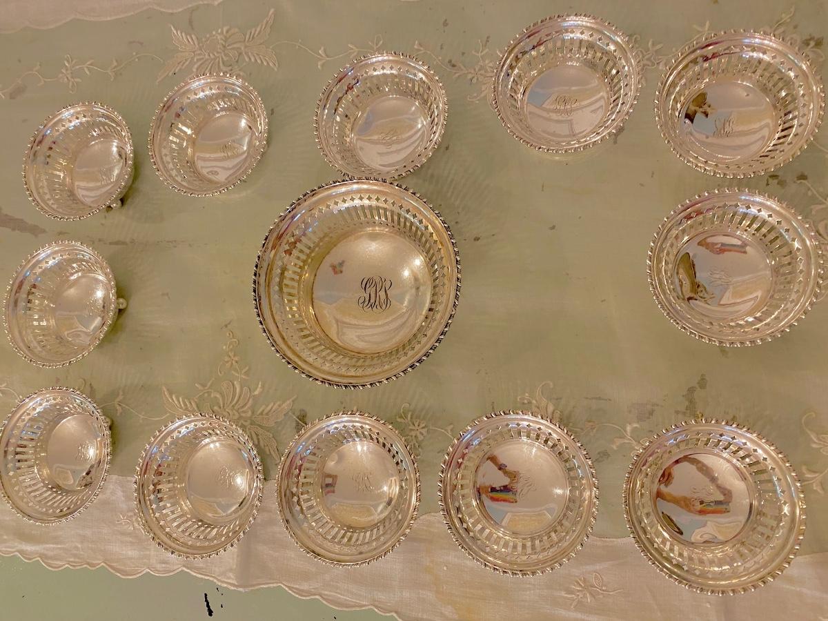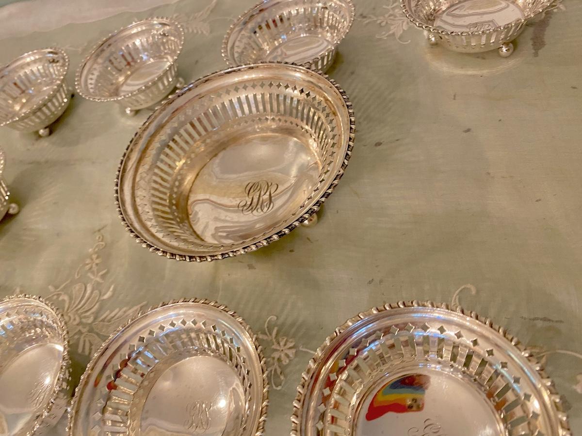 HUGE Set Antique Sterling Silver Pierced Nut Dishes by Towle for Bigelow & Kennar Boston