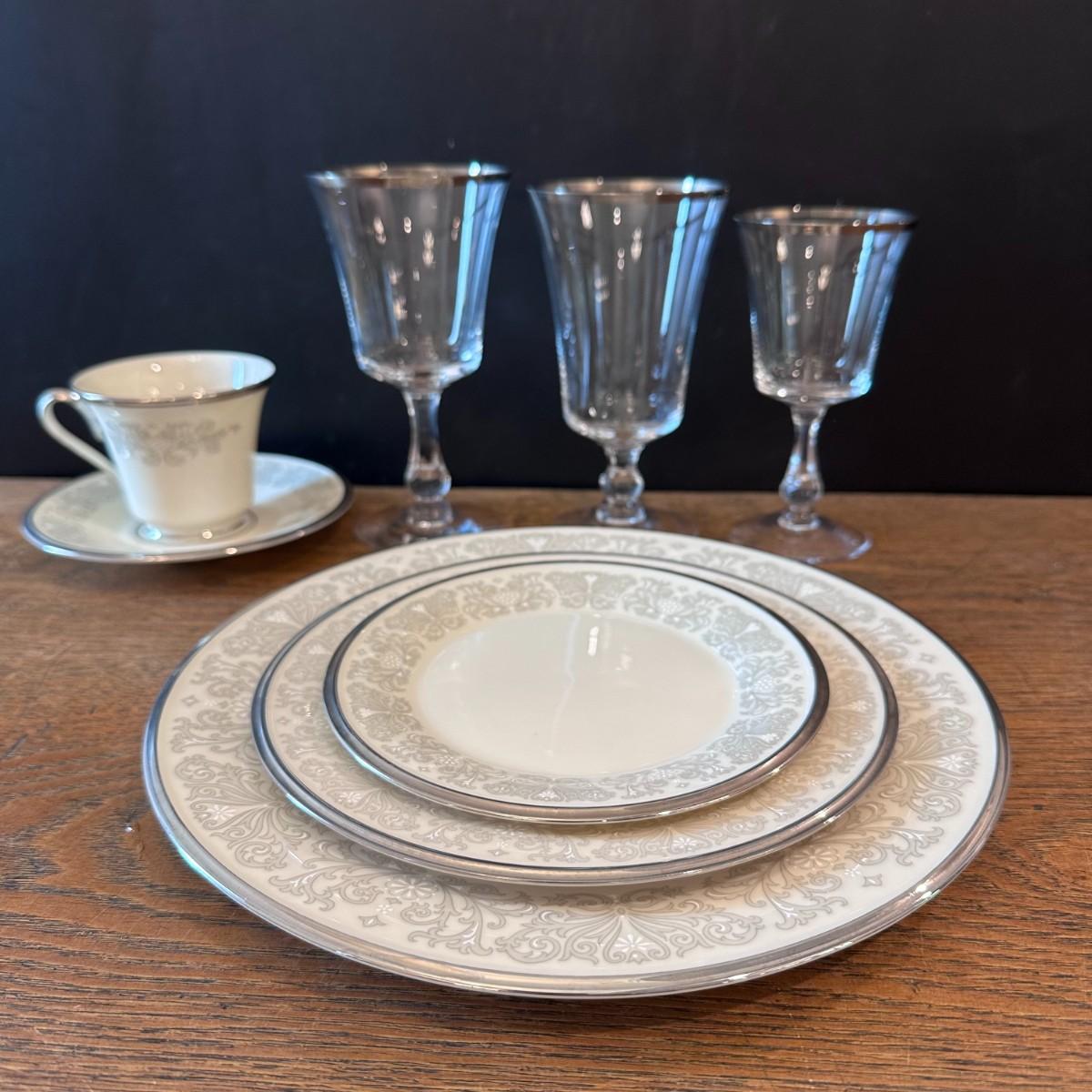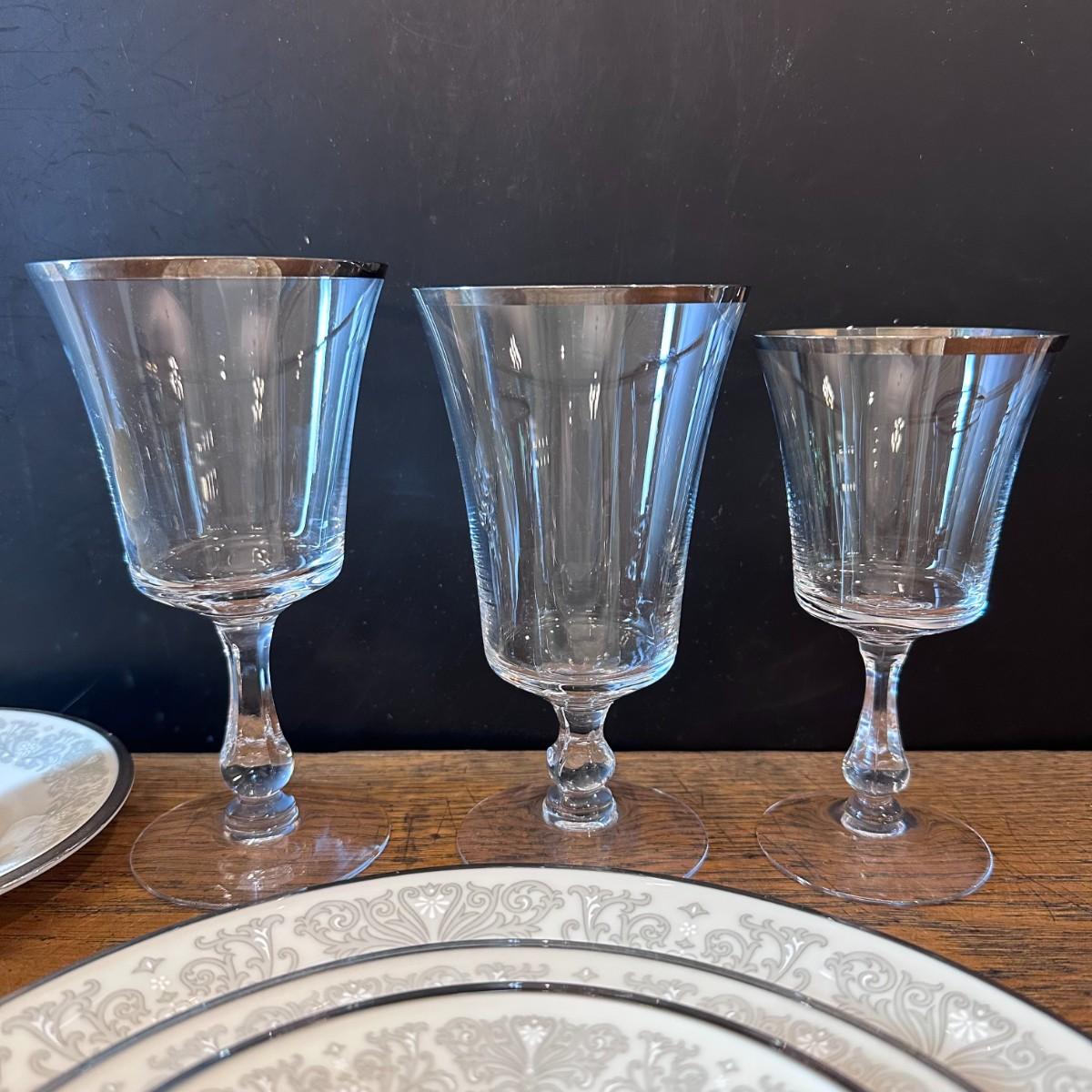 HUGE SET Fostoria Sheffield Platinum Trim Glassware