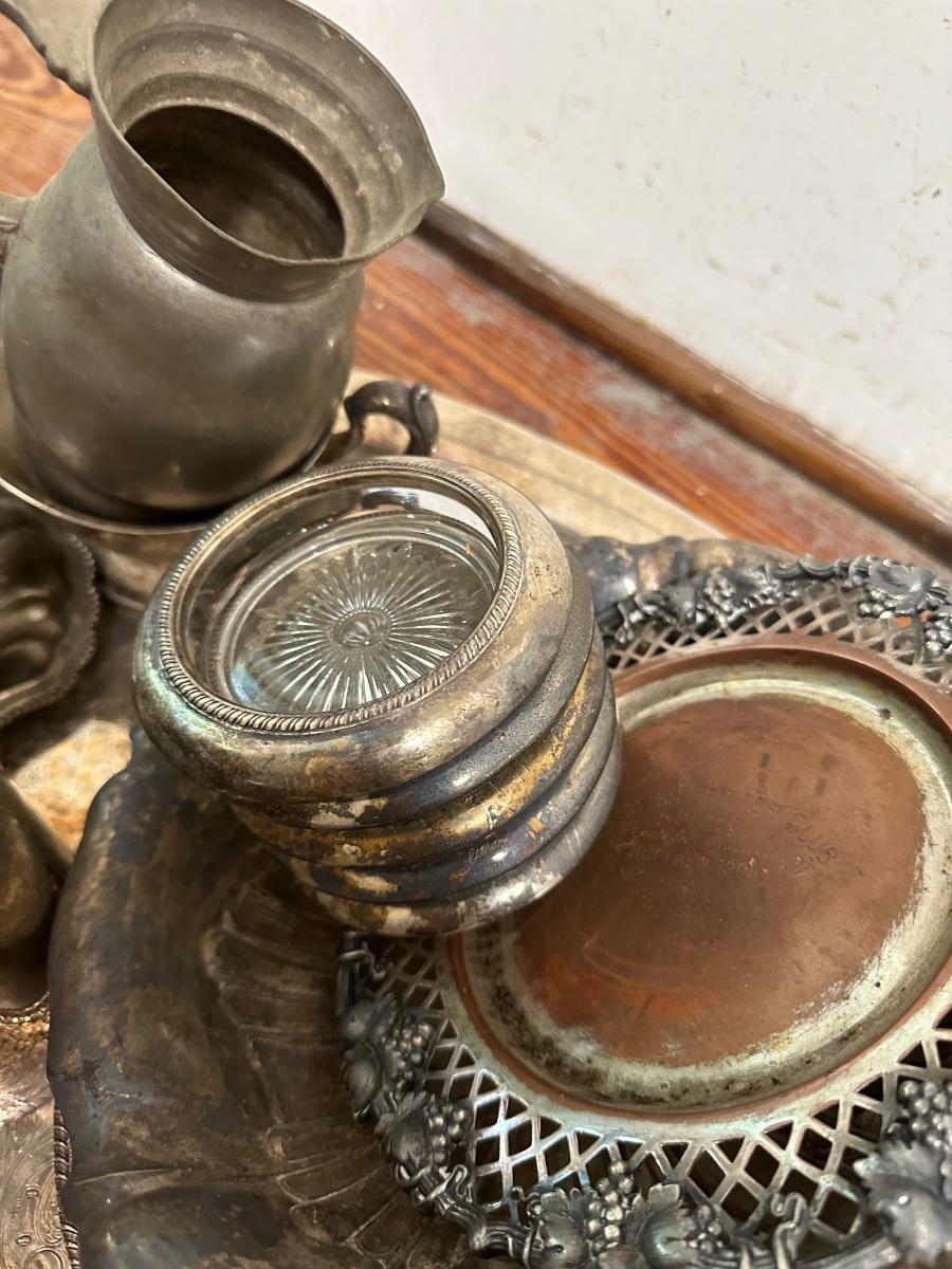 HUGE LOT OF SILVERPLATE & PEWTER AS PICTURED
