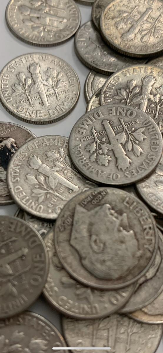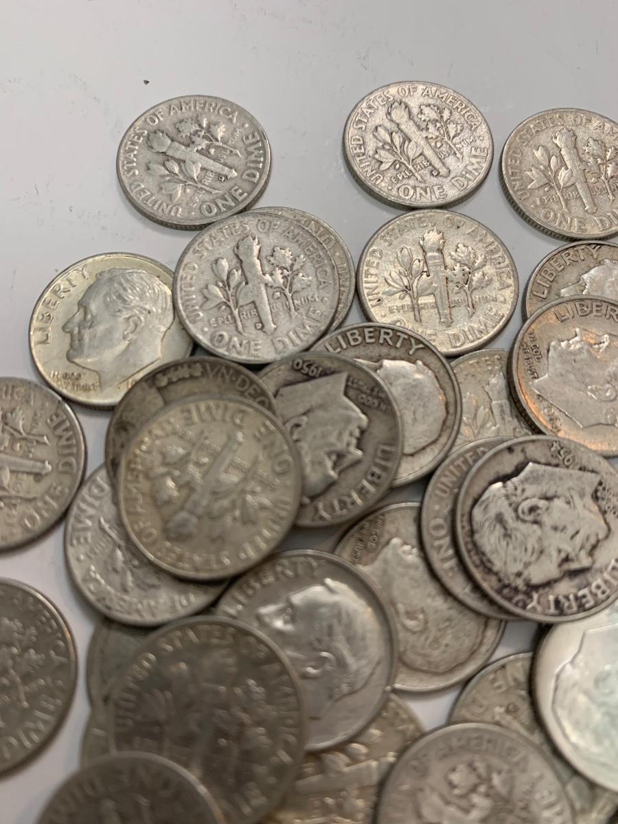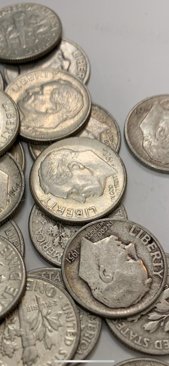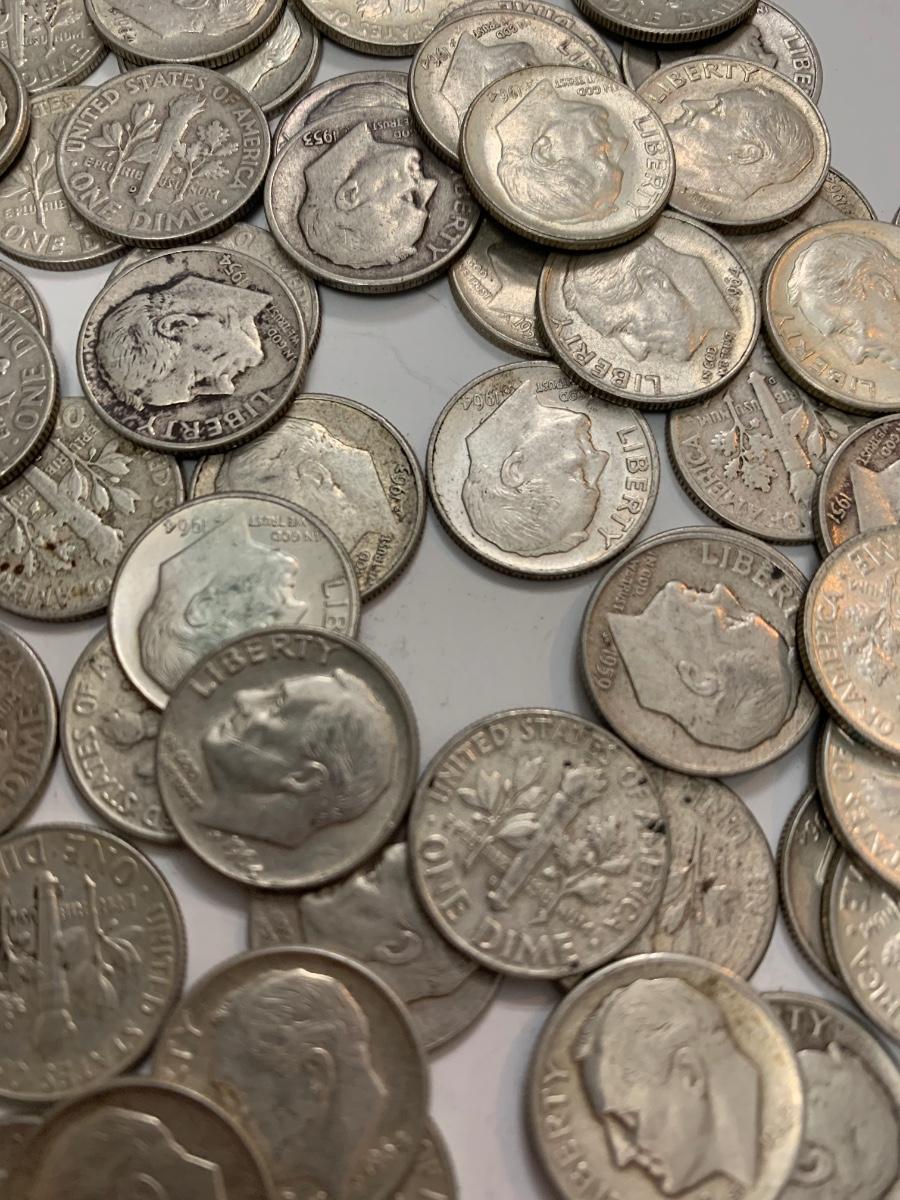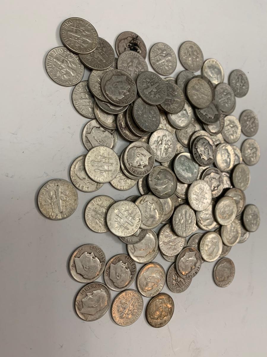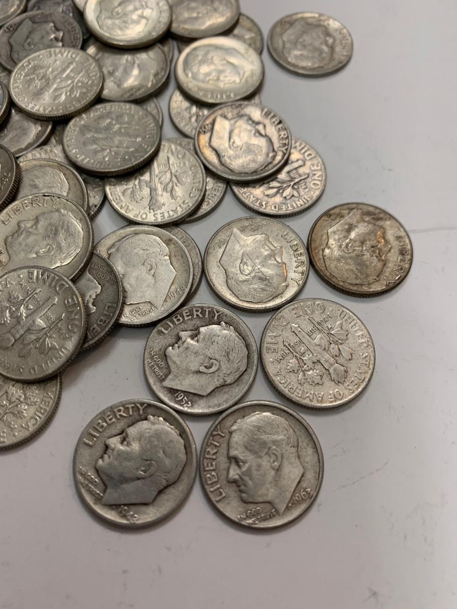 HUGE SILVER DIMES LOT 95 Coins ALL pre-1965 dimes.