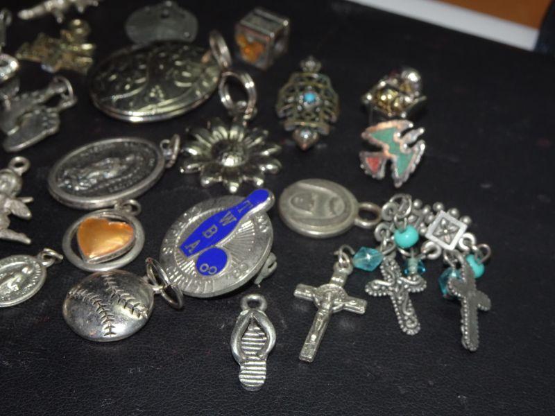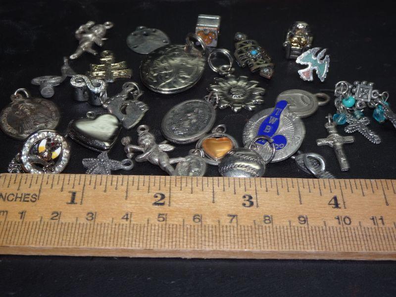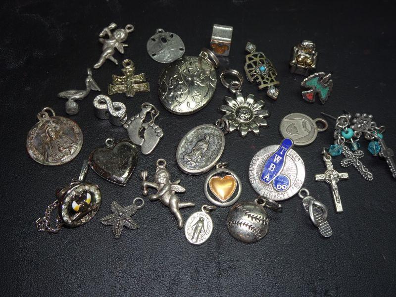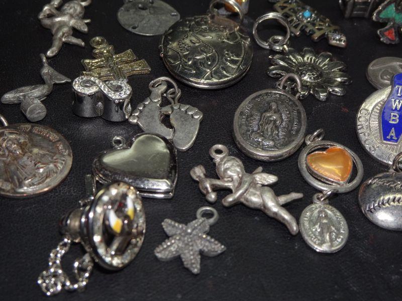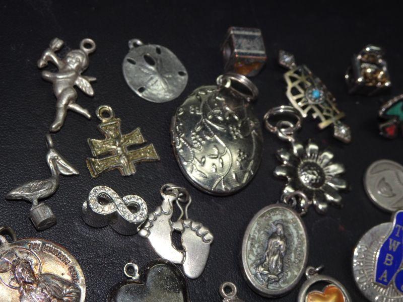 Huge Silver Tone Charm Lot, Pin, Tie Tacks - Lot 10
