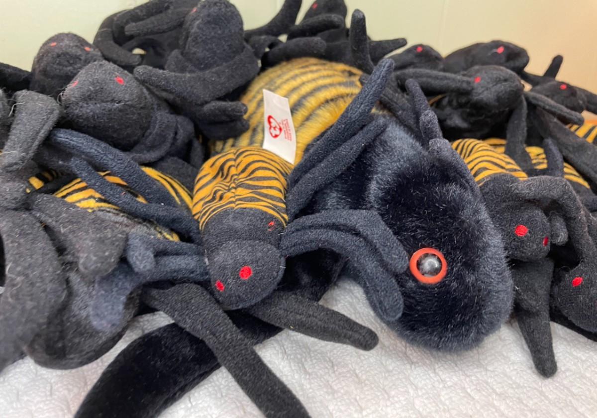 Instant collection! All spiders are Ty. 3 miniature 4" head to tail spiders from McDonalds, 14 medium spiders are 5" head to tail. One Big Momma spider is 9" head to tail. All are from a smoke-free/pet-free home. Not suitable for pets.