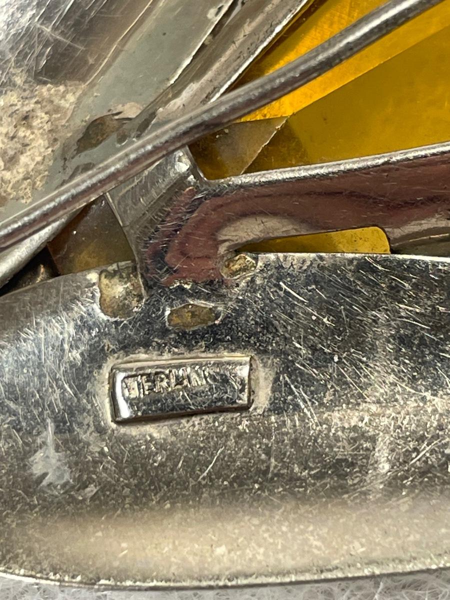 Huge Sterling Silver and glass Brooch