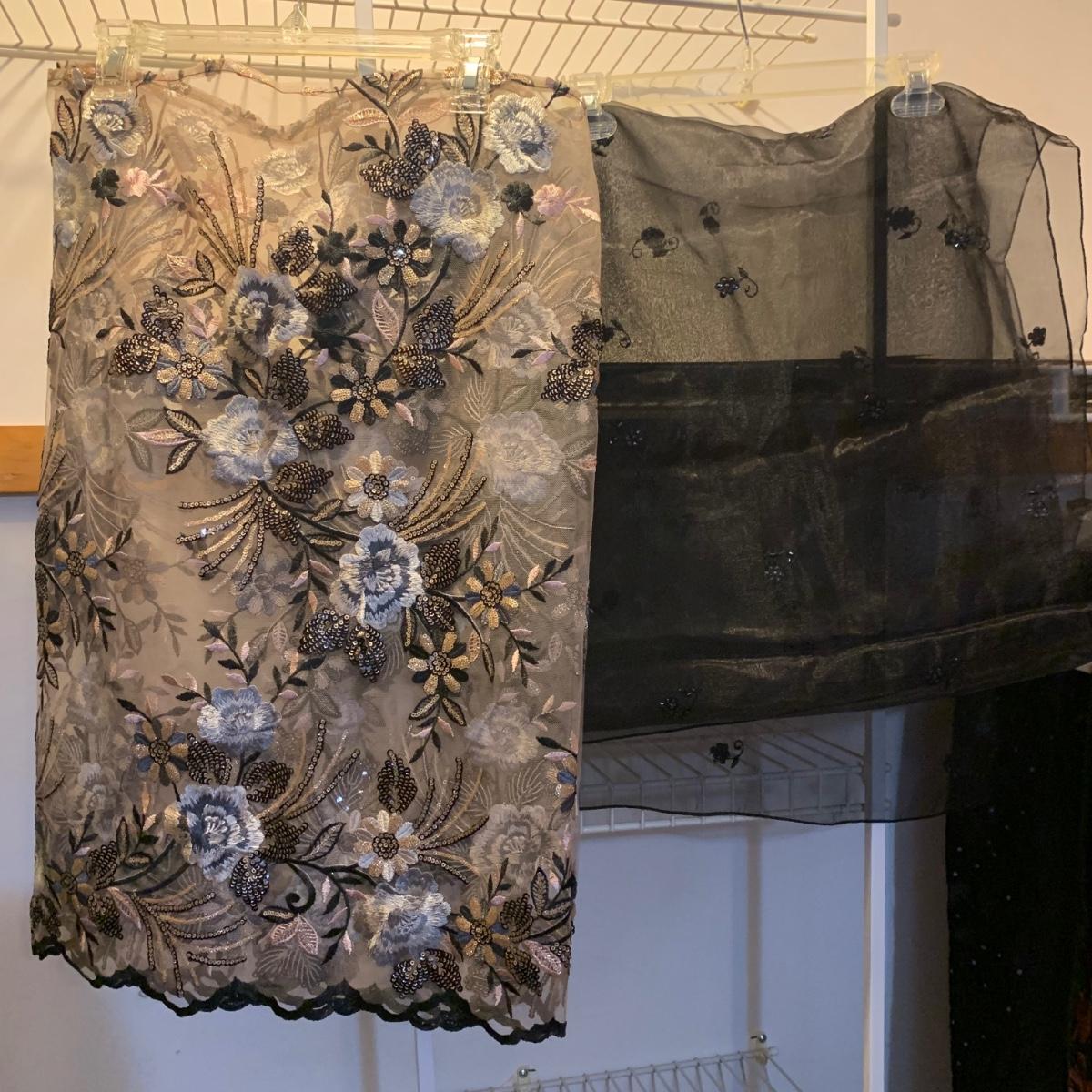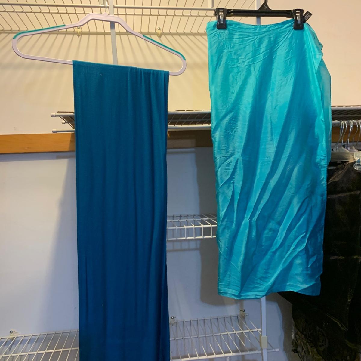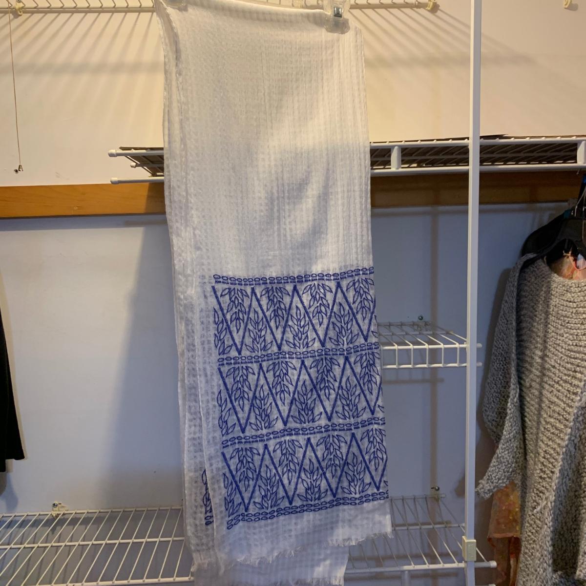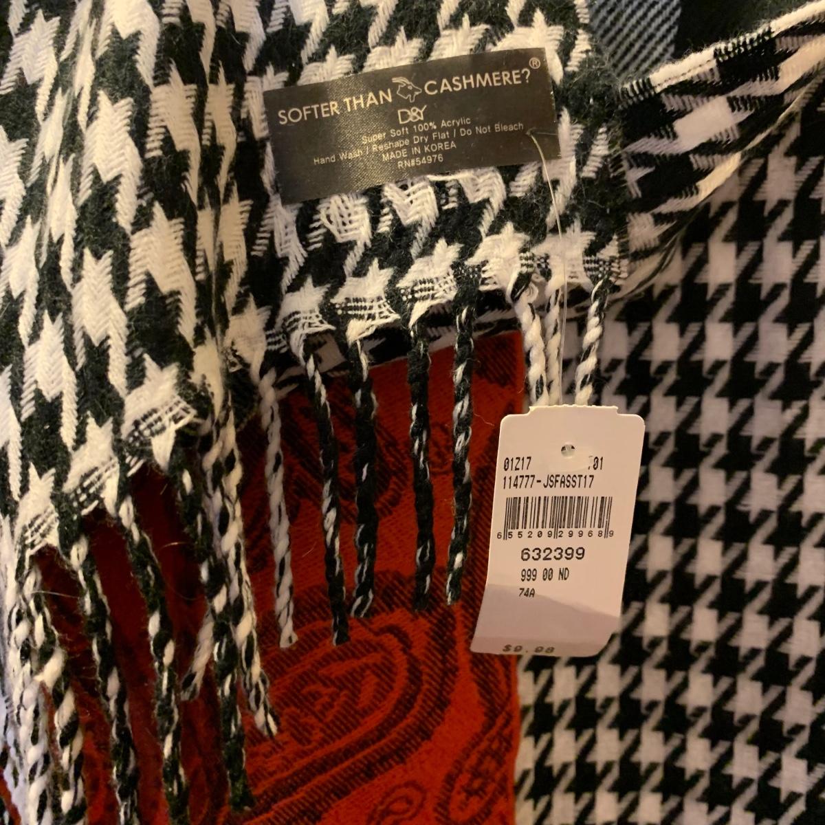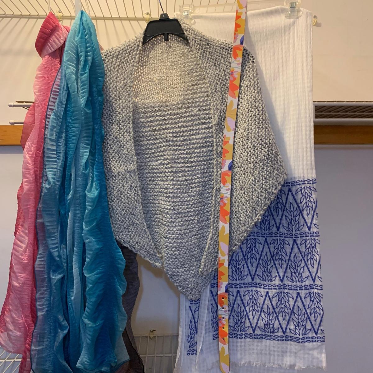 50+ scarves and 15+ belts. The scarves come in just about every color and design you could imagine! There are quite a few large, soft, and warm plaid scarves, as well as silk, rayon and more. Some are velvet, some have sequins. Many are brand new with their original tags still attached. Of the belts, one is Fossil, three are St. John’s Bay, there are two gold belts, and a few fabric belts. Not all belts have sizes listed, but the ones that do are marked M or L. Some of the belts show some wear.