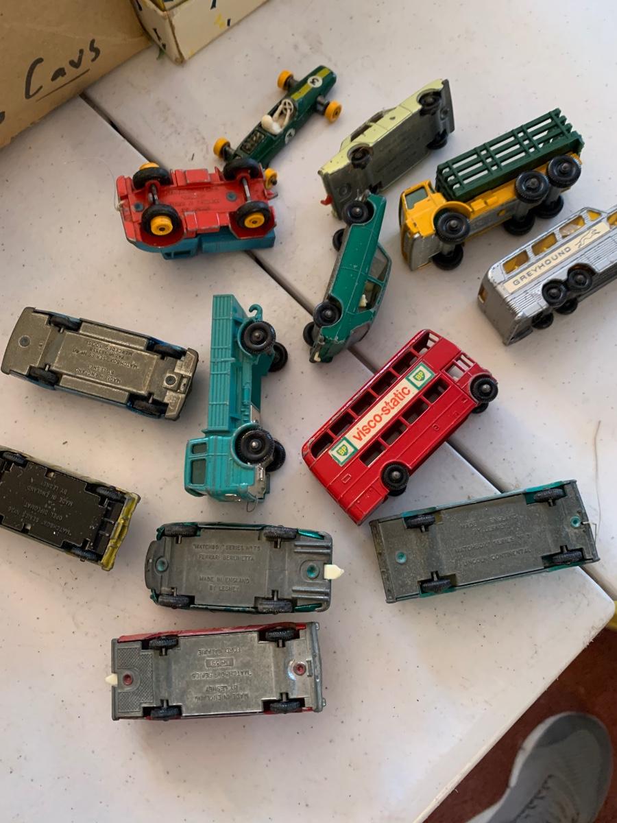 Appears many matchbox cars were actually tied together w string to make a mobile - we did not separate, what you see is what you get.