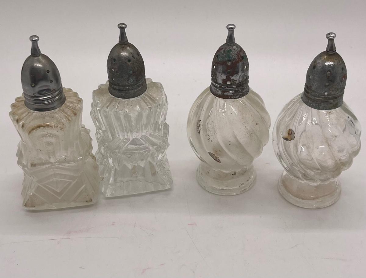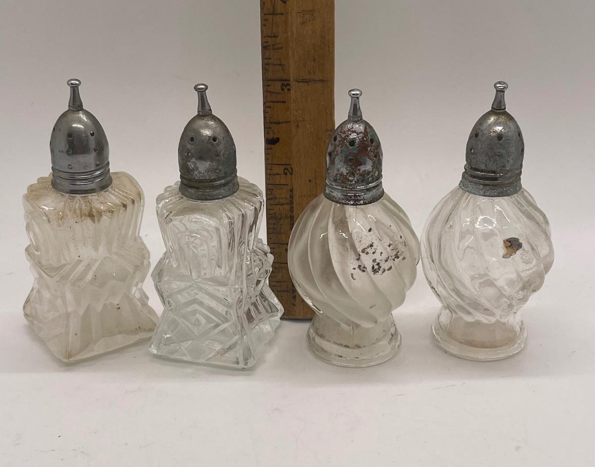4 Antique salt & pepper shakers with silver tops