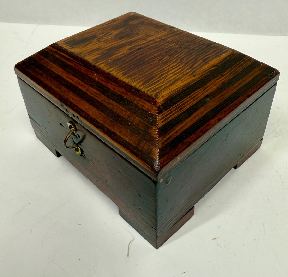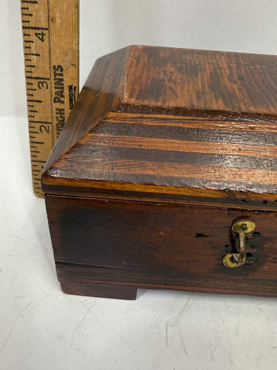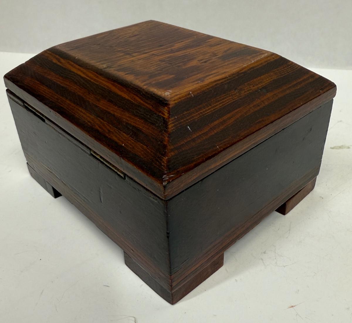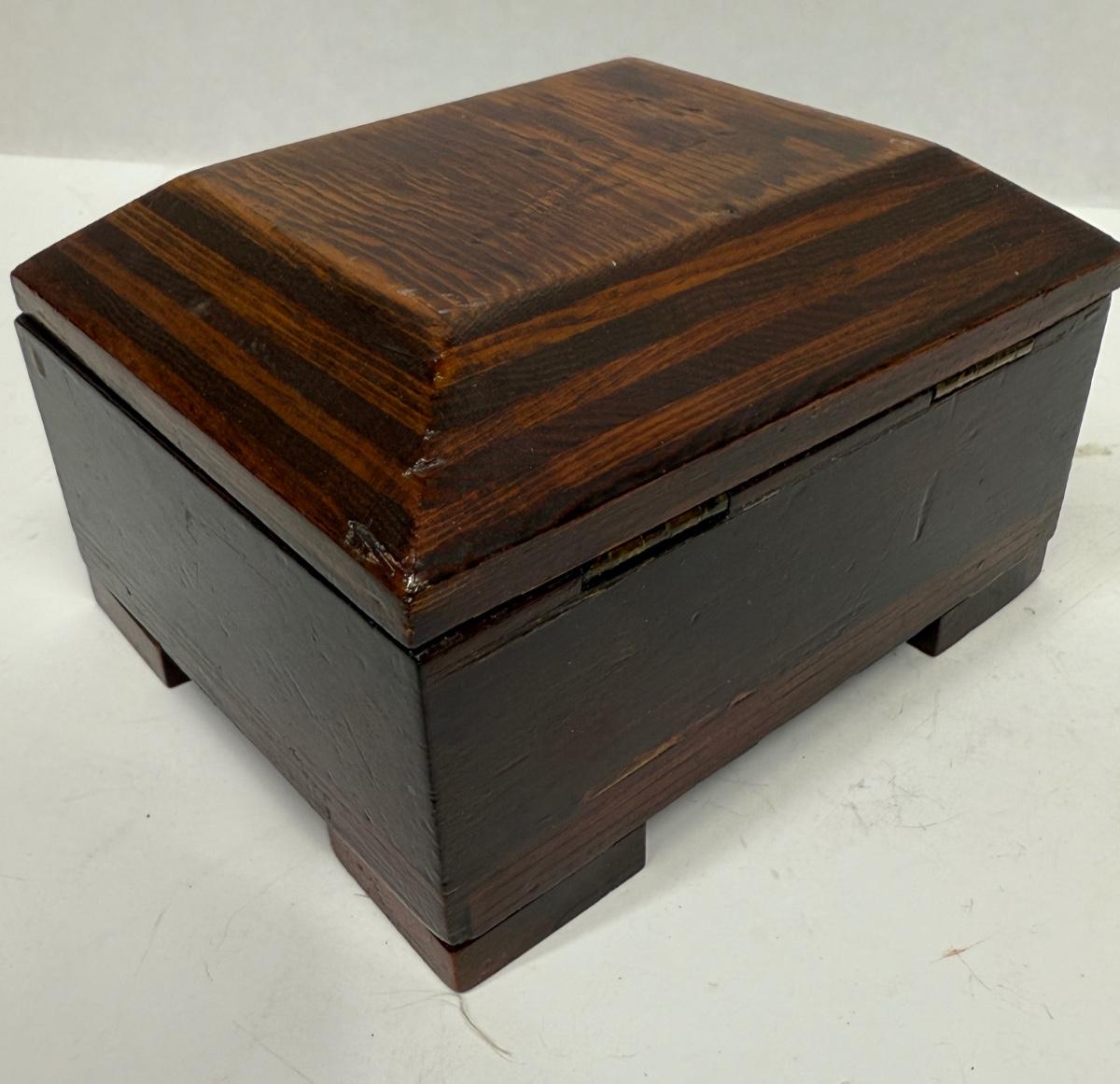 Vintage / Antique wooden Hinged Lid Box jewelry trinket te
