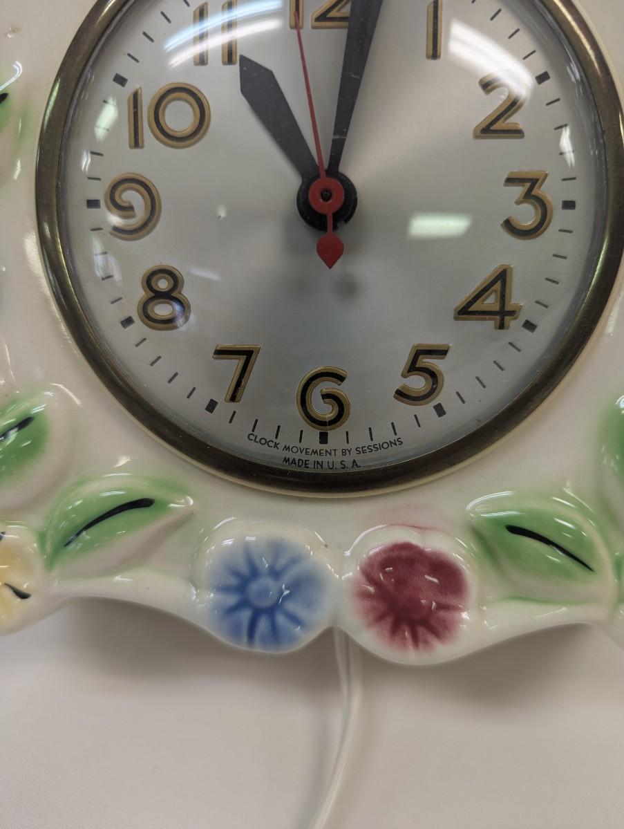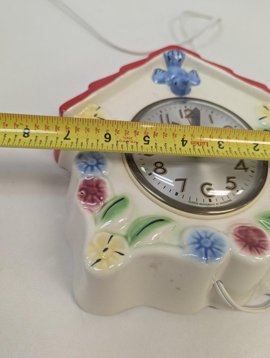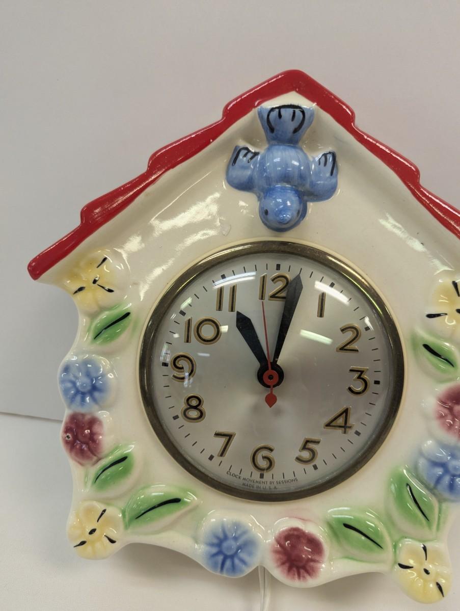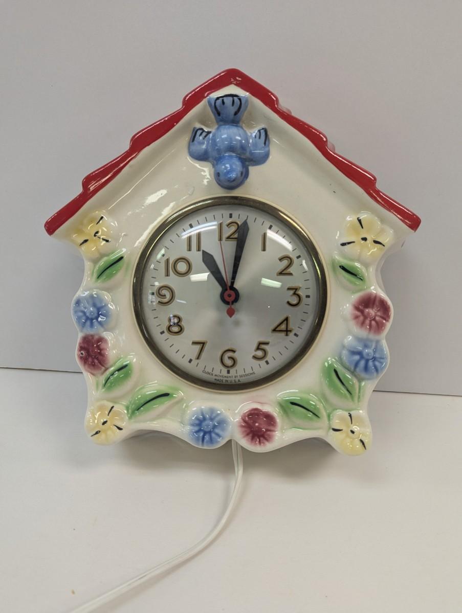 Sessions Made In USA Art Pottery Bluebird Birdhouse Clock
