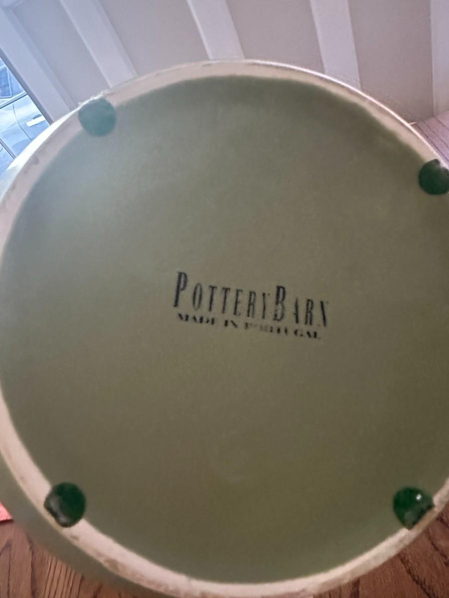 1 Pottery Barn Round Vase 10"h x 8" w, 1 Floraline Square/Pedestal Vase 5.5"h 5.5"w, 1 Hull Vase 9.5"h, 1 Haeger Vase 4"h, 1 additonal vase 8"h x 7"w.