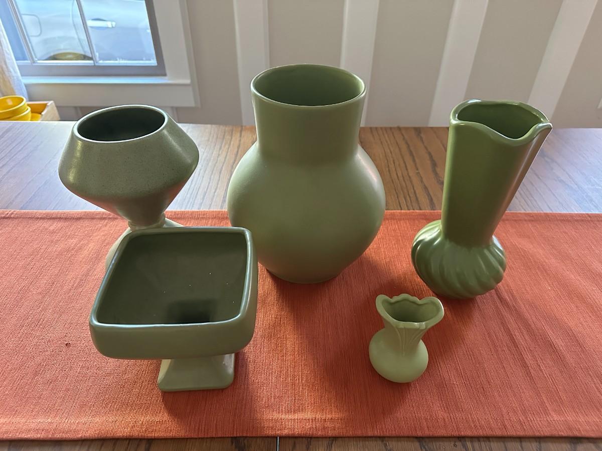 Hull, Floraline, Haeger, Pottery Barn Vases - Green